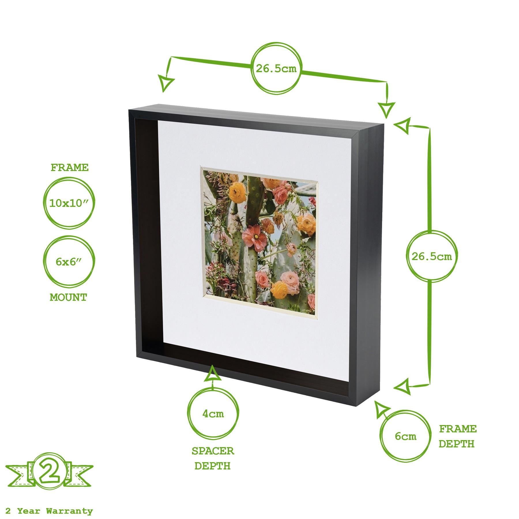 10" x 10" 3D Deep Box Photo Frame with 6" x 6" White Mount