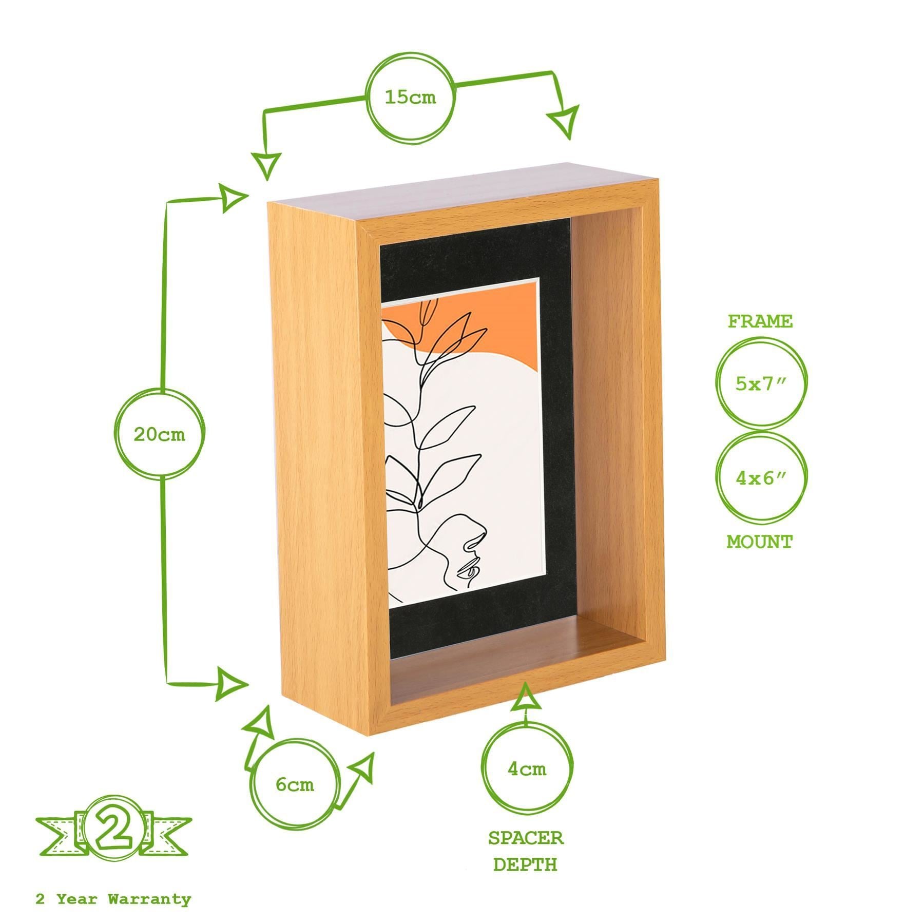 5" x 7" Medium Wood 3D Deep Box Photo Frame with 4" x 6" Mount