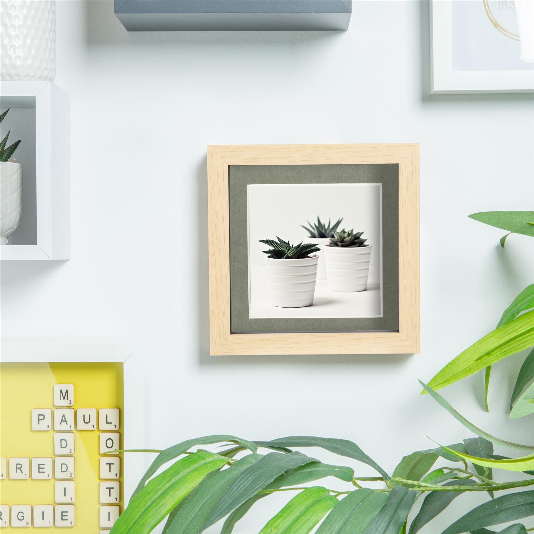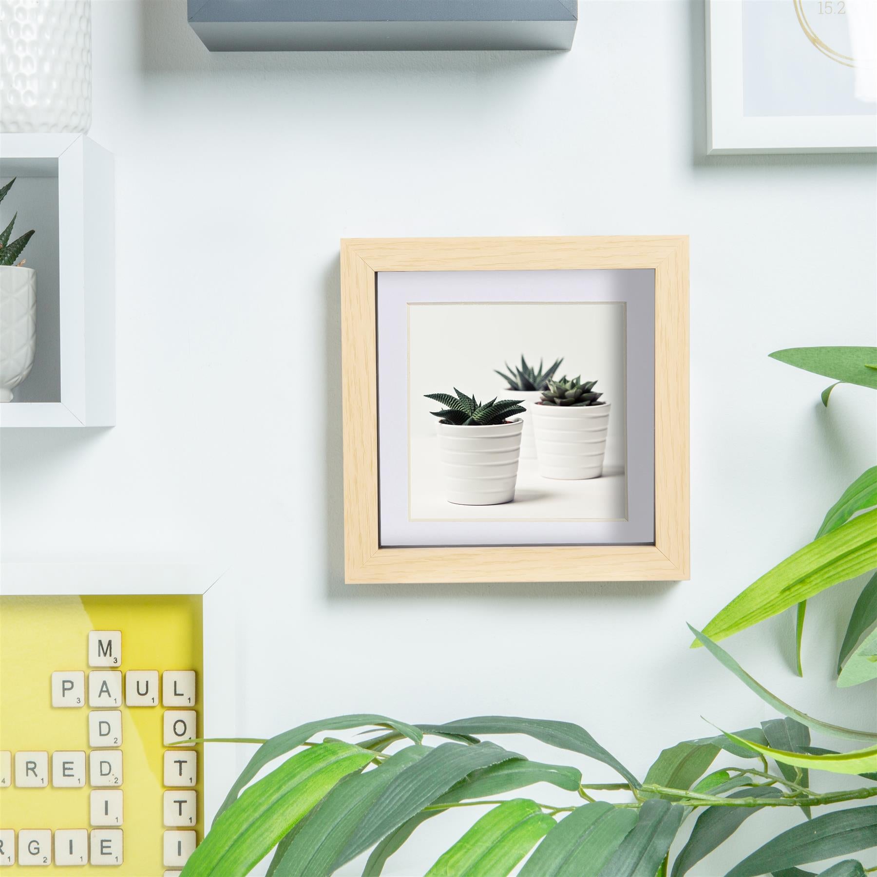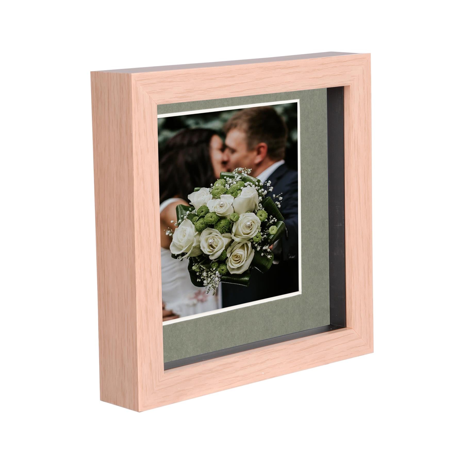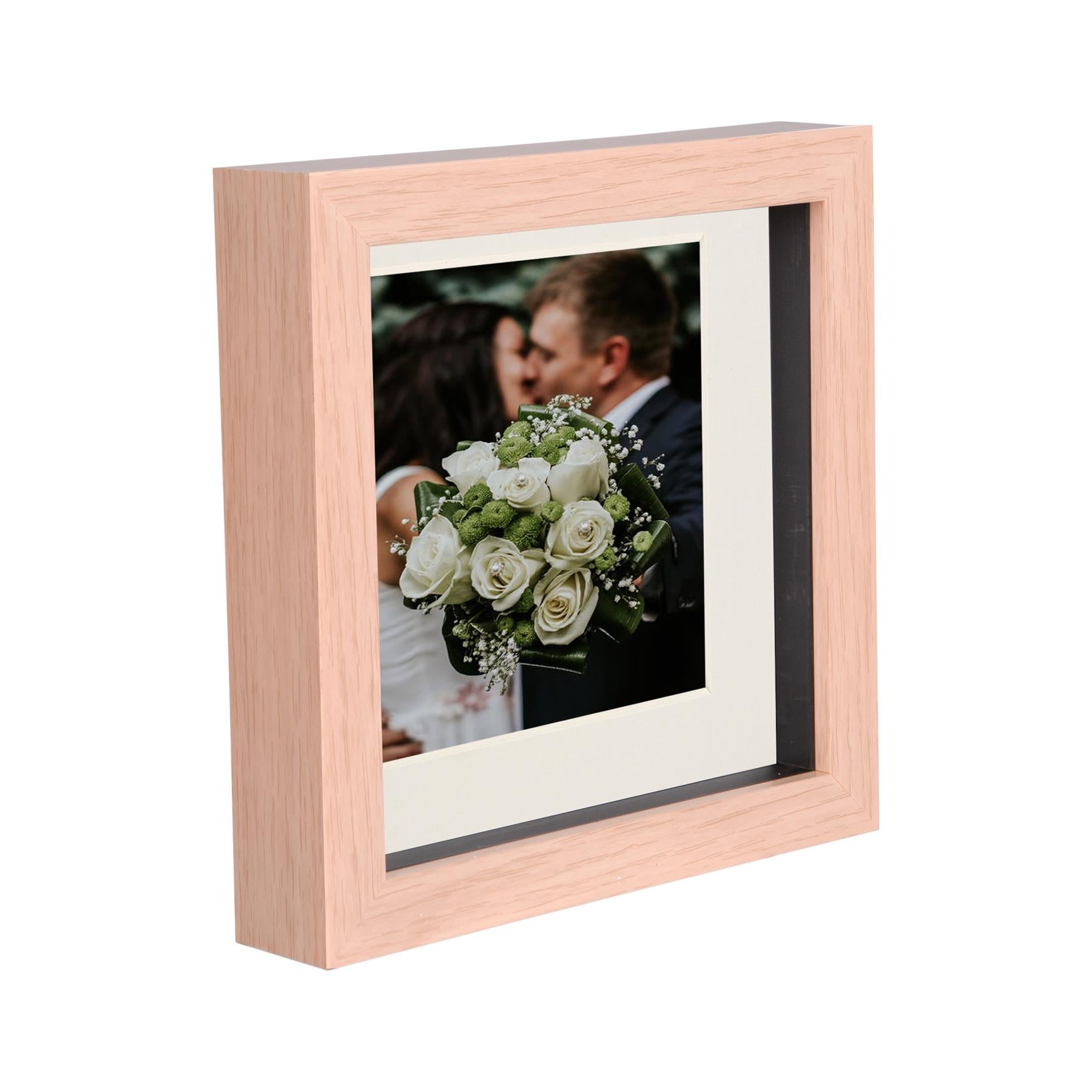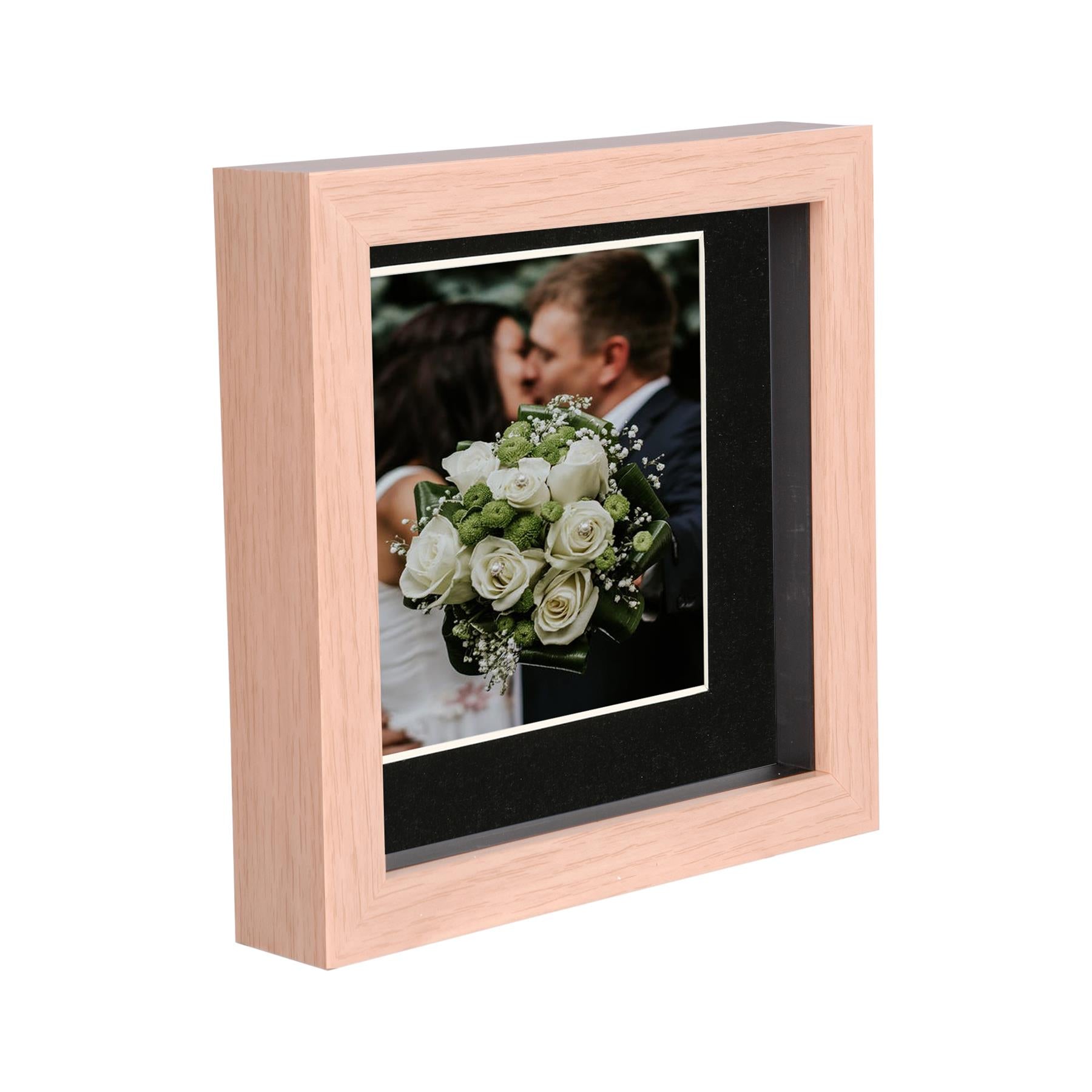 6" x 6" Light Wood 3D Deep Box Photo Frame with 4" x 4" Mount