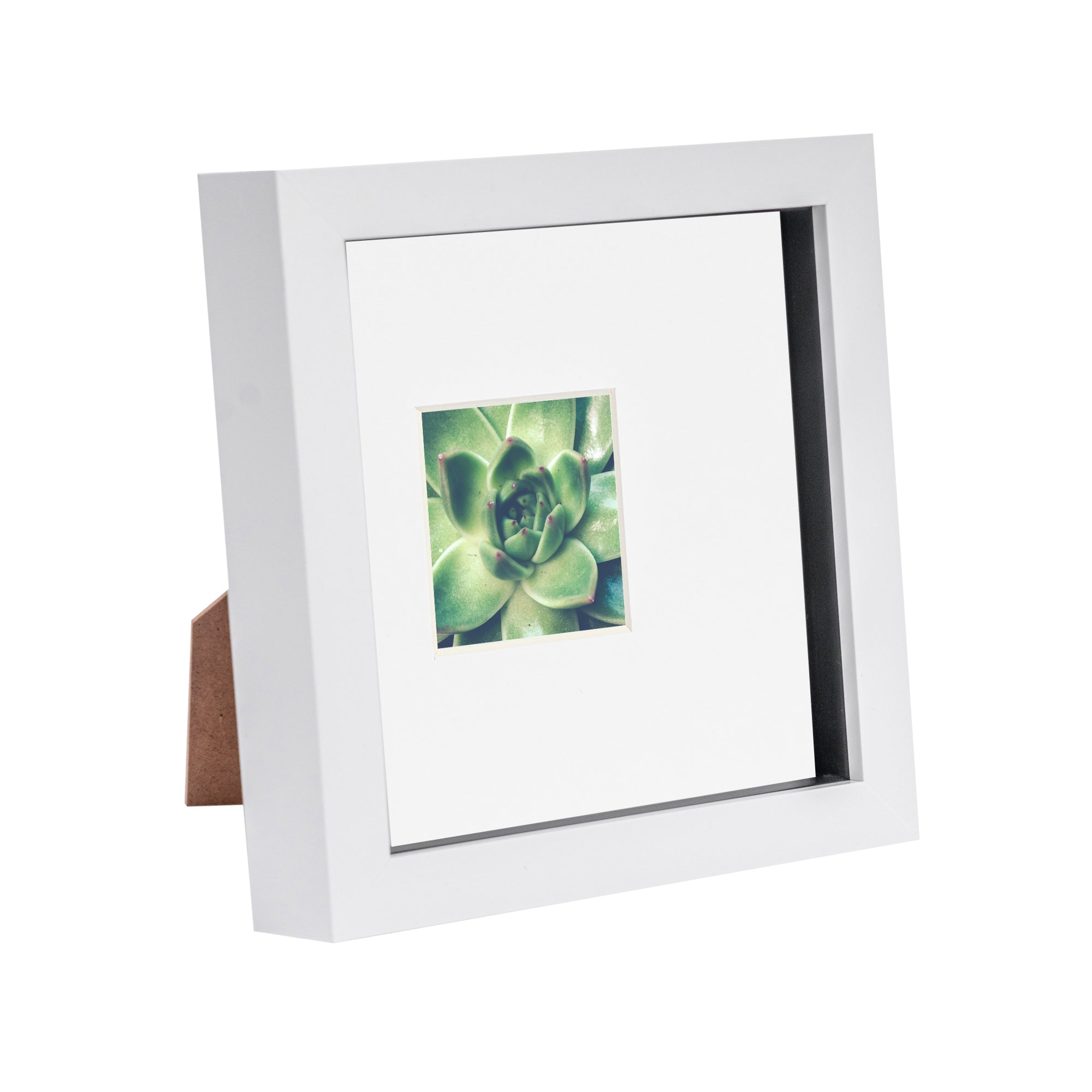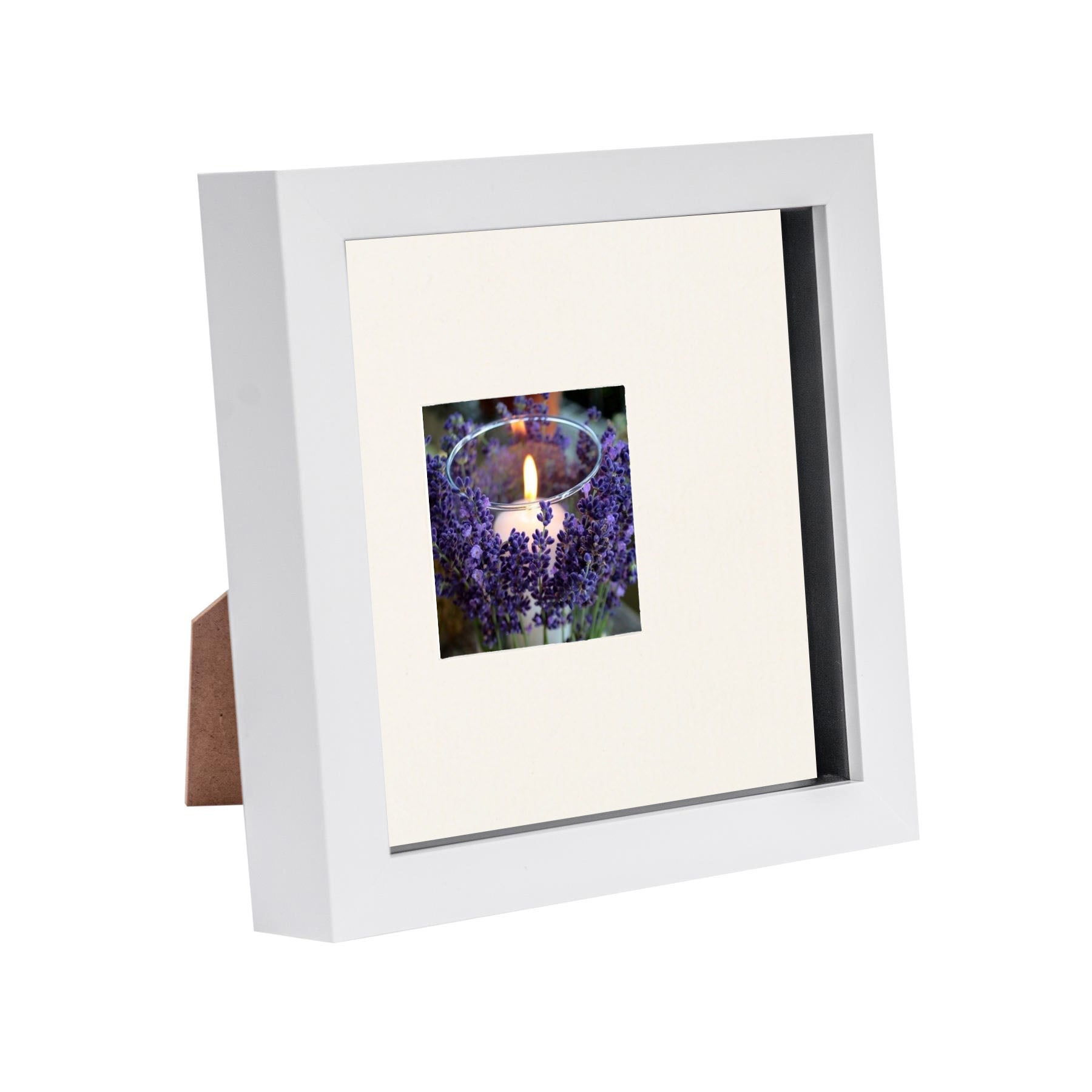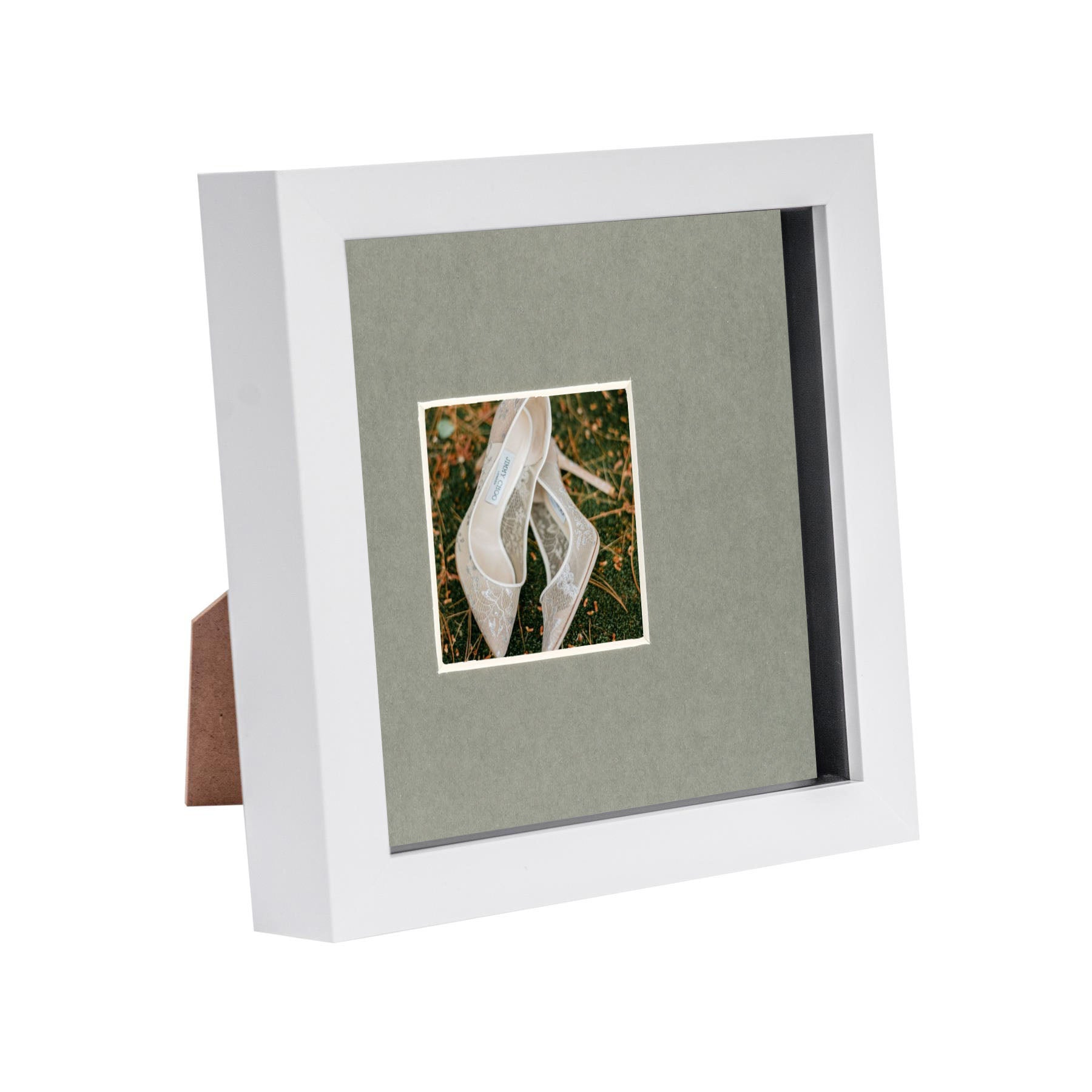 6" x 6" White 3D Box Photo Frame with 2" x 2" Mount & Black Spacer