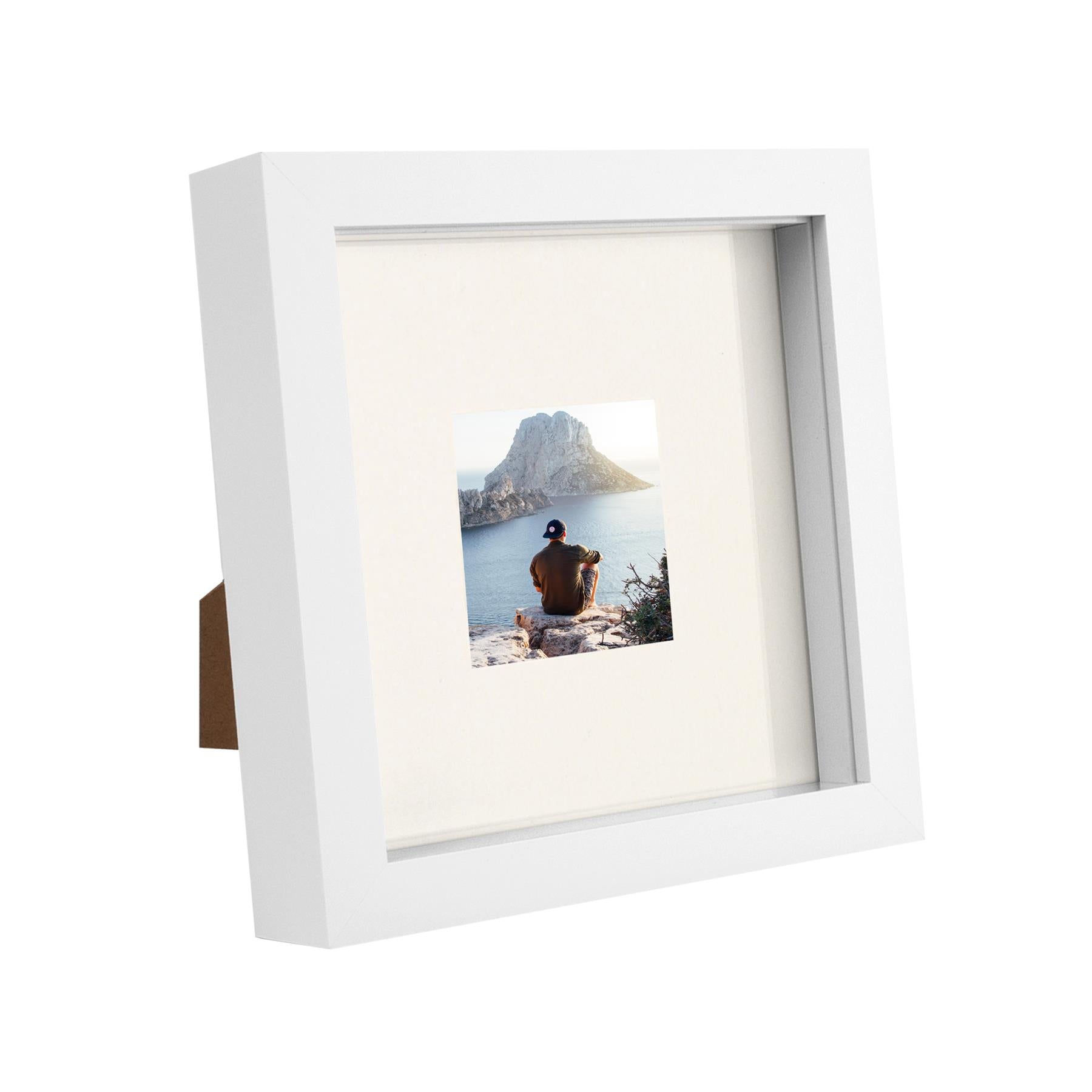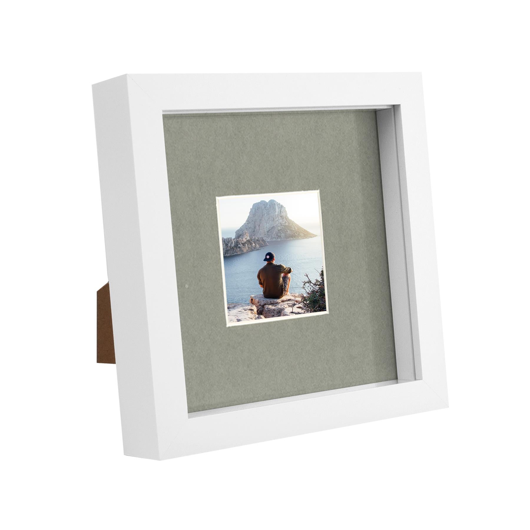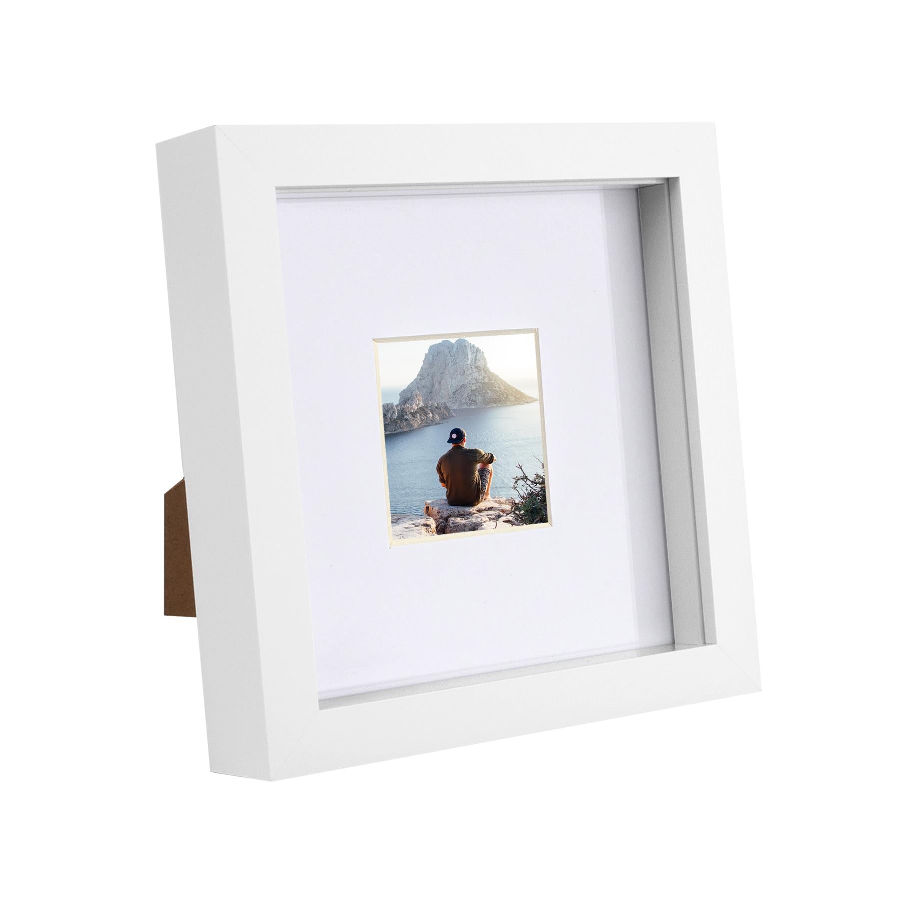 6" x 6" White 3D Box Photo Frame with 2" x 2" Mount & White Spacer