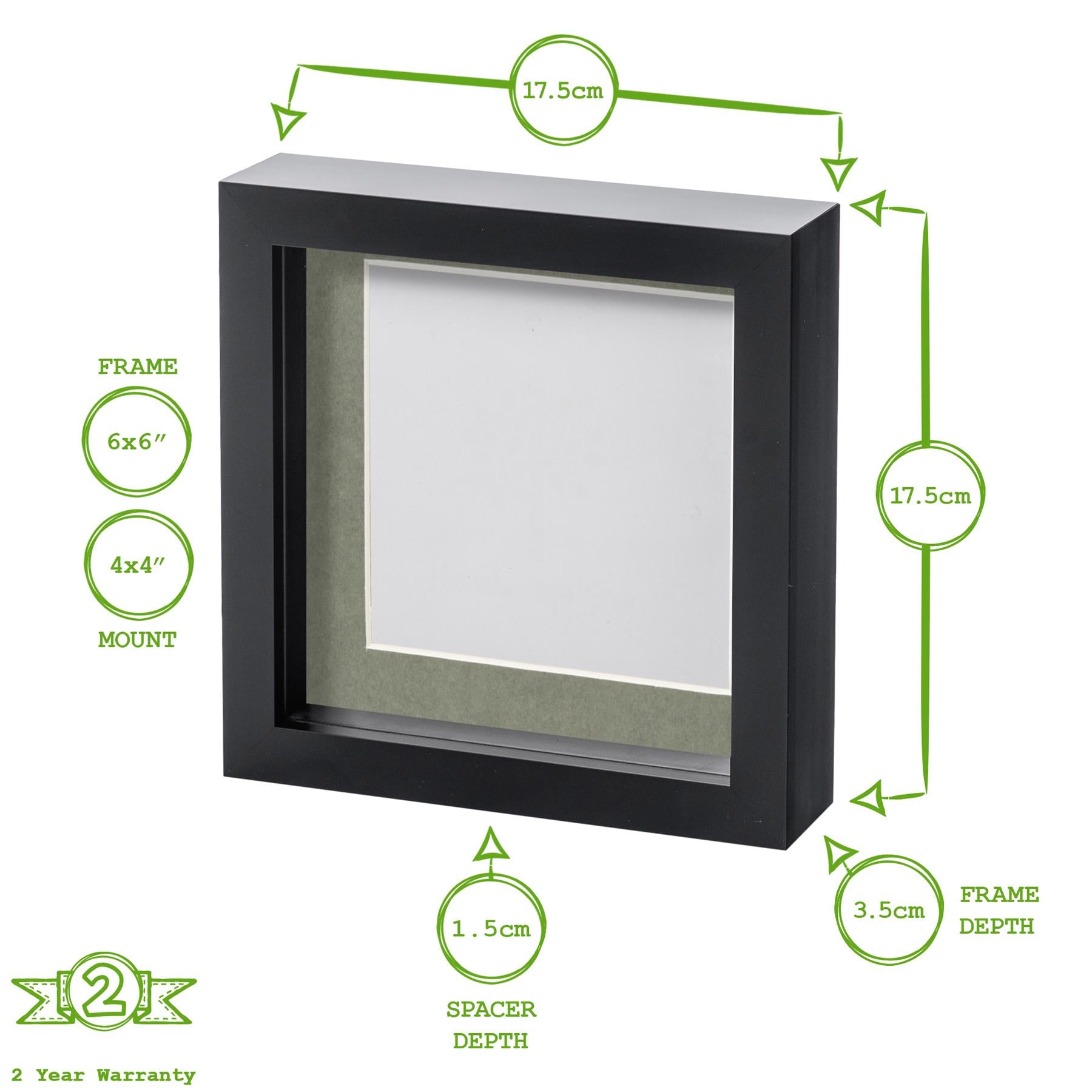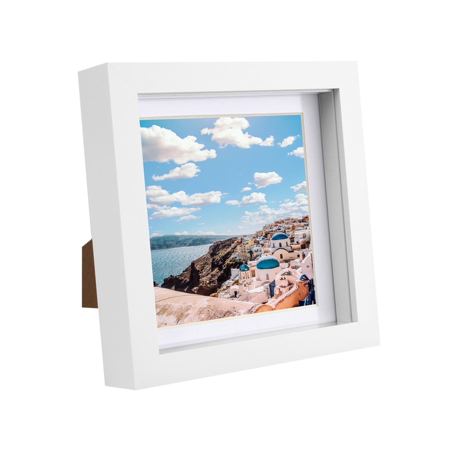 6" x 6" White 3D Box Photo Frame with 4" x 4" Mount & White Spacer
