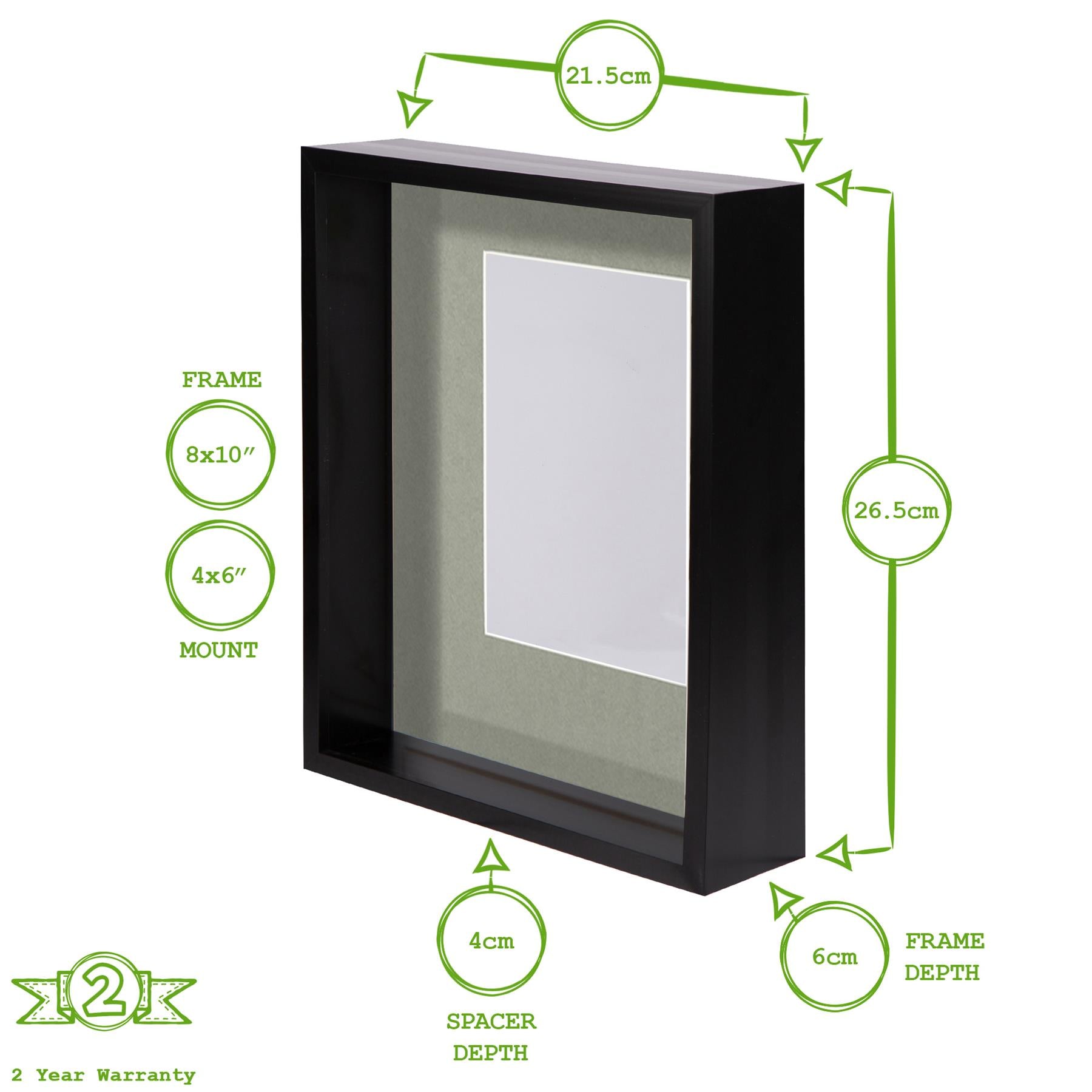 8" x 10" Black 3D Deep Box Photo Frame with 4" x 6" Mount