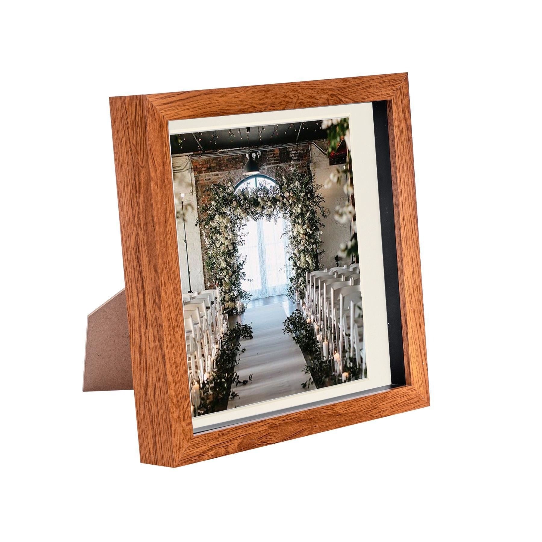 8" x 8" Dark Wood 3D Box Photo Frame with 6" x 6" Mount