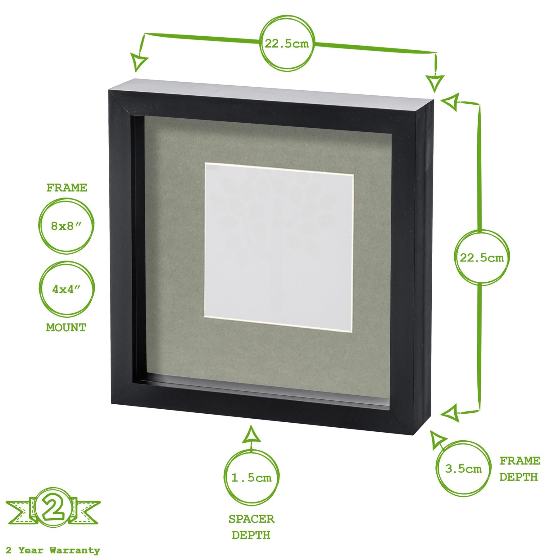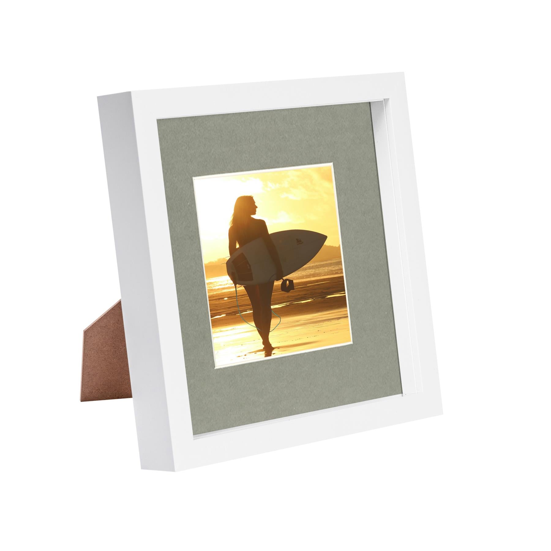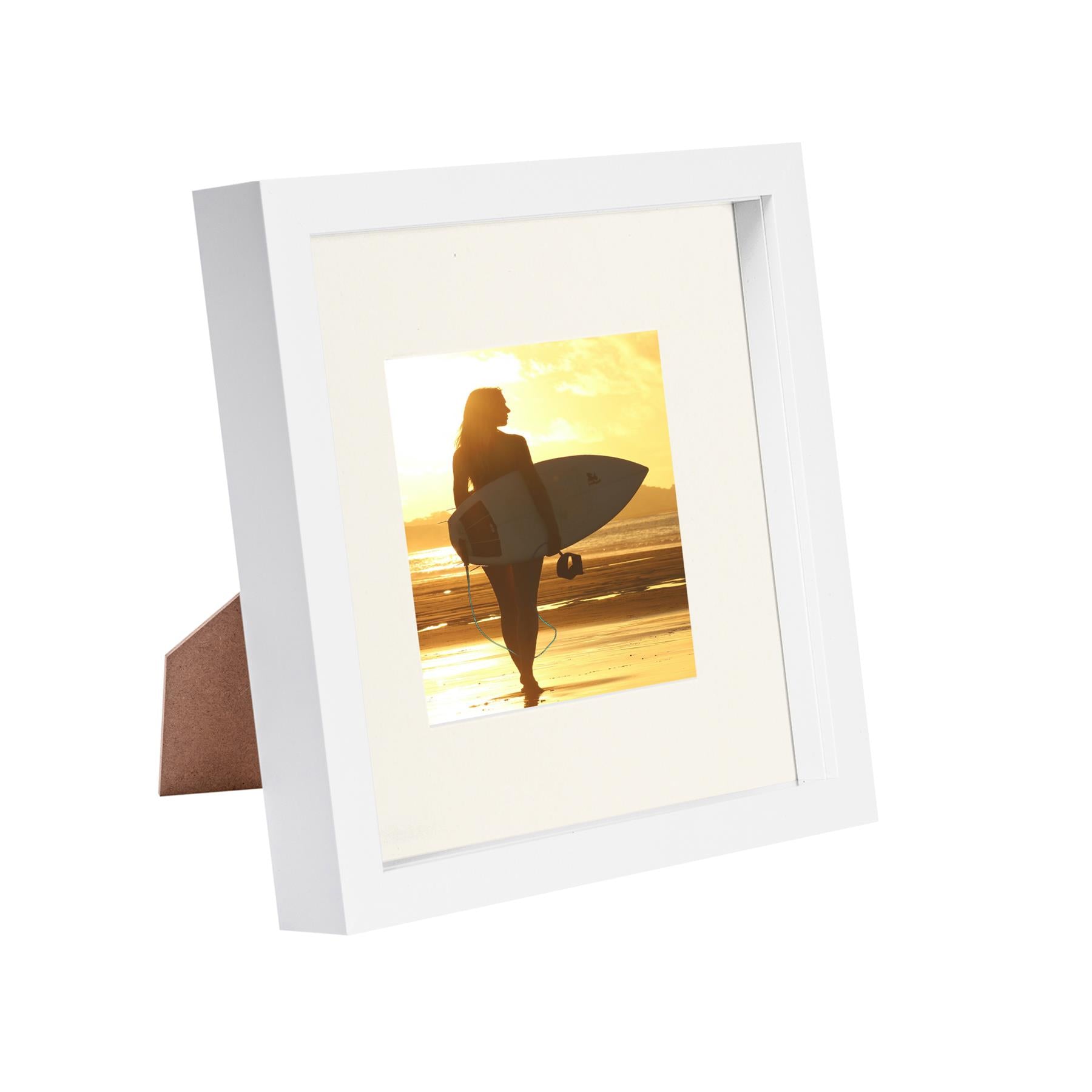 8" x 8" White 3D Box Photo Frame with 4" x 4" Mount & White Spacer