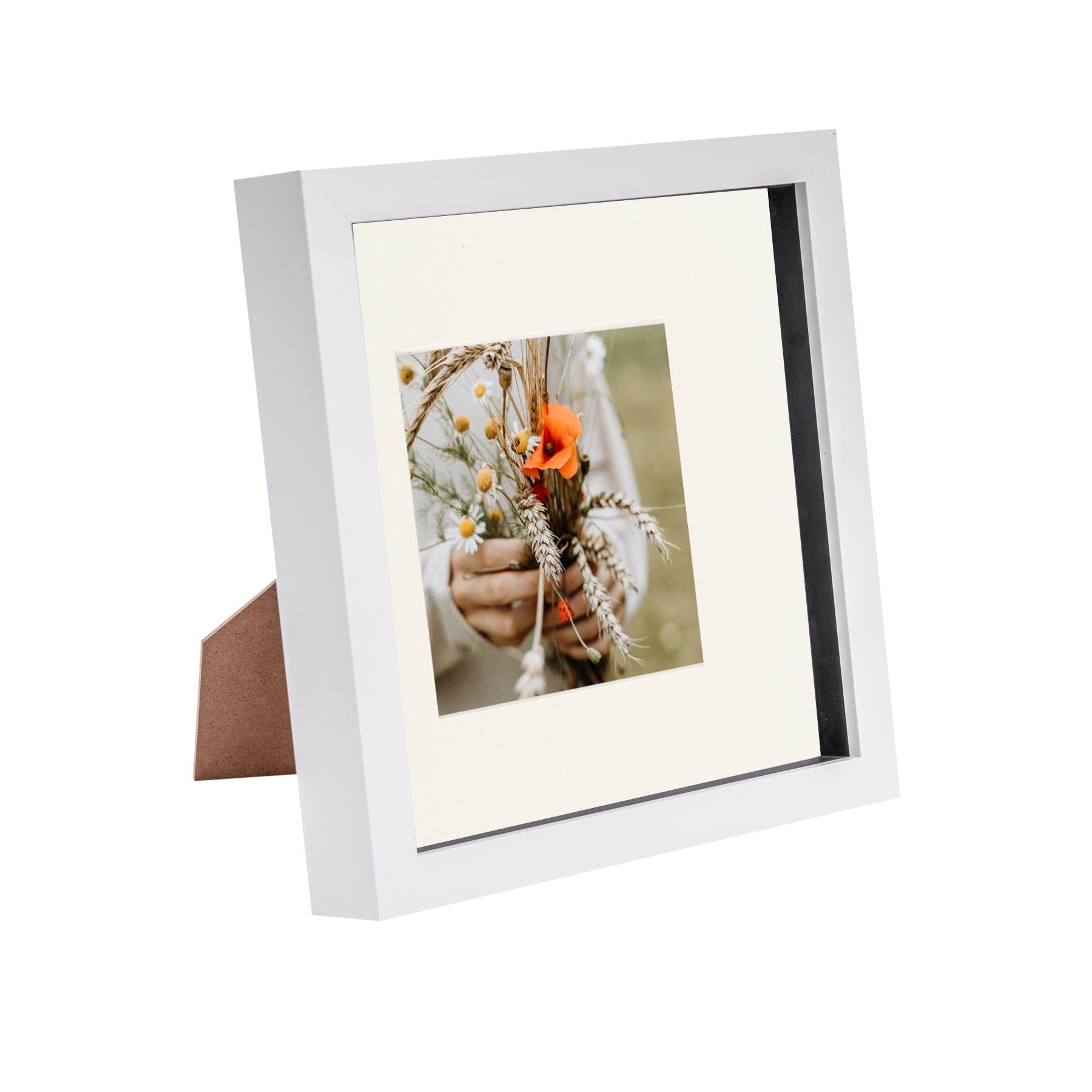 8" x 8" White 3D Box Photo Frame with 4" x 4" Mount & Black Spacer
