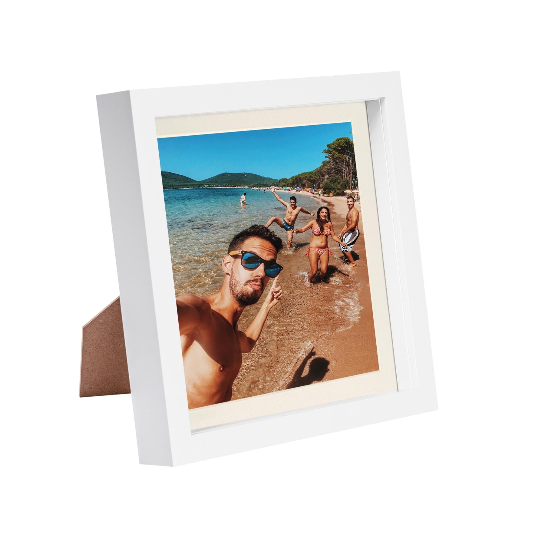 8" x 8" White 3D Box Photo Frame with 6" x 6" Mount & White Spacer