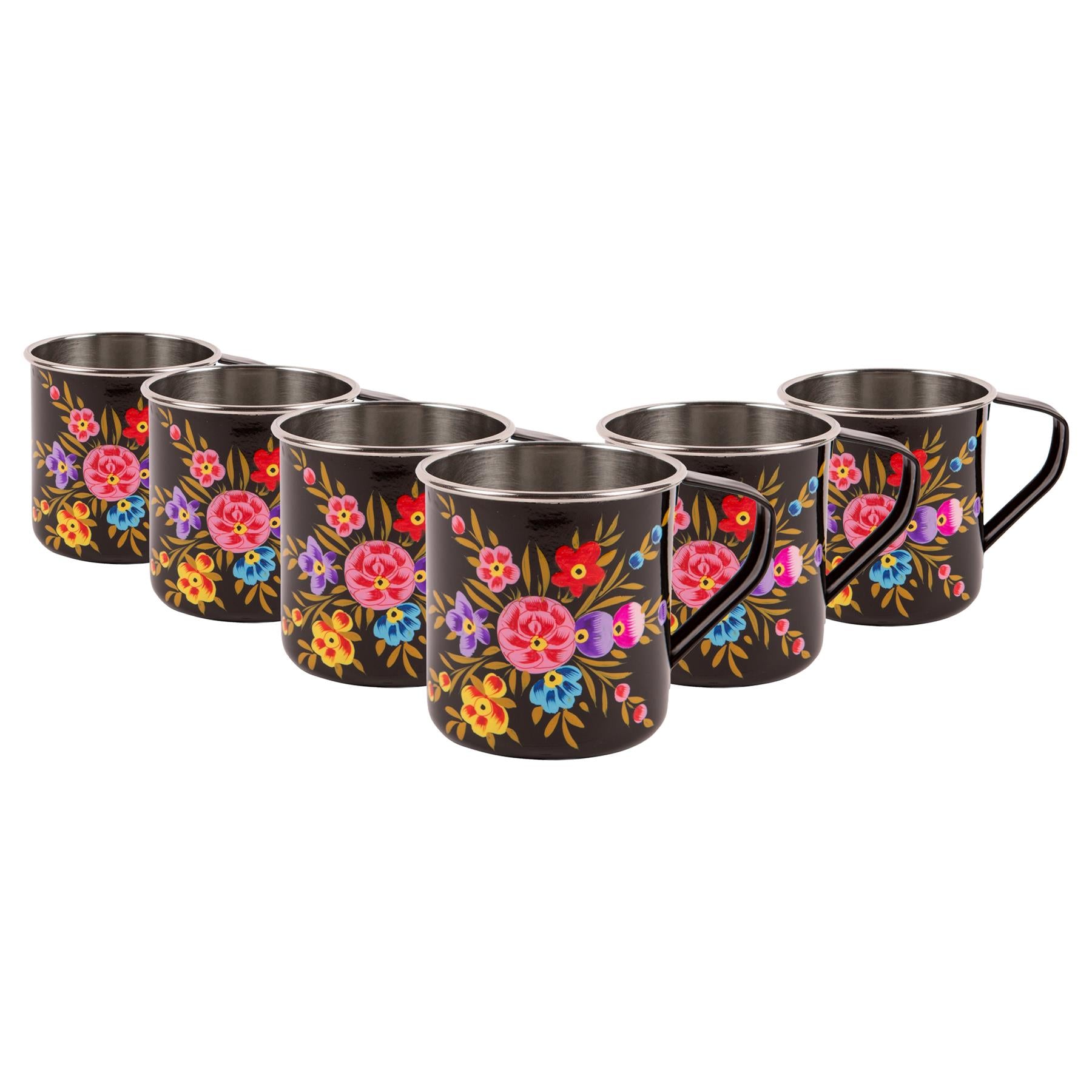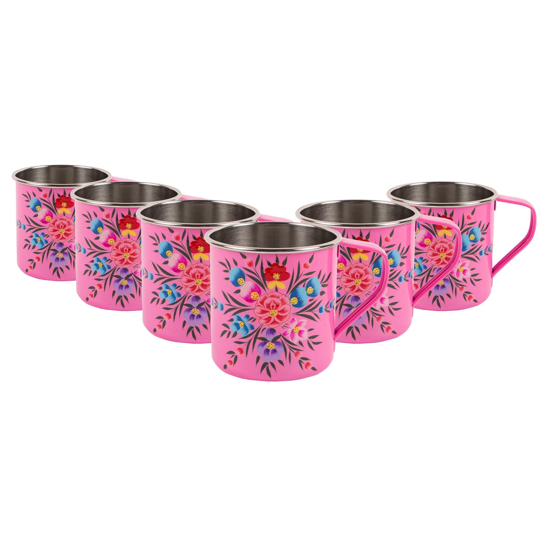 Pansy 450ml Hand-Painted Camping Mugs - Pack of Six