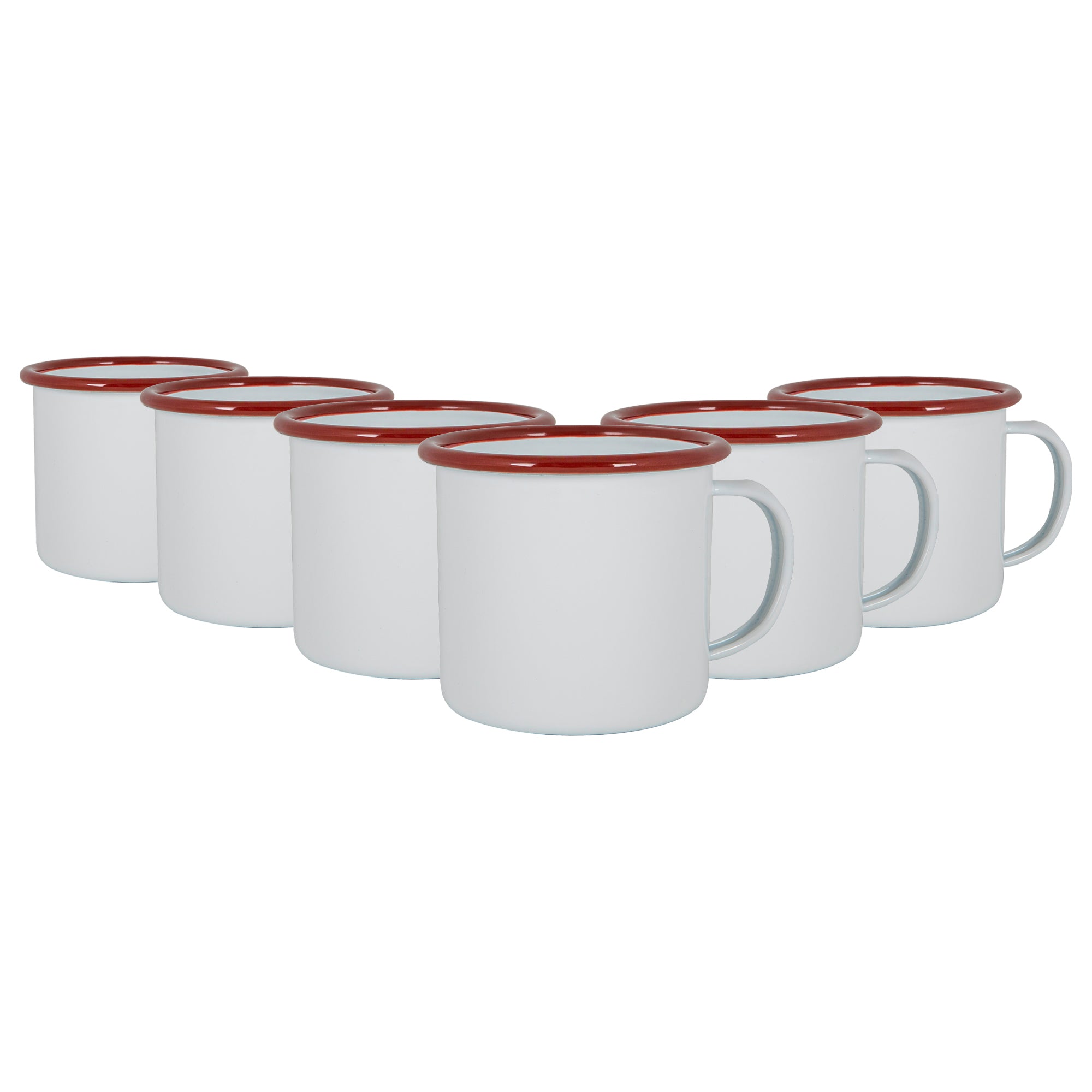 Add some traditional rustic tone and texture to your tea and coffee service with this 6 piece set of White Enamel Mugs from Argon Tableware.