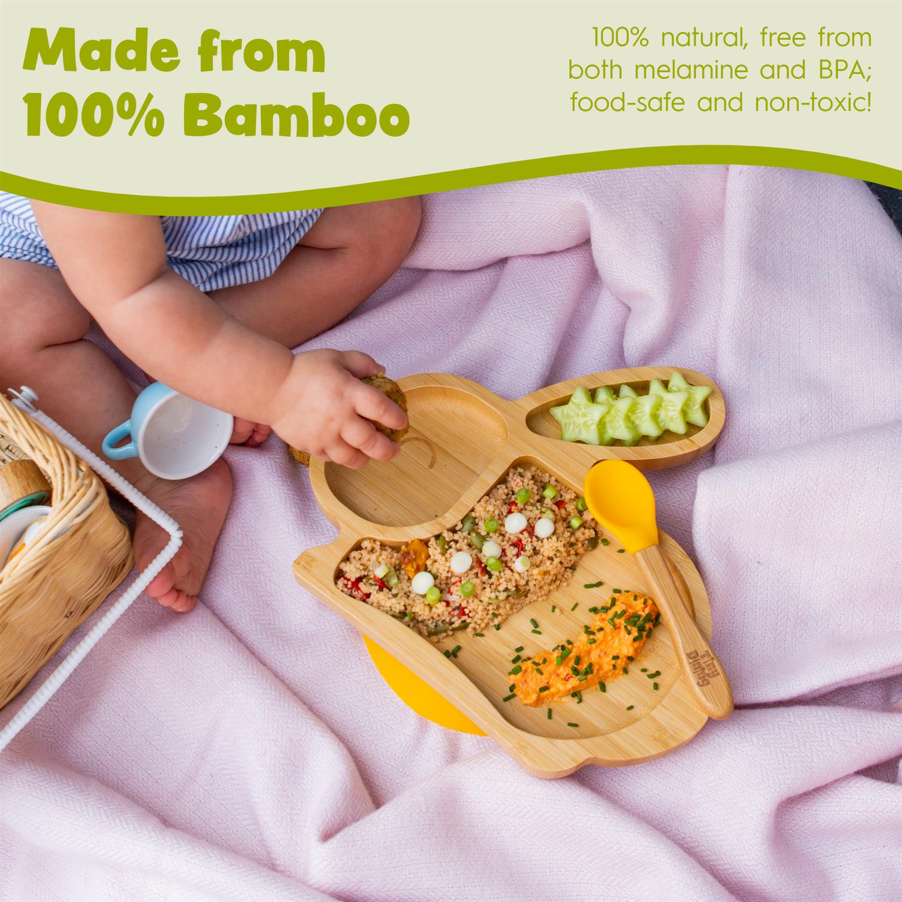 Perfectly designed for meals at all times of day, the segmented rabbit design of this plate allows you to keep foods separated for easy feeding, while the heat-resistant properties of bamboo keep tiny fingers protected should they reach out and touch the sides.