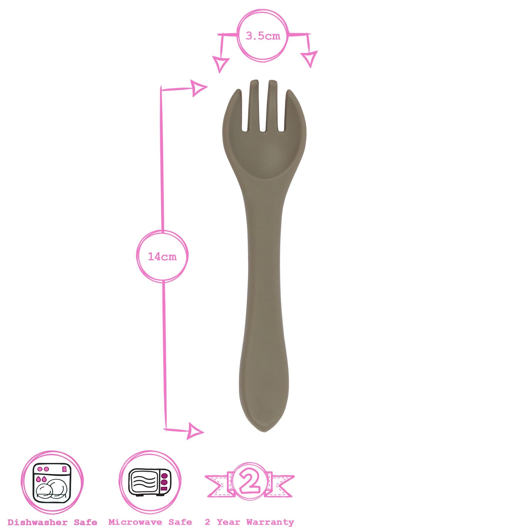This sturdy fork features a chunky handle perfectly designed to be grasped by hungry little fingers, paired with a soft tip that's gentle on gums.