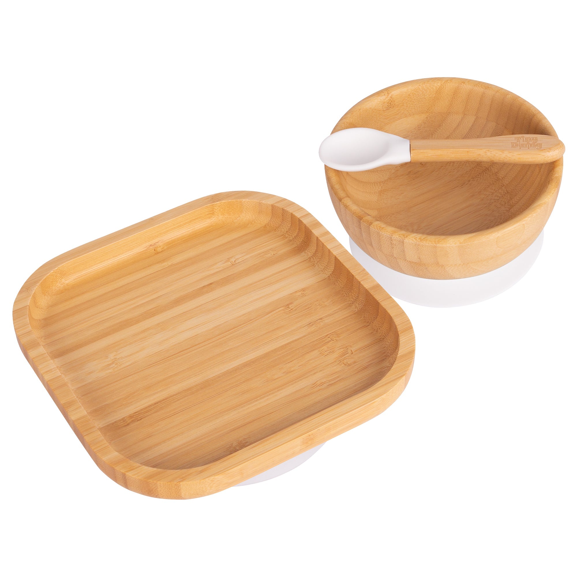 The Tiny Dining range of Bamboo Plates is the mealtime revolution that beleaguered parents have been waiting for, with innovative 'stay put' suction technology that keeps plates and bowls fixed to the table top, immune to the impact of flailing little limbs.