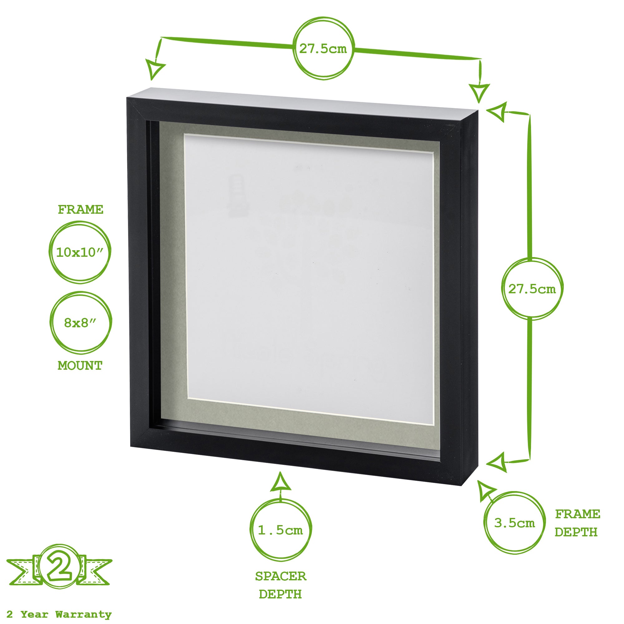 10" x 10" Black 3D Box Photo Frame with 8" x 8" Mount