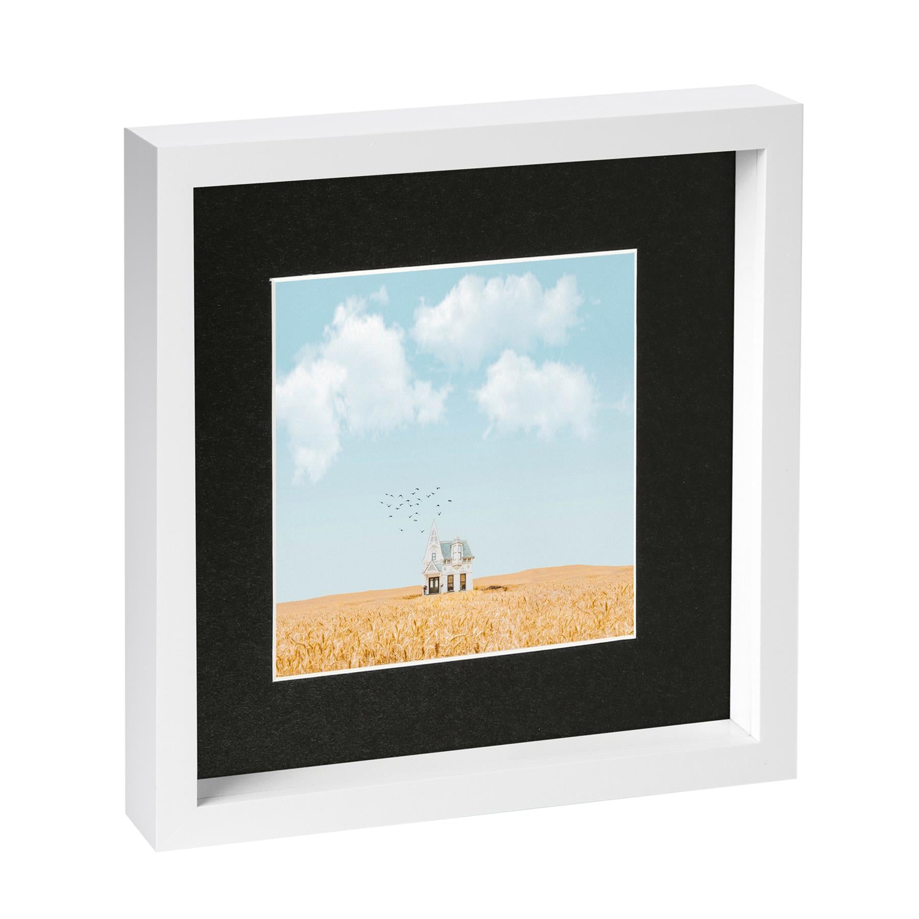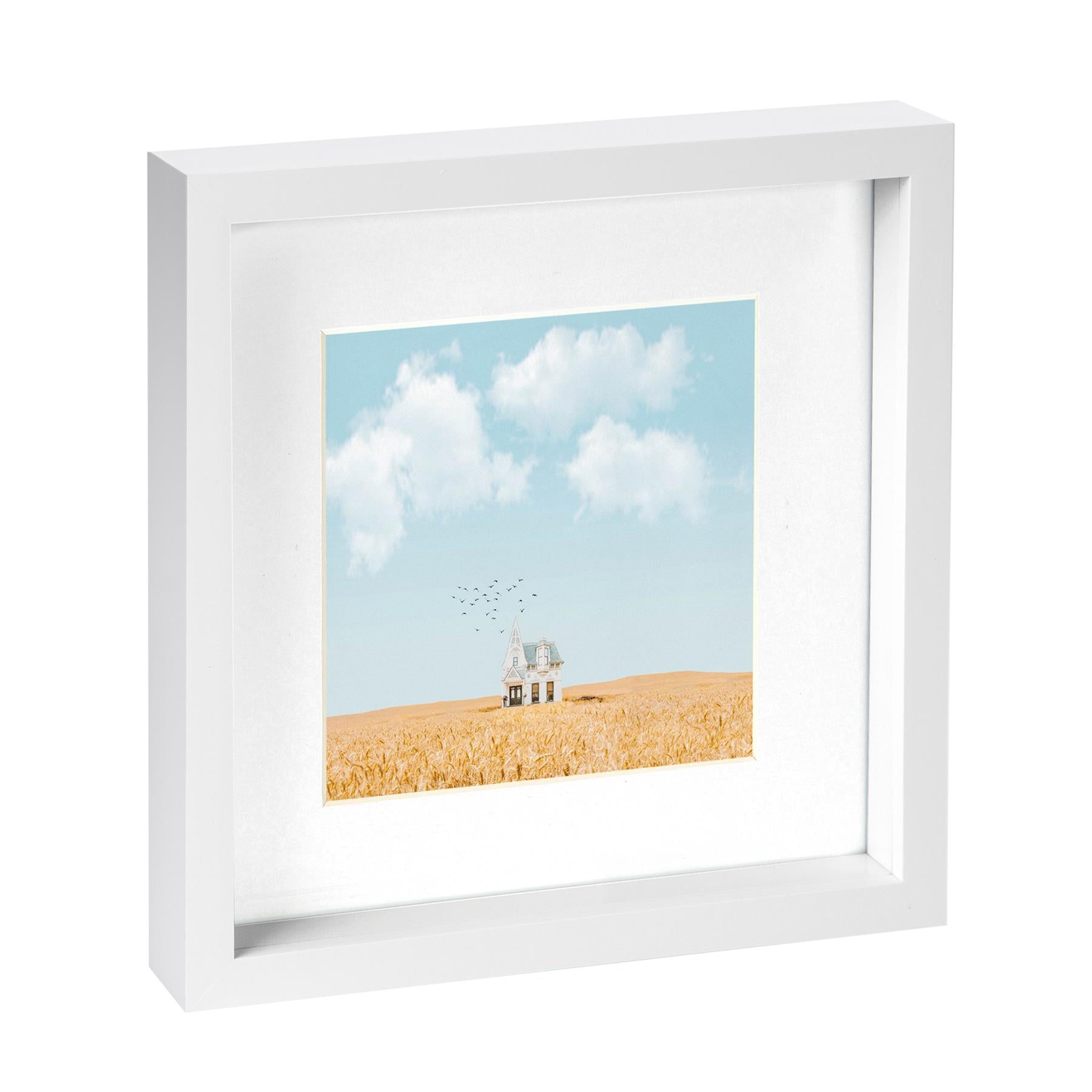 10" x 10" White 3D Box Photo Frame with 6" x 6" Mount & White Spacer
