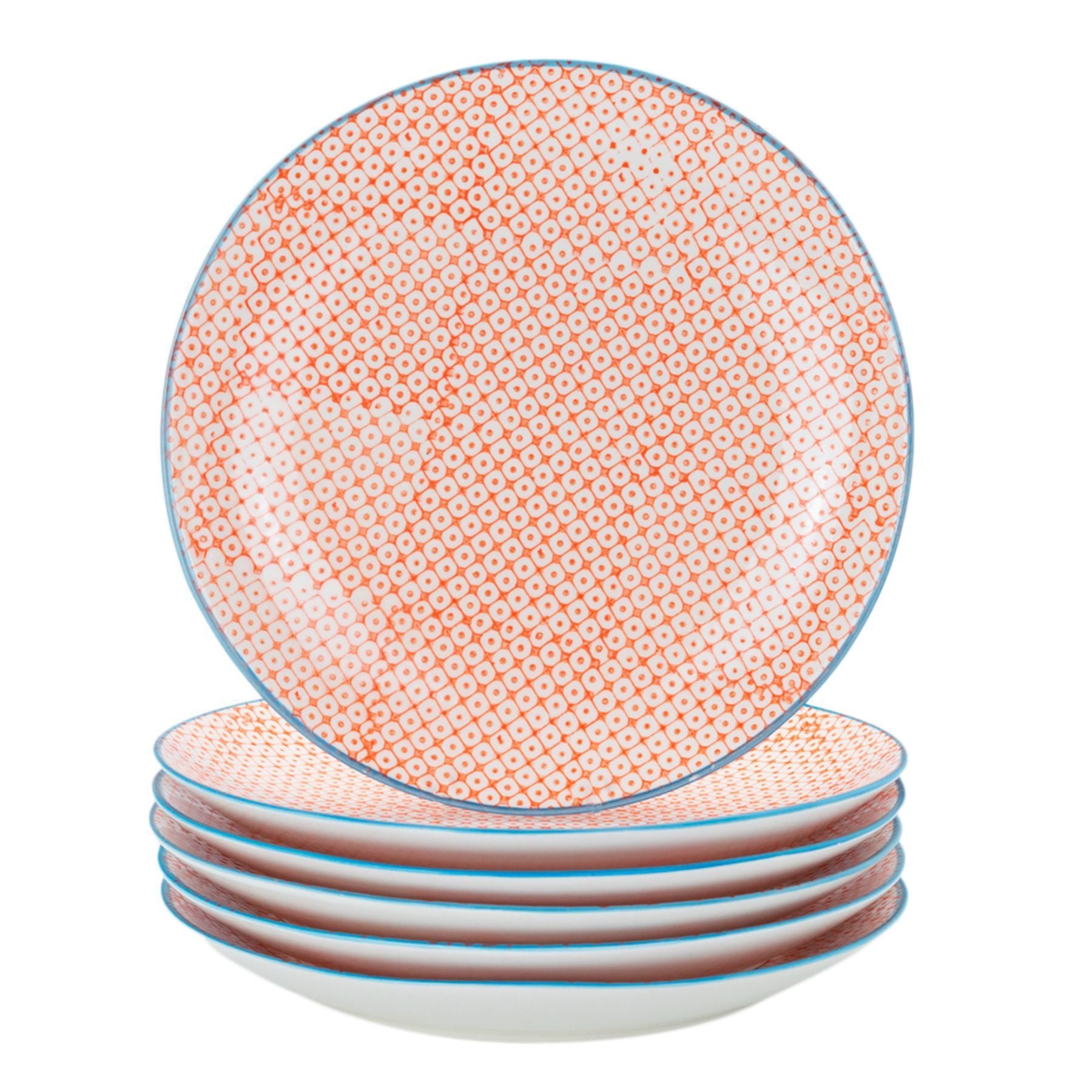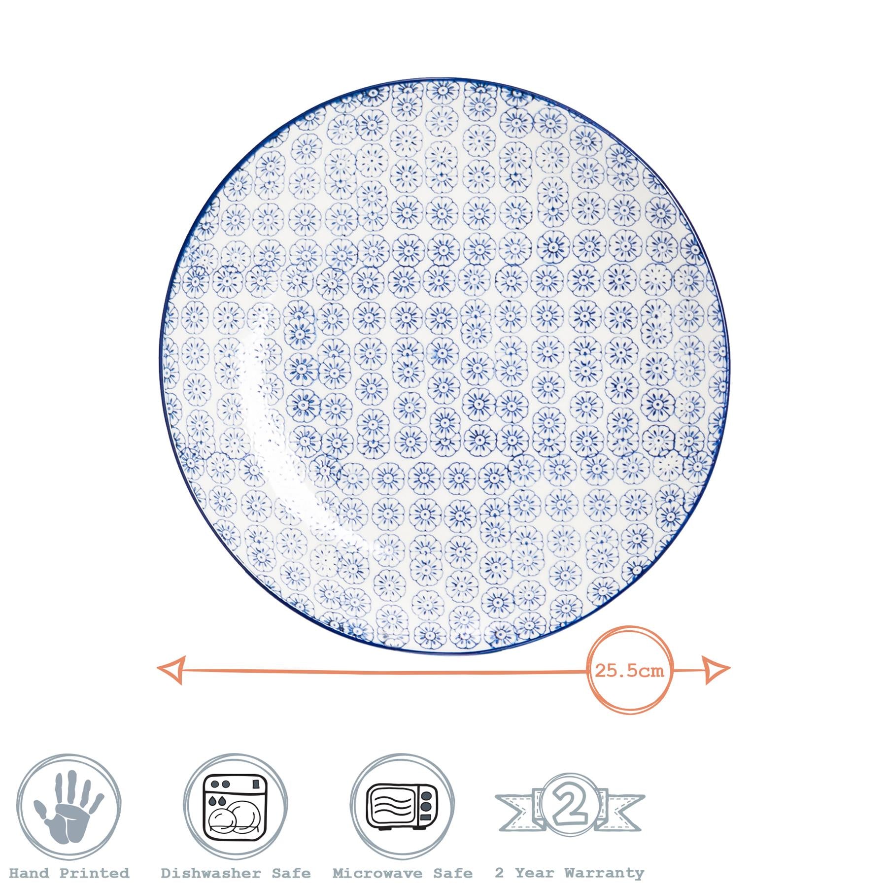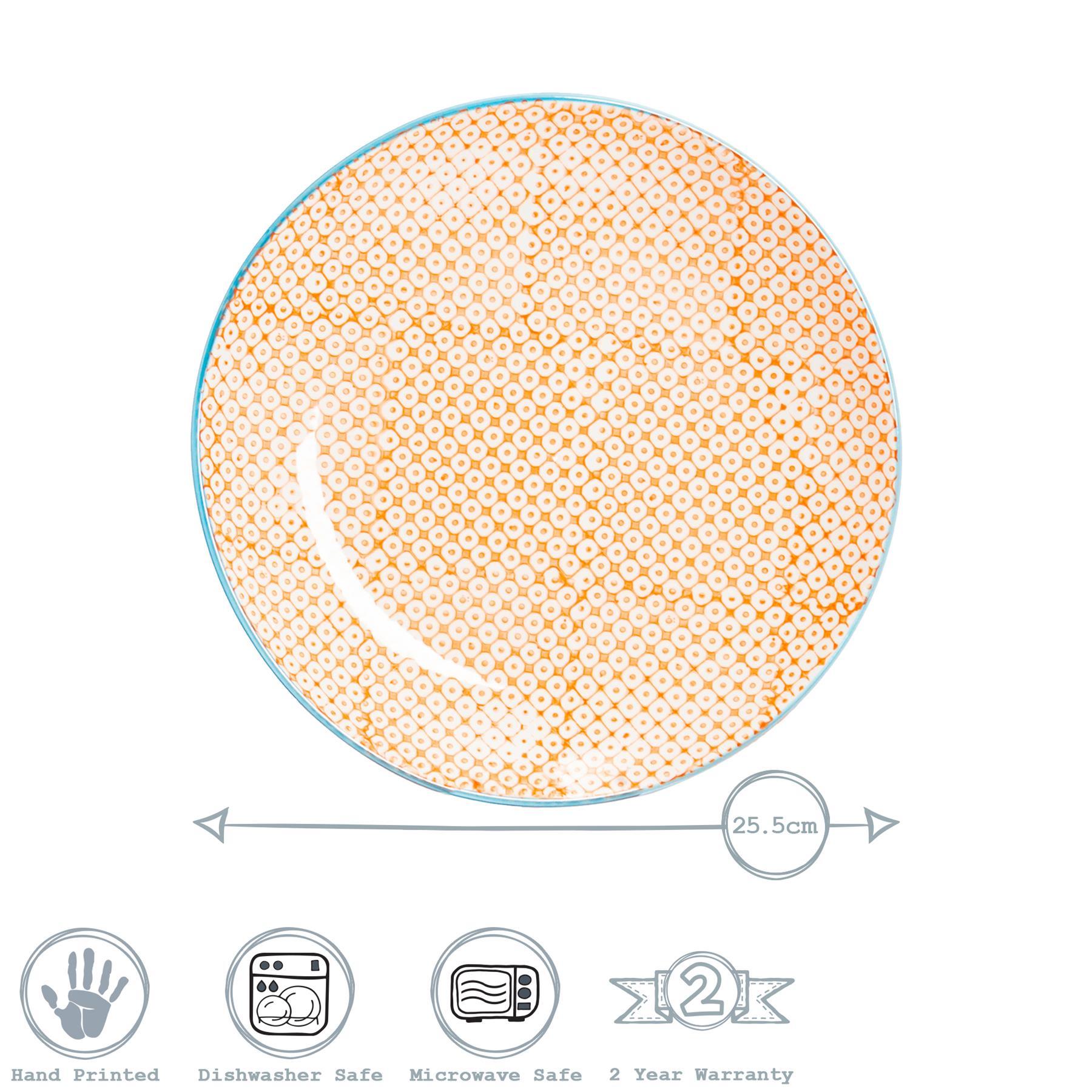 25.5cm Hand Printed China Dinner Plates - Pack of Six