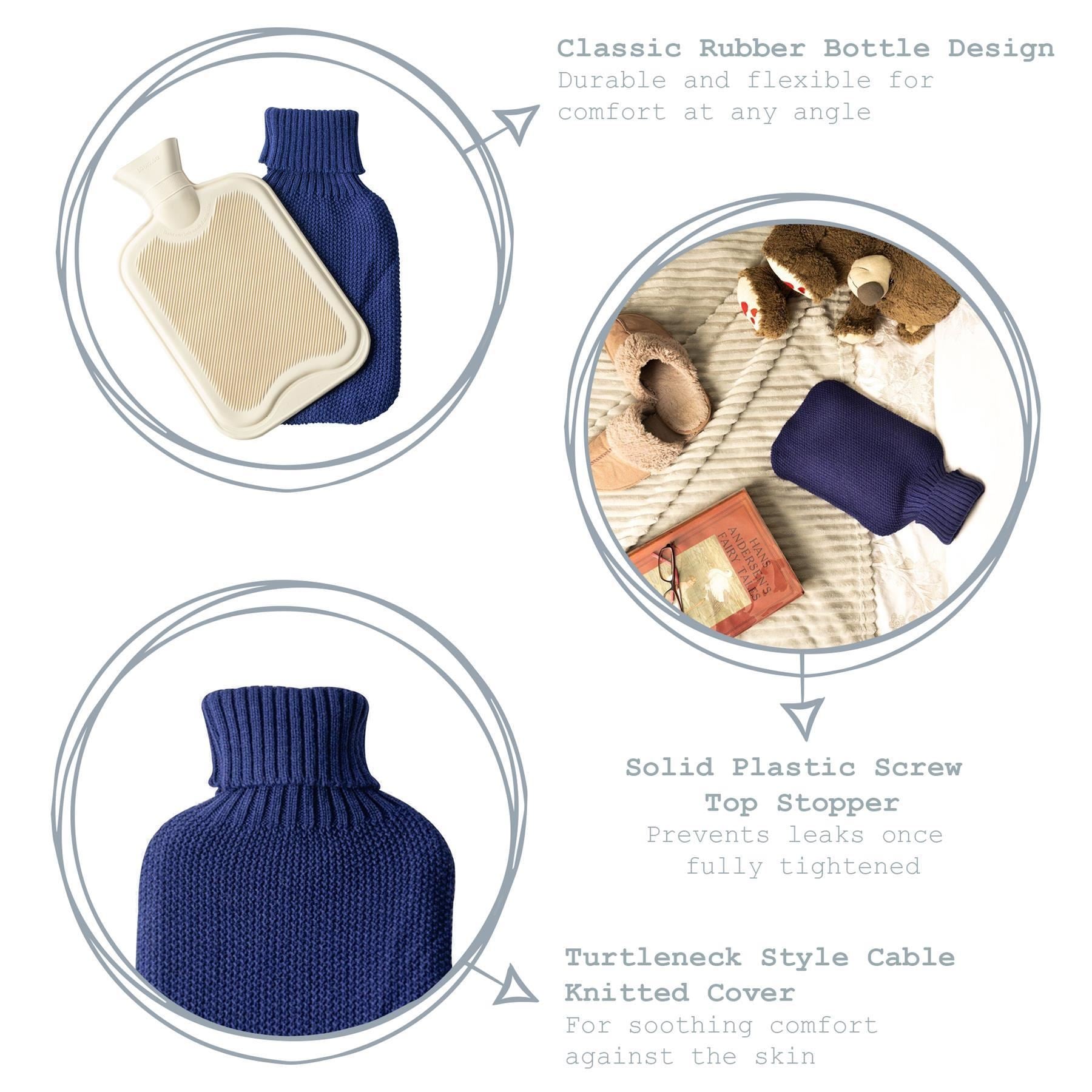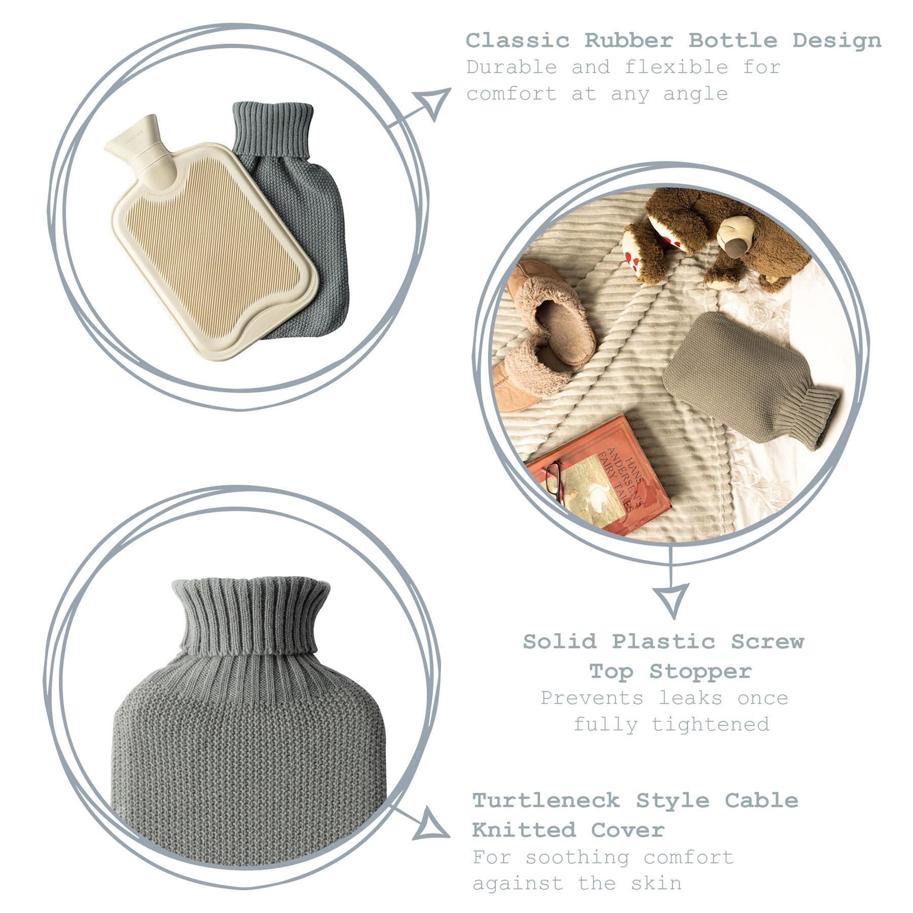 Classically designed from durable rubber, this bottle offers perfect, swift salvation from any winter chills, as well as helping to alleviate aches, pains and cramps in times of need. A cute turtleneck-style mustard cable knitted cover sits comfortably against the skin, while filling is made easy thanks to the leakproof solid plastic screw top stopper in the spout.