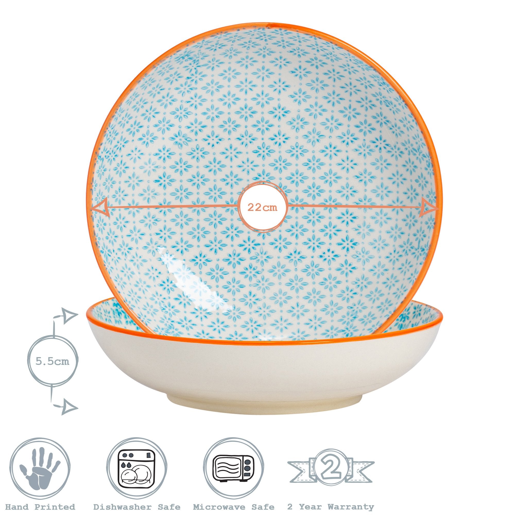 22cm Hand Printed China Pasta Bowls - Pack of Six