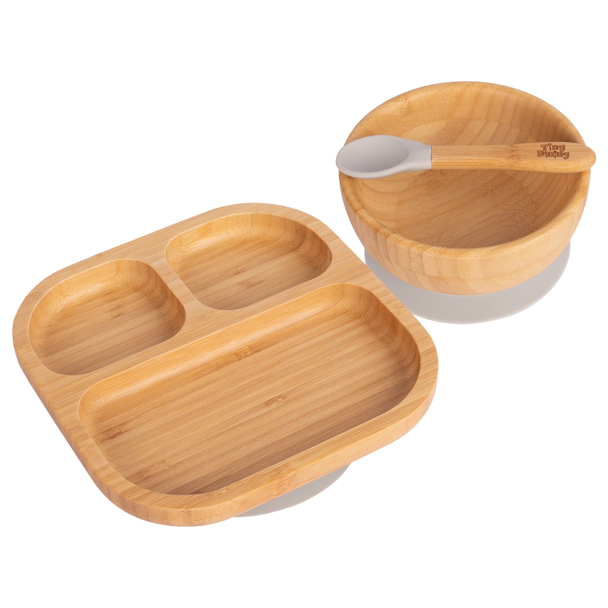 The Tiny Dining range of Bamboo Plates is the mealtime revolution that beleaguered parents have been waiting for, with innovative 'stay put' suction technology that keeps plates and bowls fixed to the tabletop, immune to the impact of flailing little limbs.