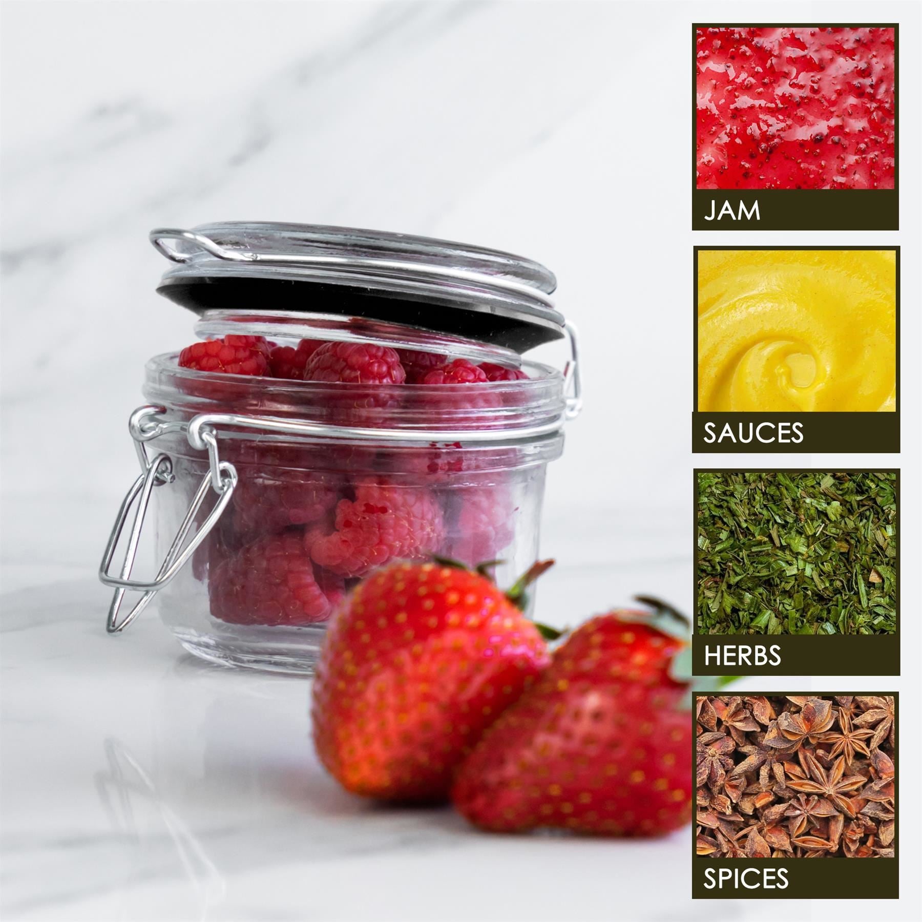 A stainless steel twisted wire clip top lid locks freshness and flavour inside the jar with the aid of a sturdy silicone ring - designed to offer far greater longevity of performance than traditional rubber.