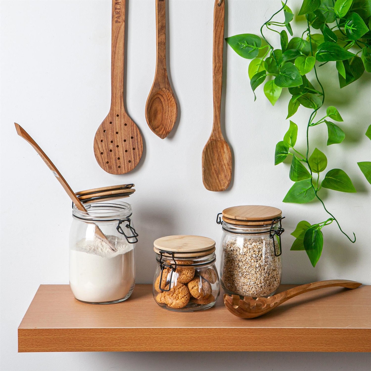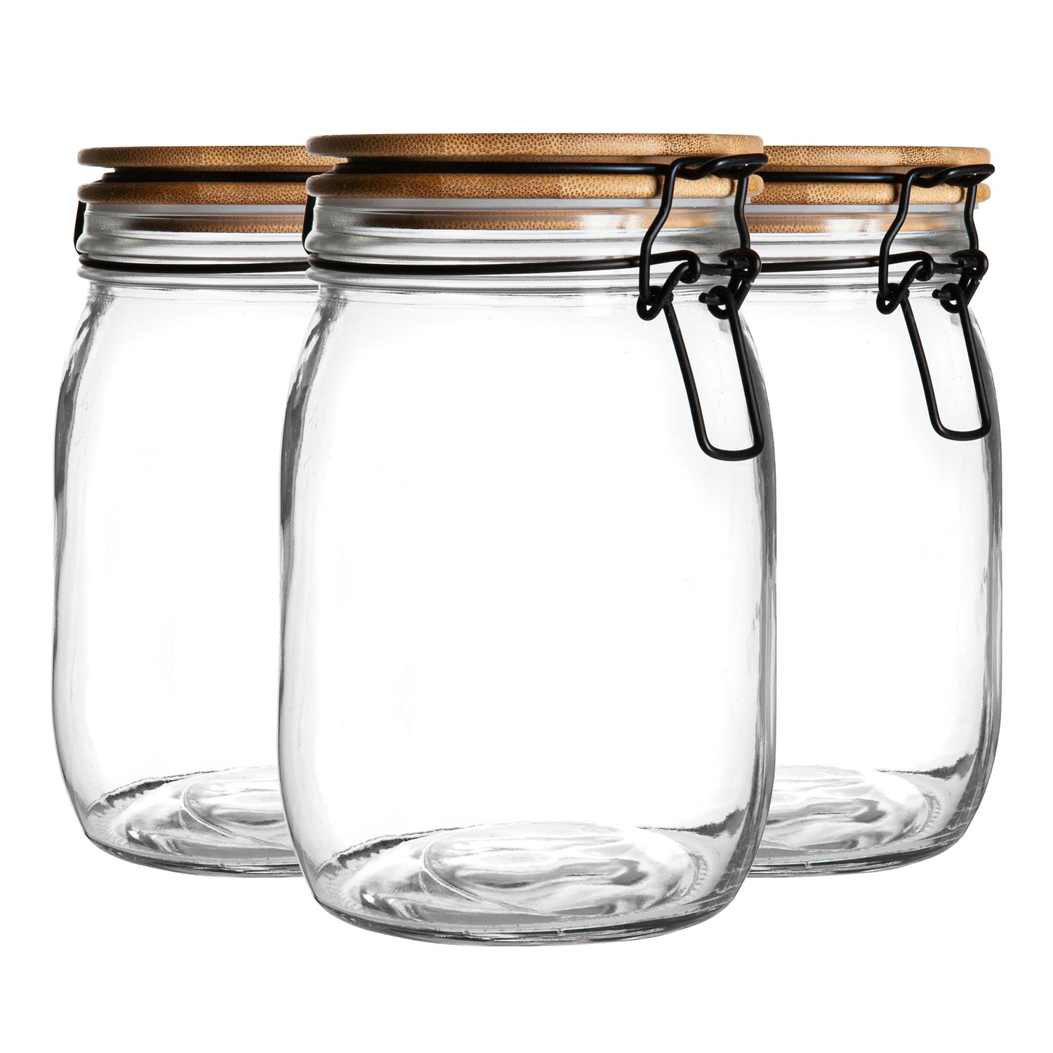 1L Glass Storage Jars with Wooden Clip Lid - Pack of 3