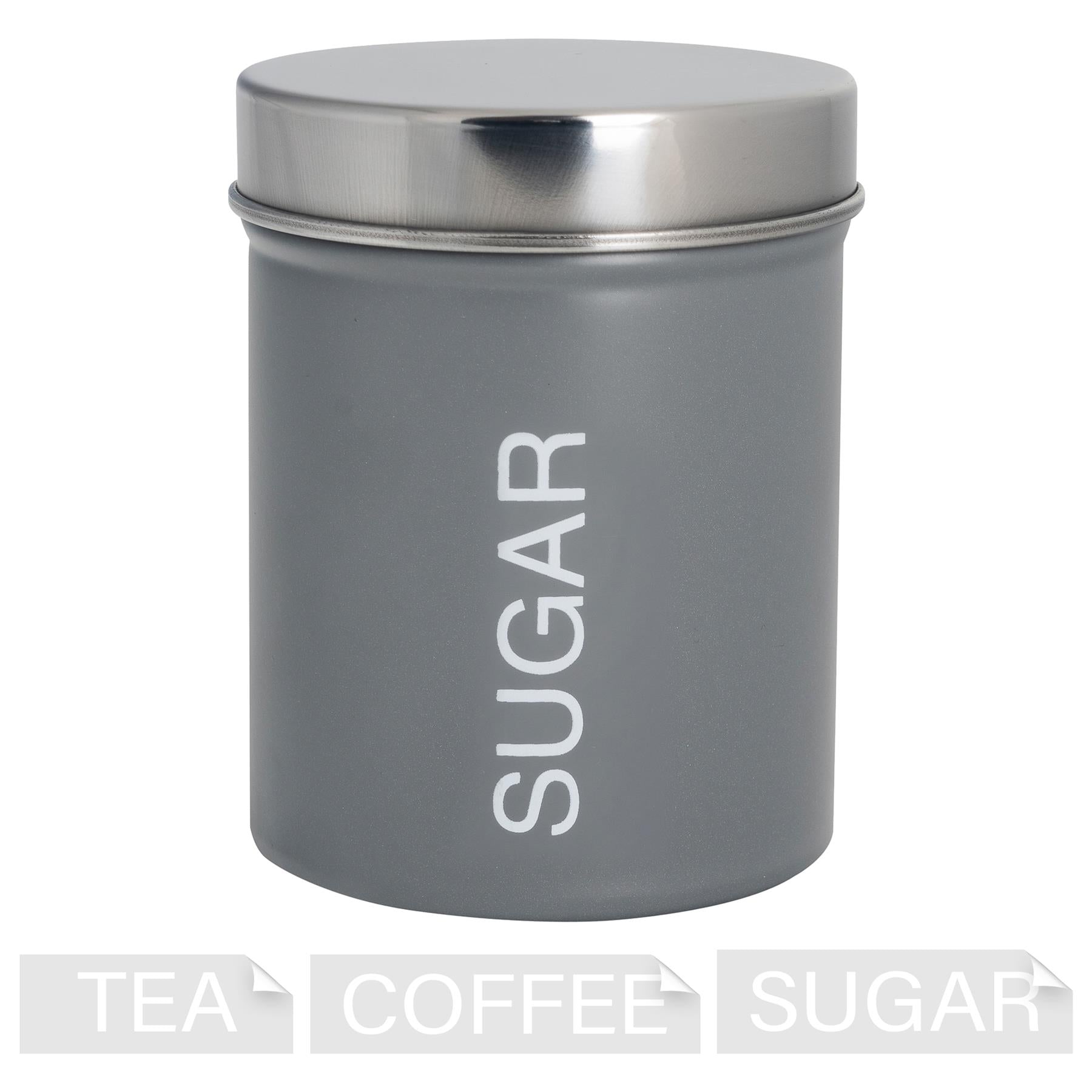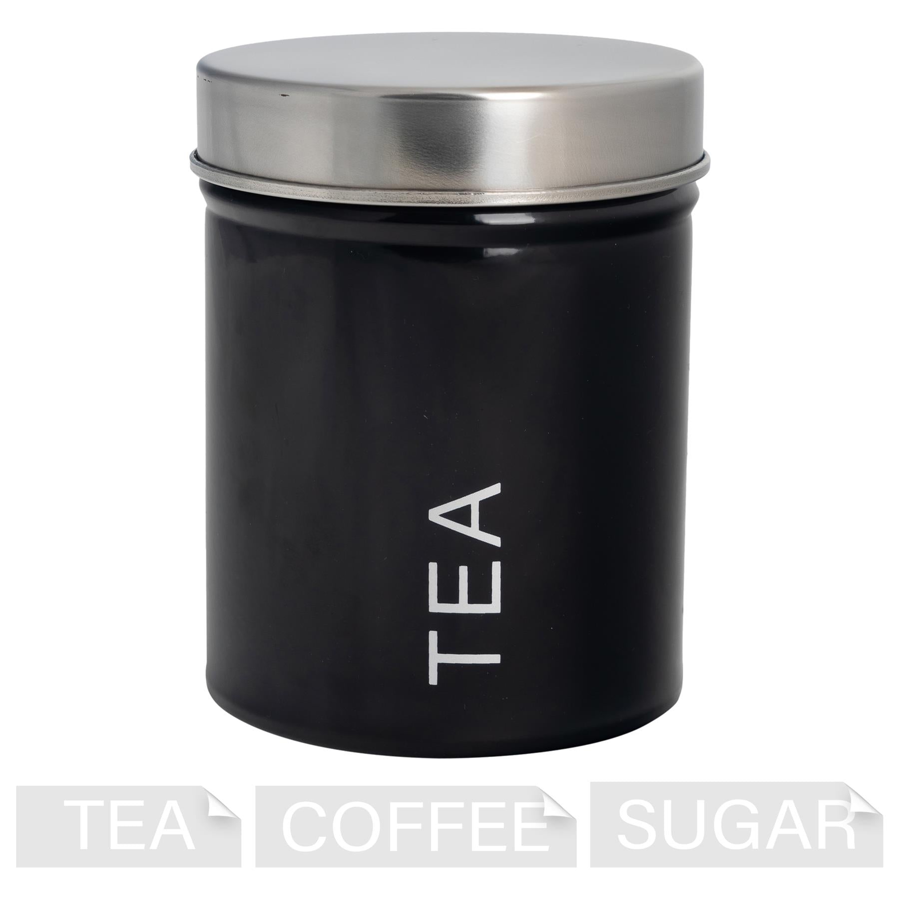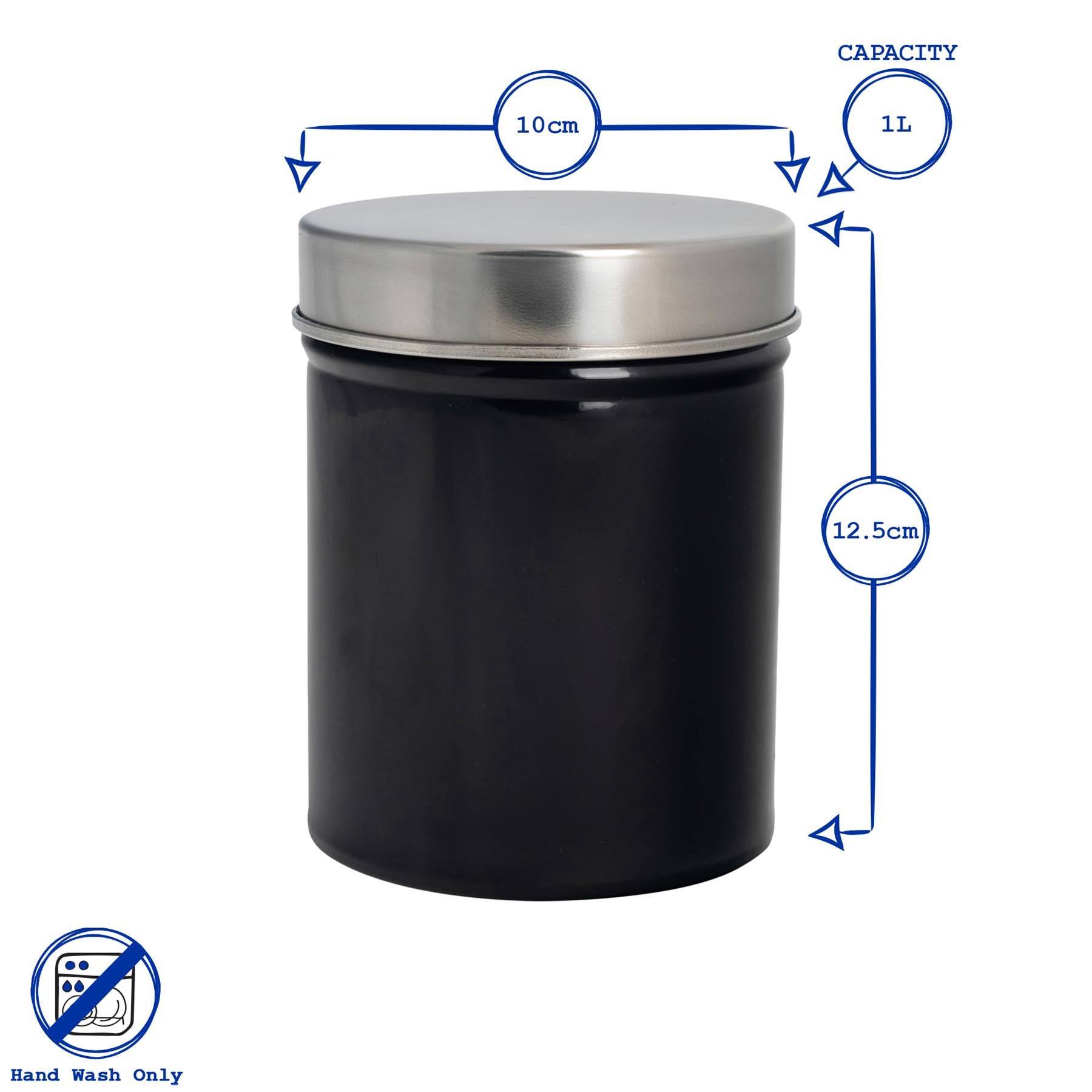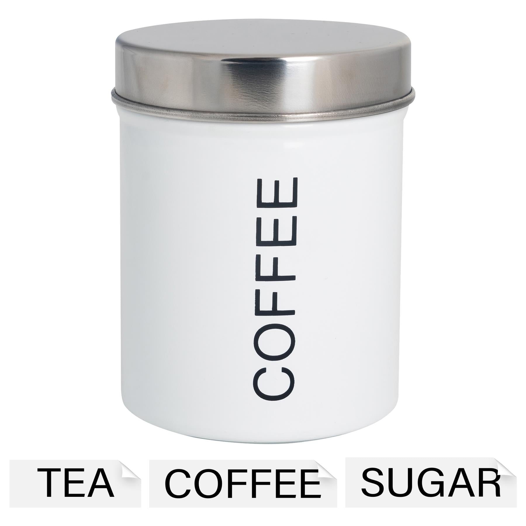 Round Metal Tea Coffee Sugar Canister with Labels - 1L