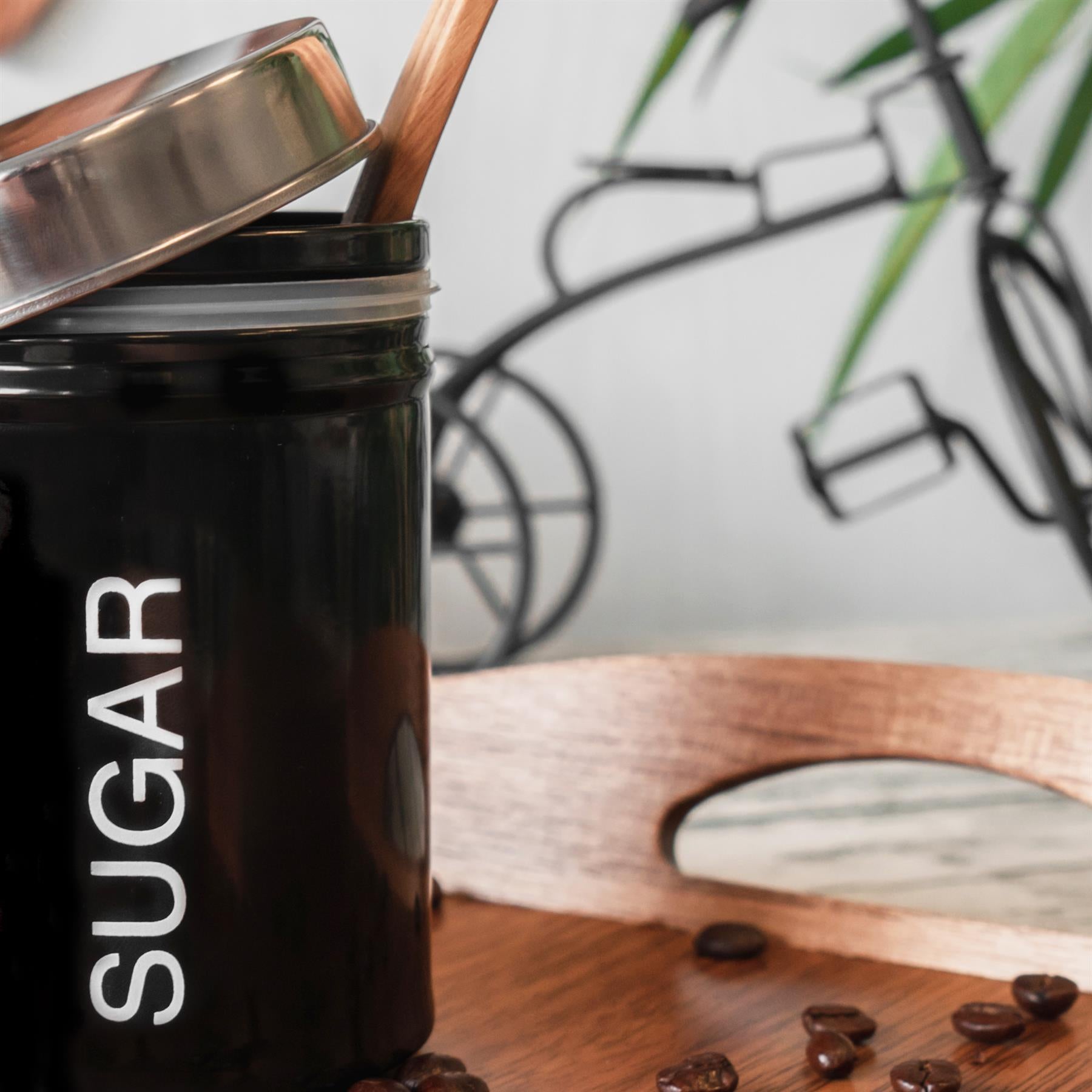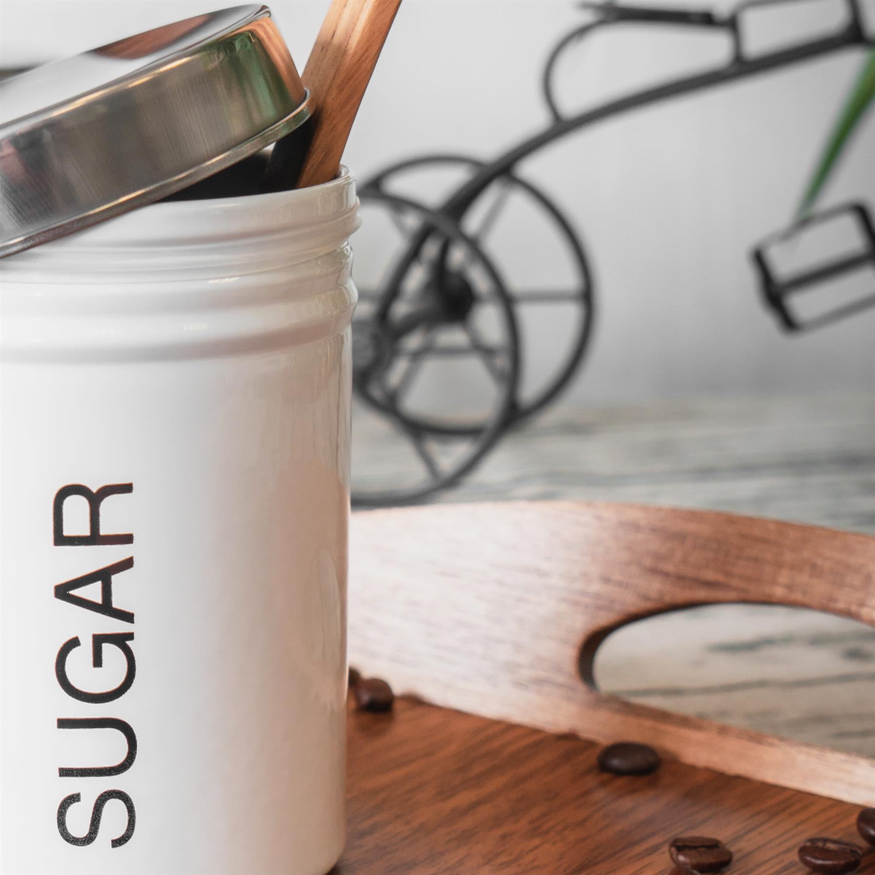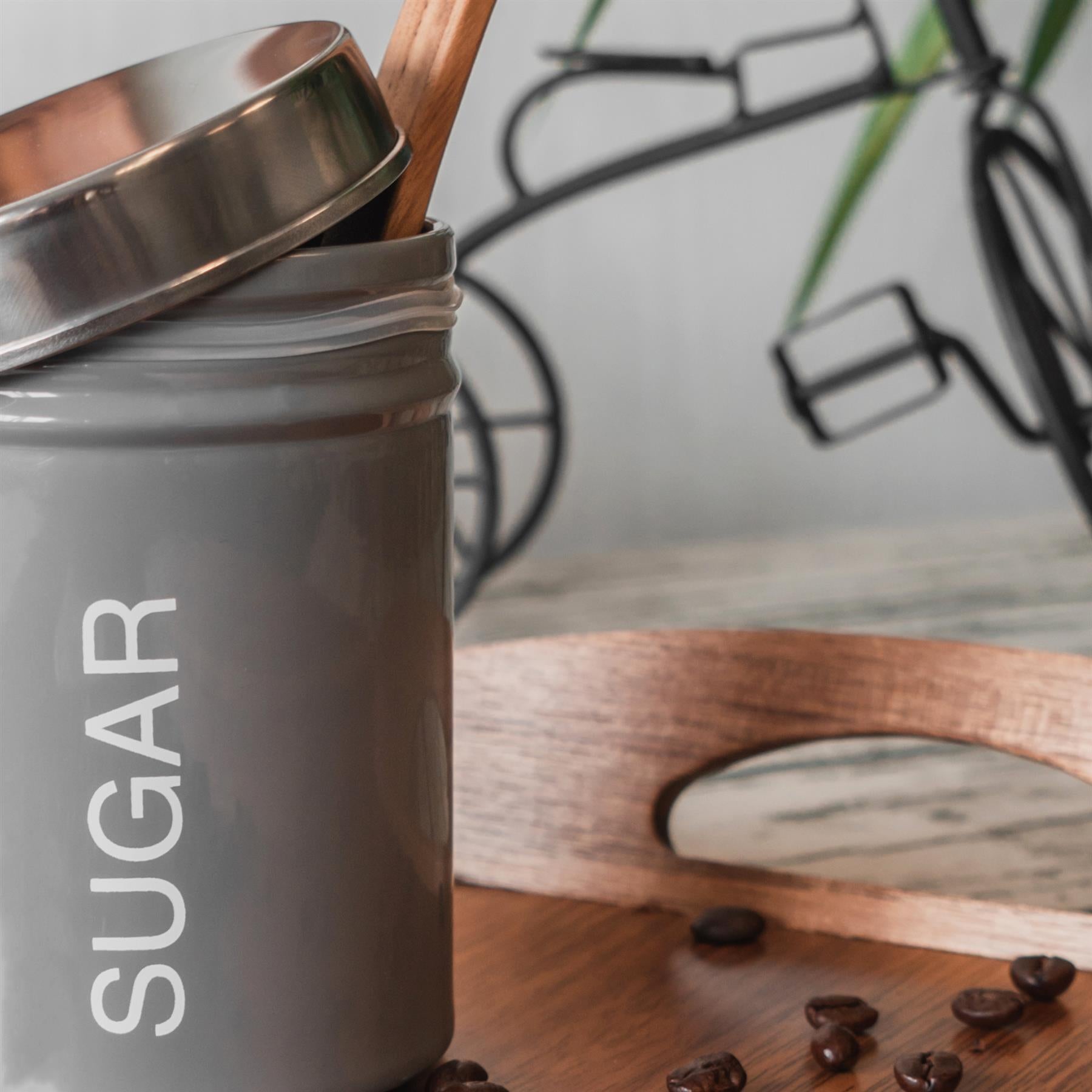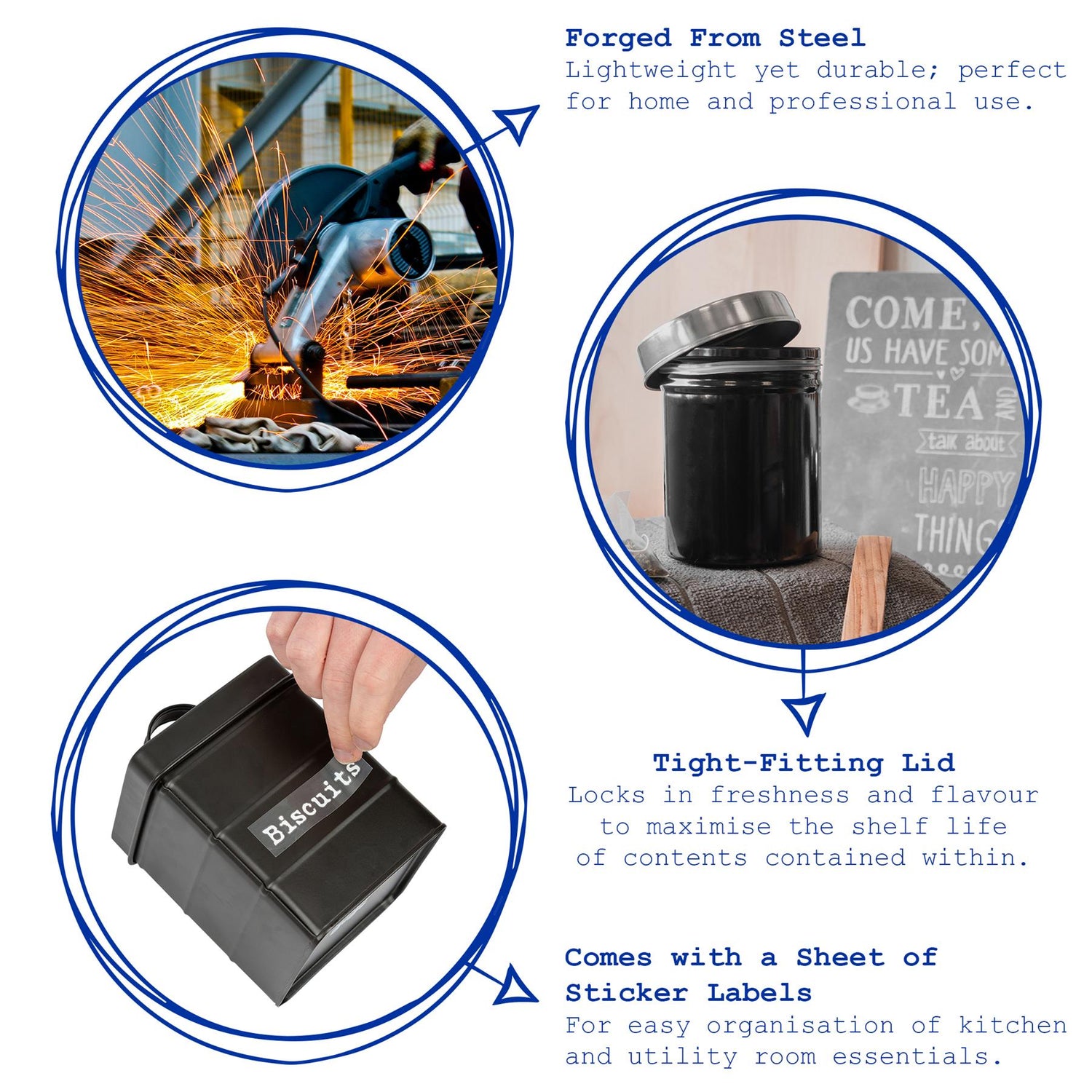 Round Metal Tea Coffee Sugar Canister with Labels - 1L