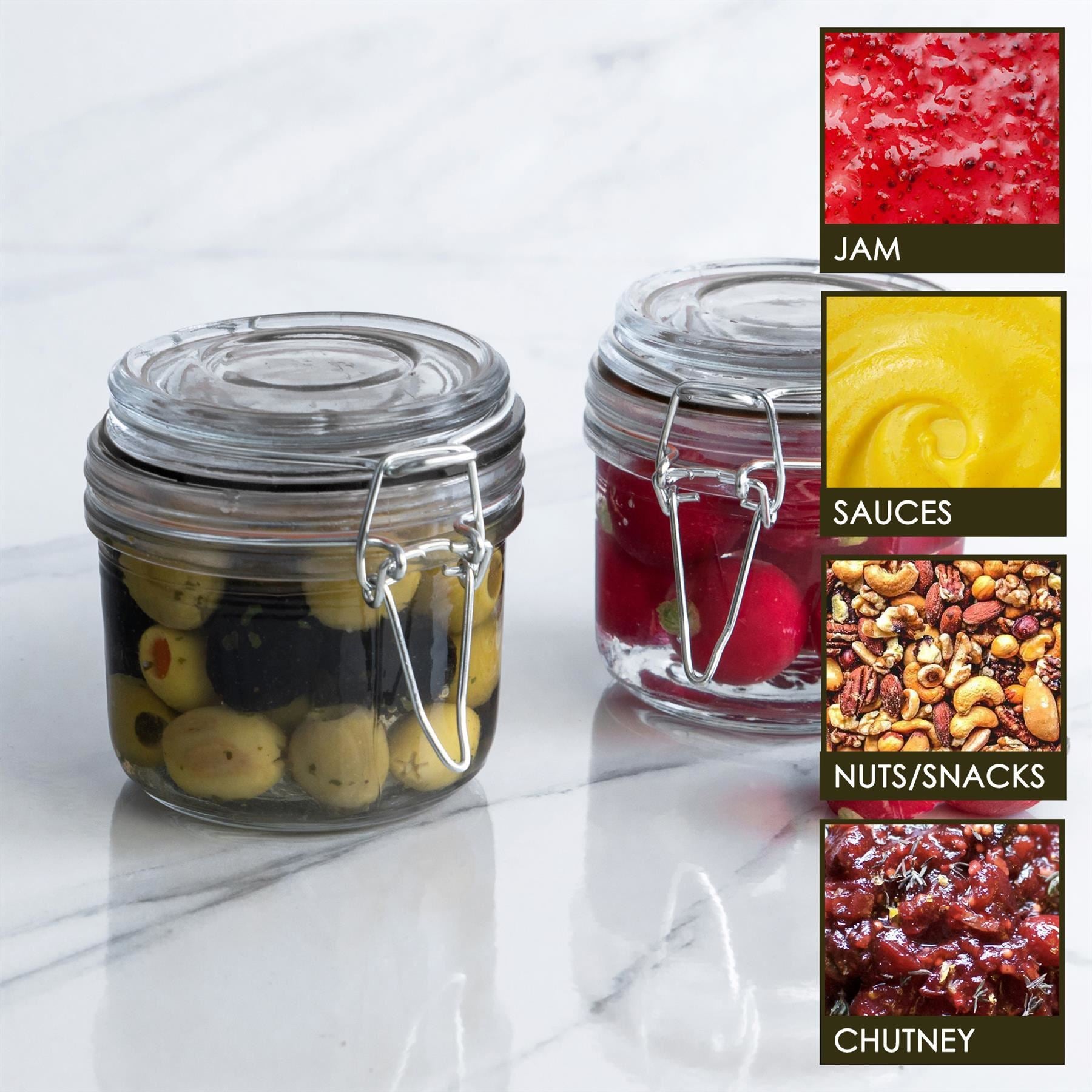 A stainless steel twisted wire clip top lid locks freshness and flavour inside the jar with the aid of a sturdy silicone ring - designed to offer far greater longevity of performance than traditional rubber.