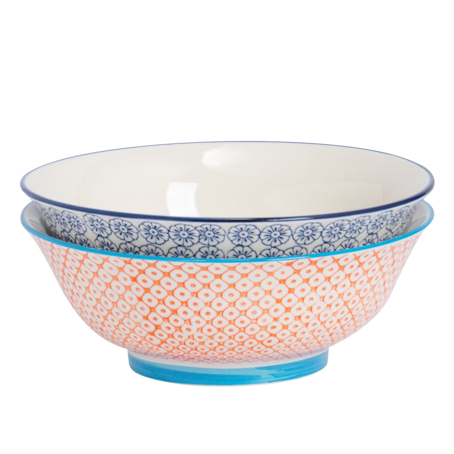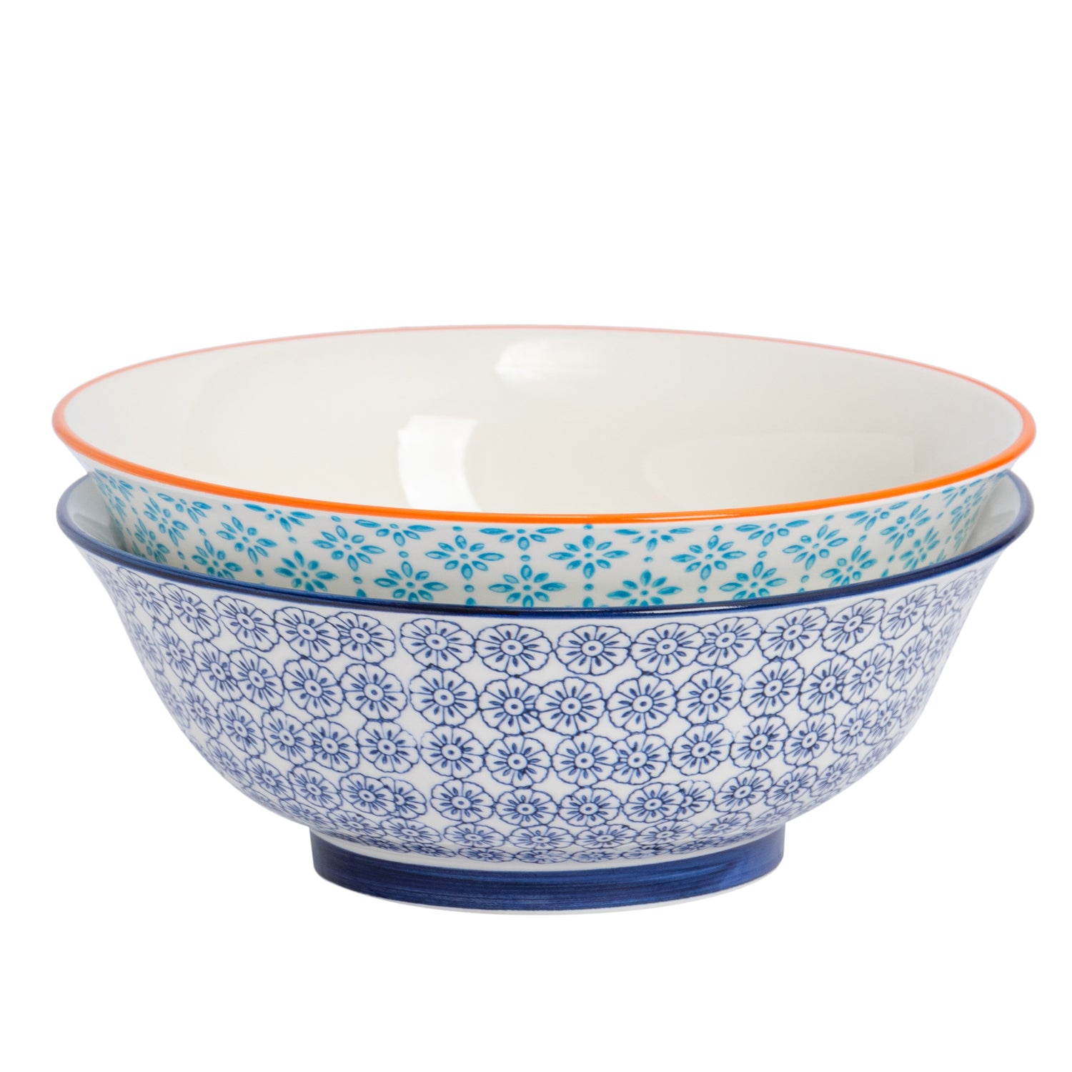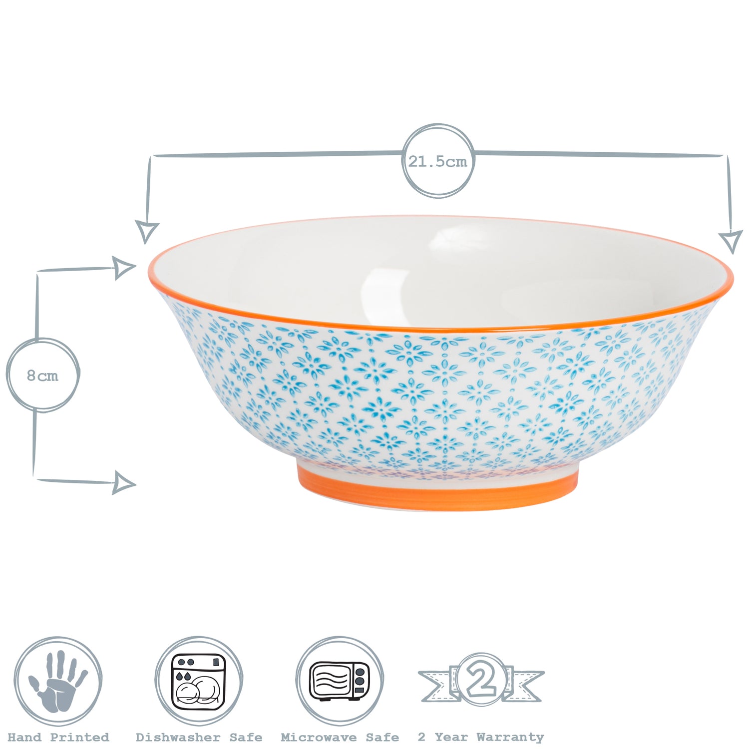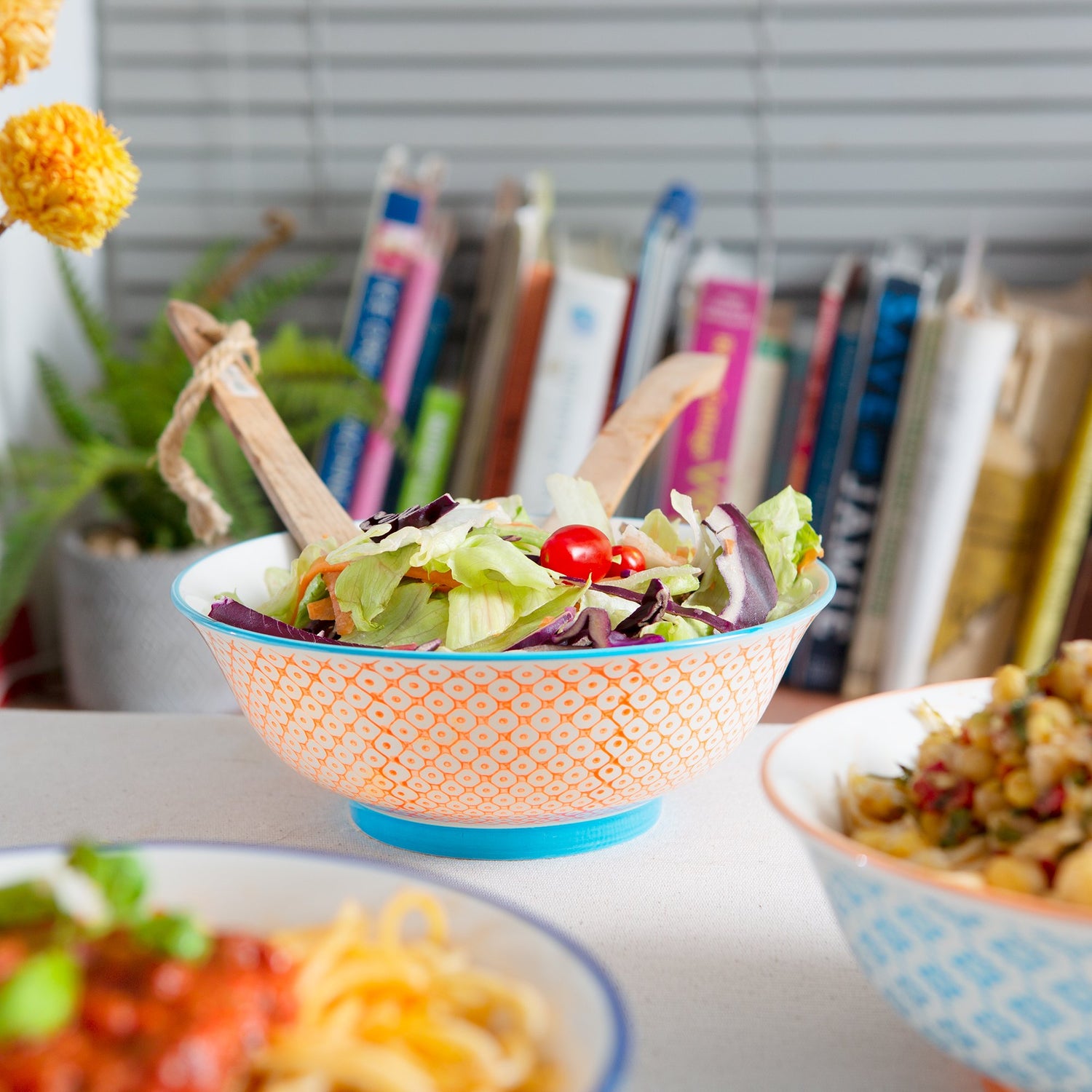 21.5cm Hand Printed China Salad Bowls - Pack of Two