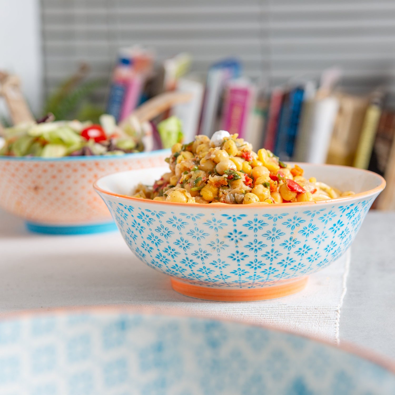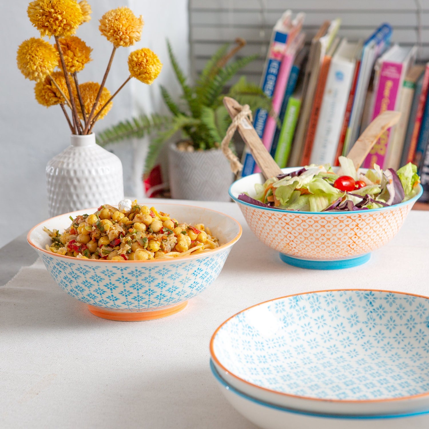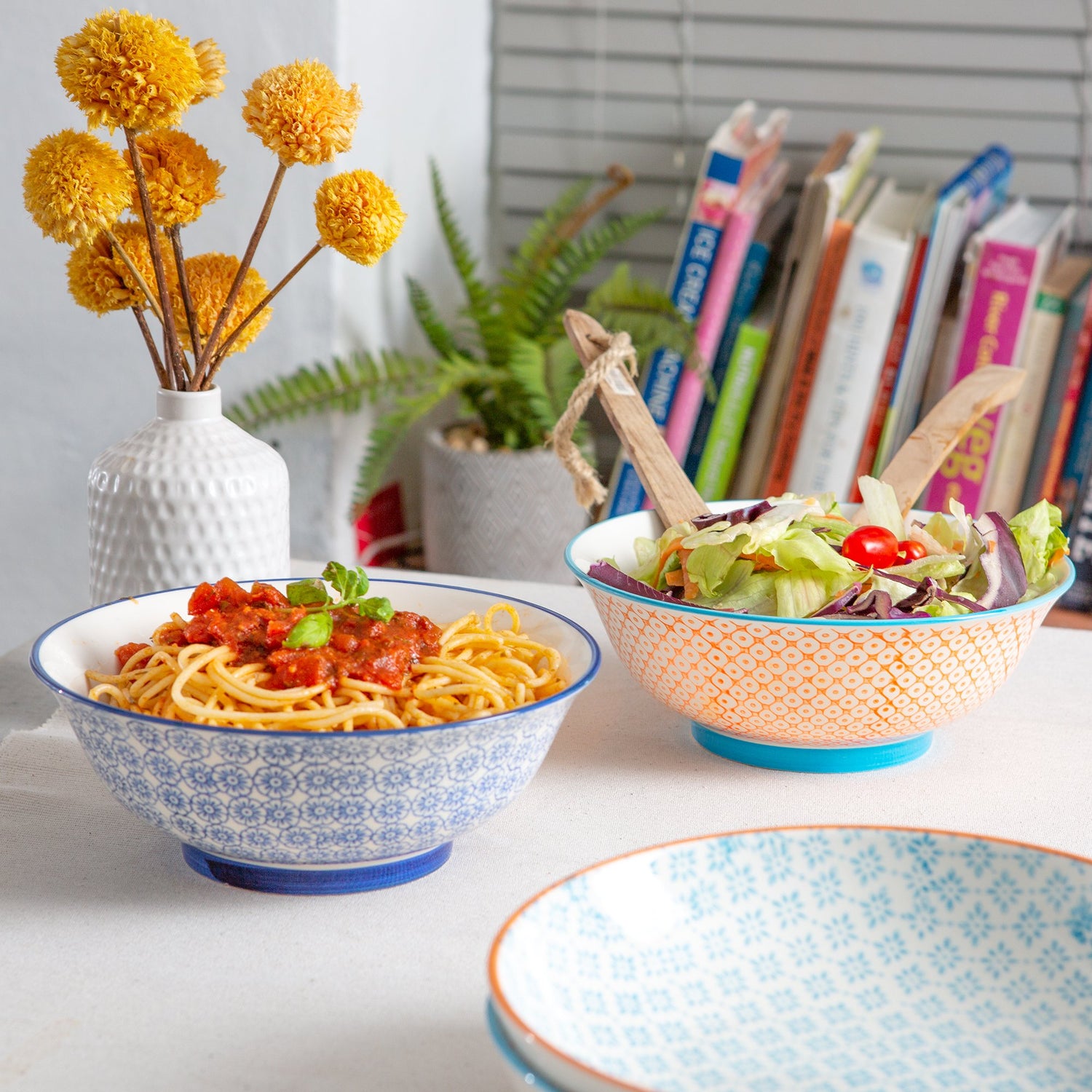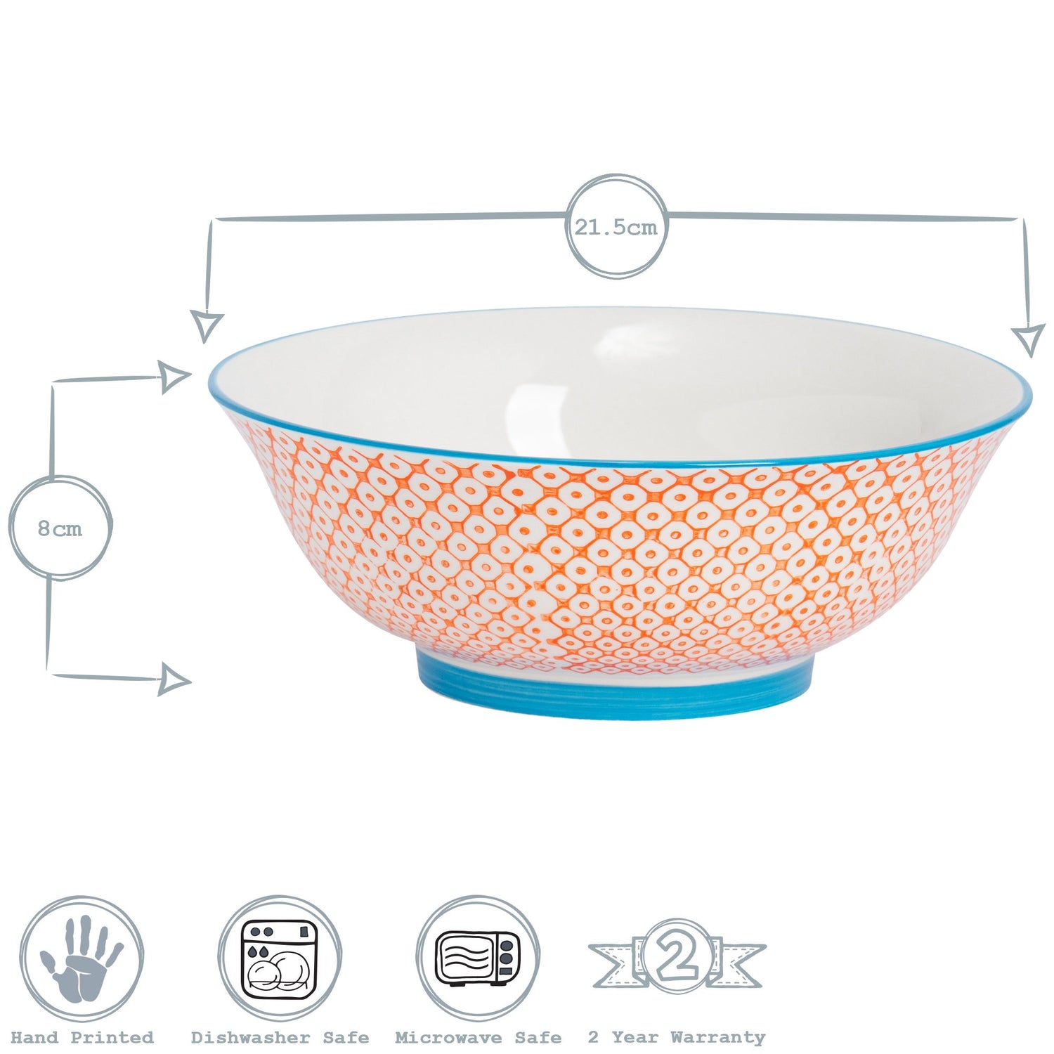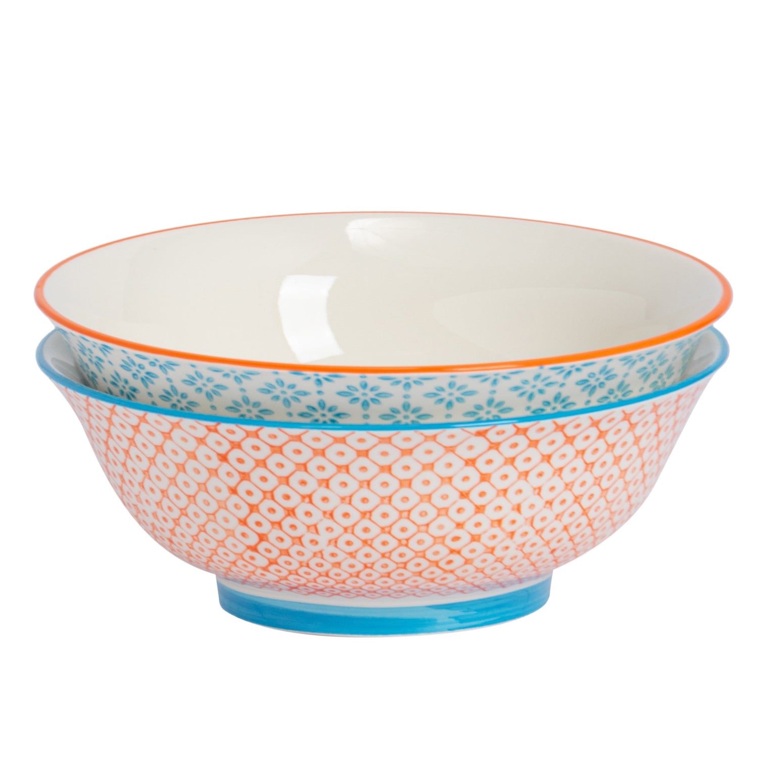 21.5cm Hand Printed China Salad Bowls - Pack of Two