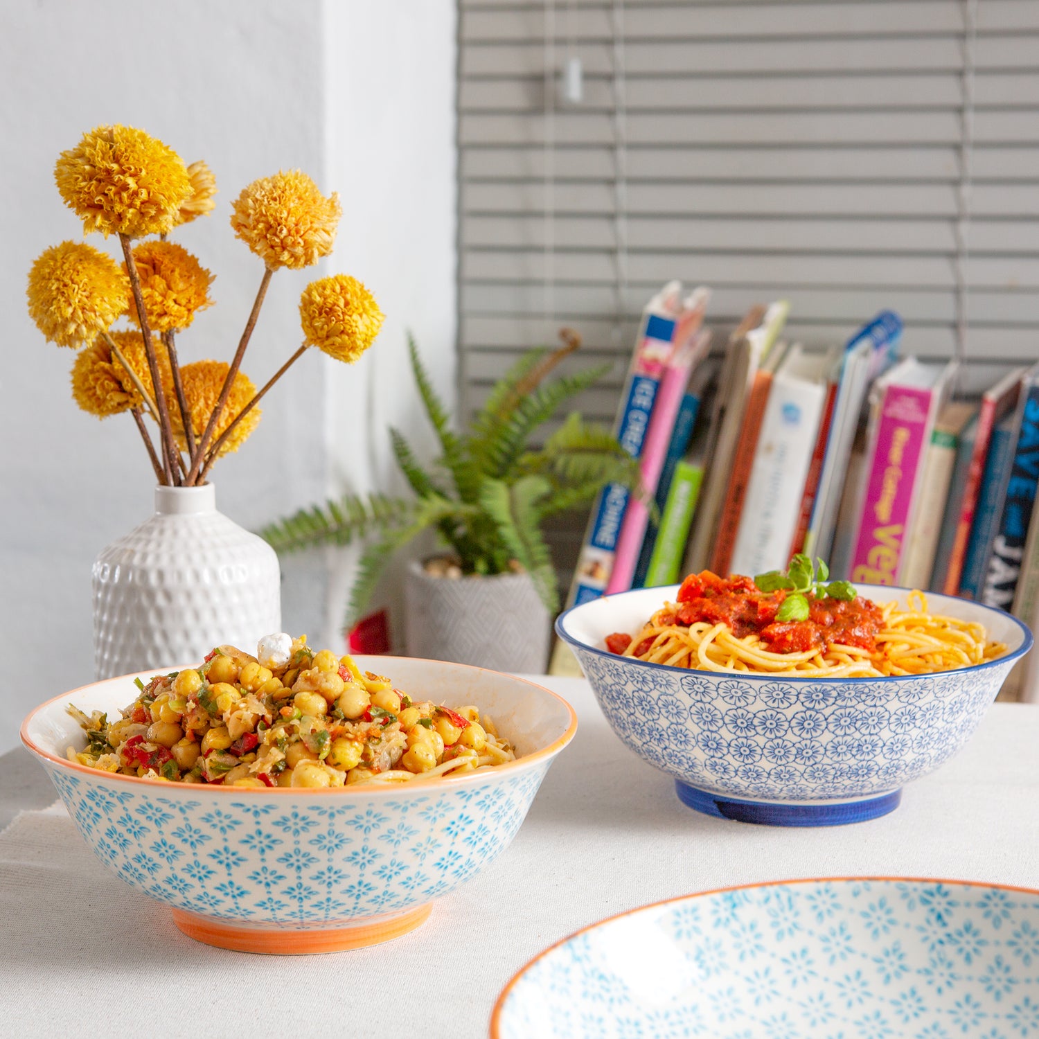 Our Nicola Spring Patterned Serving Bowls are hand painted and inspired by Japanese design. Brighten up lunchtimes and add a touch of colour to your kitchen with these serving bowls that are ideal for salads and fruit bowls.