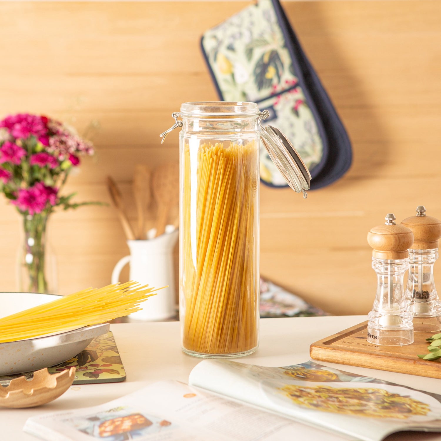 At 33cm tall, this jar is the perfect size for storing spaghetti, noodles or other types of pasta. The strong, airtight seal provided by the metal wire locking mechanism around the flip top lid ensures maximum freshness, while the use of food-safe silicone in the seal (as opposed to rubber) means these containers are resistant to both hot and cold temperatures.