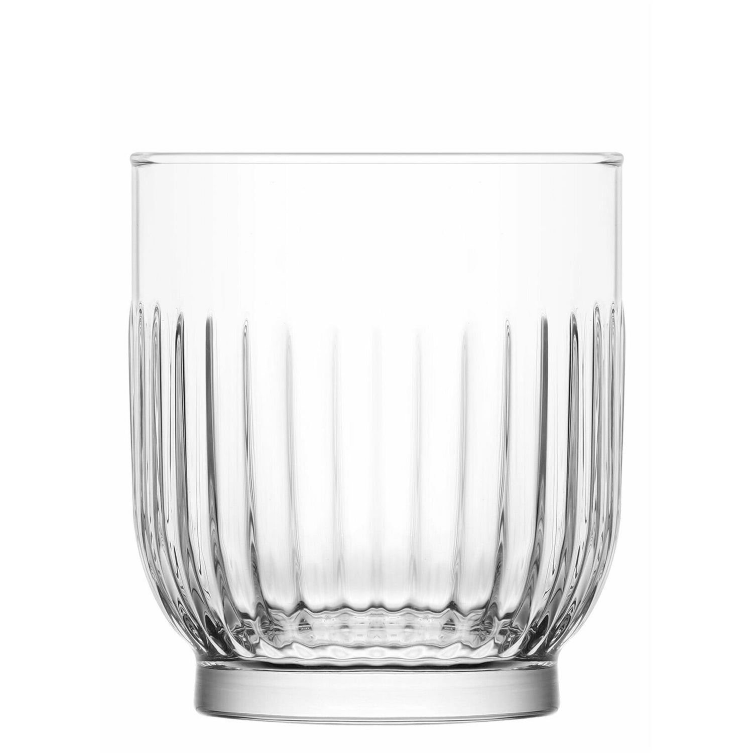 Each glass in this collection has been encircled with a delicate series of grooves and ridges that dance in the light, casting intricate light reflections upon surrounding surfaces.