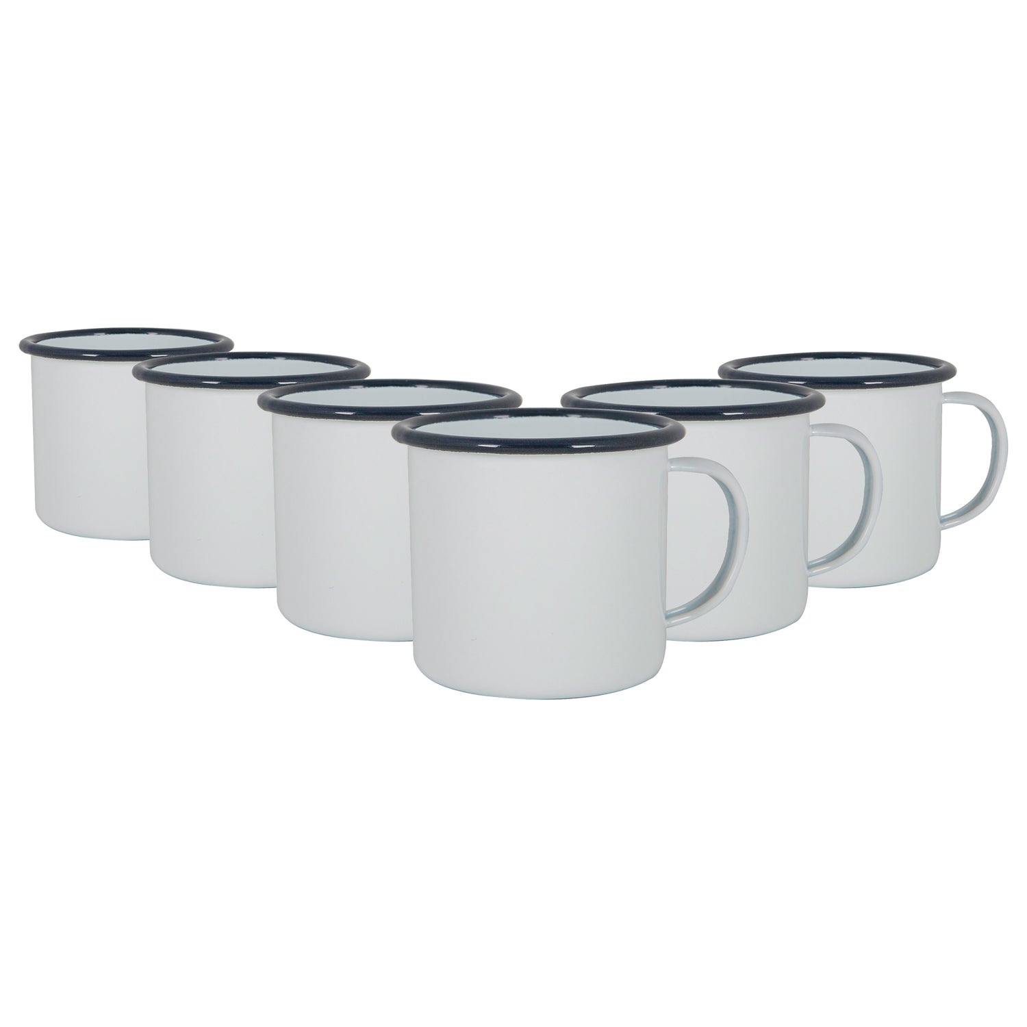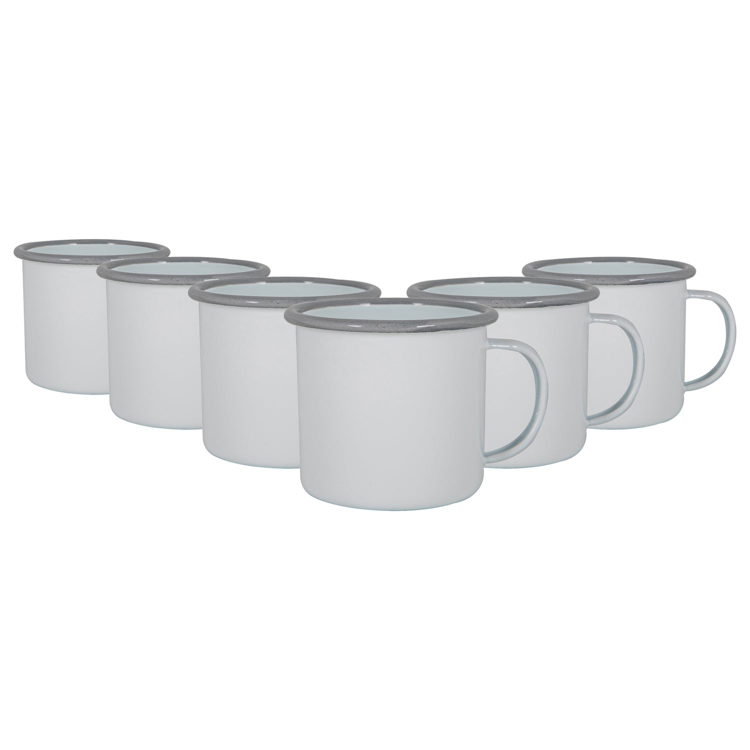 Add some traditional rustic tone and texture to your tea and coffee service with this 6 piece set of White Enamel Mugs from Argon Tableware.