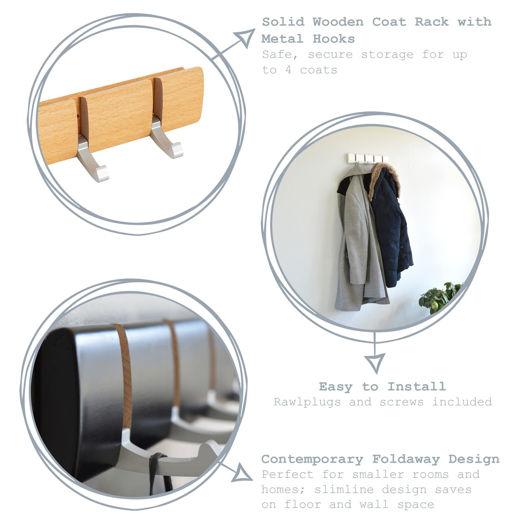 Crafted from sturdy natural wood, these coat racks are easy to install on any wall in your home or office using the screws and rawlplugs provided. The metal hooks are strong enough to support a variety of attires and accessories, and fold completely flat inside the purpose-built grooves of the wooden board when not in use to create a clean, crisp finish.