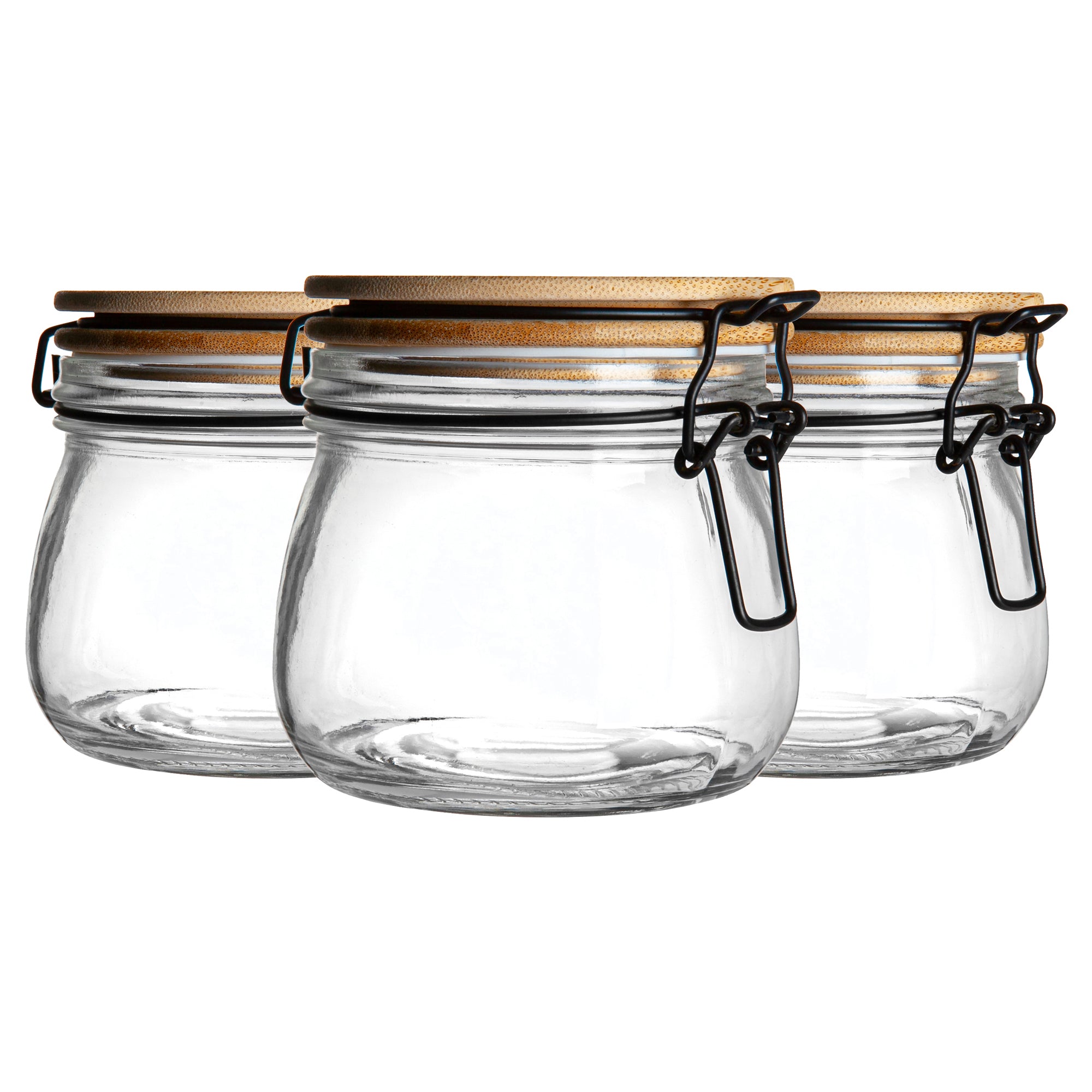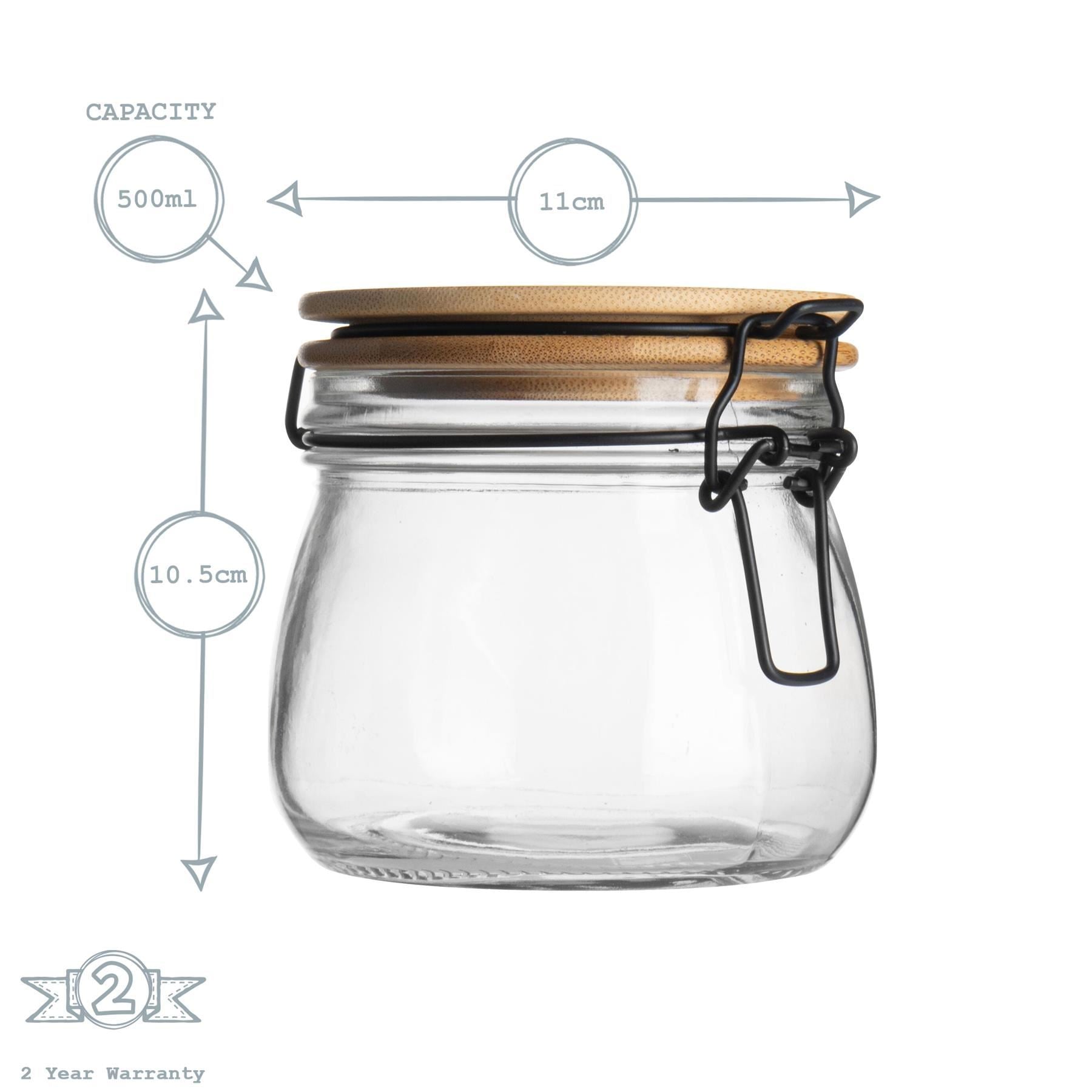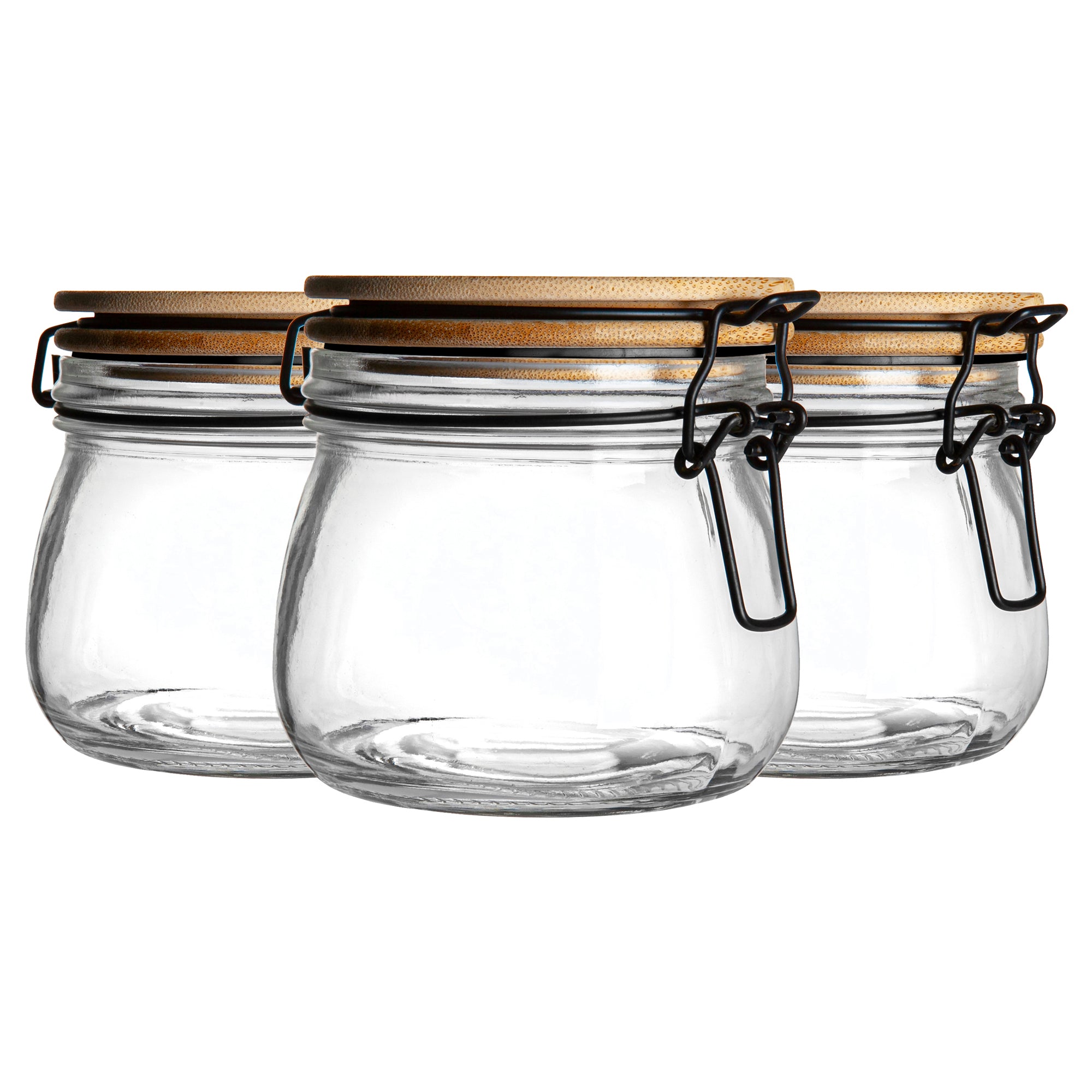 500ml Glass Storage Jars with Wooden Clip Lid - Pack of 3