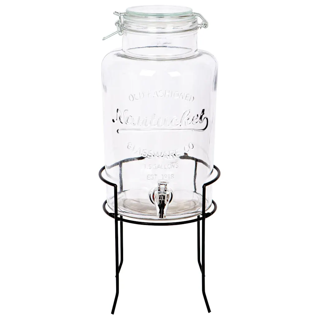 A sleek metal stand allows this dispenser to be set back from the edge of tables or counters for additional safety and security, while the embossed "Old Fashioned Nantucket Glassware" logo provides the perfect retro finishing touch to classic, coastal and industrial interiors alike!