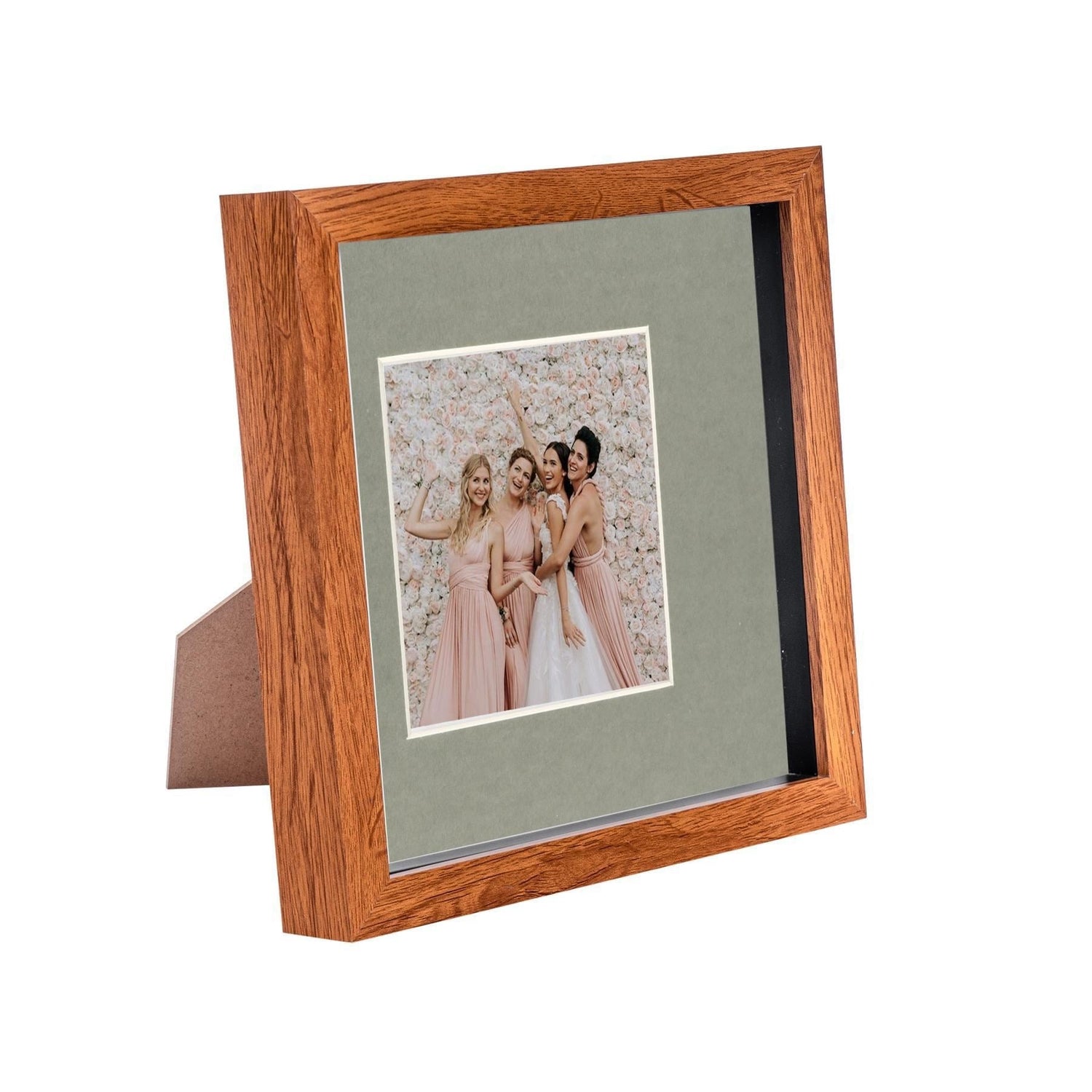 8" x 8" Dark Wood 3D Box Photo Frame with 4" x 4" Mount