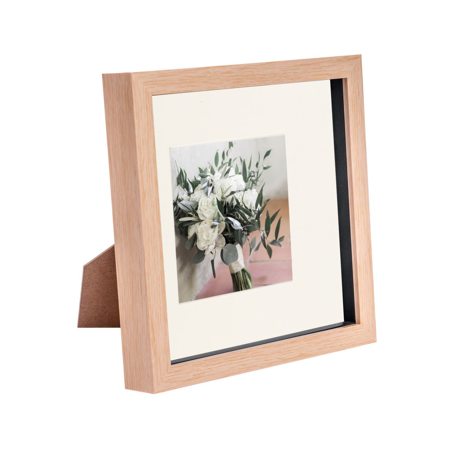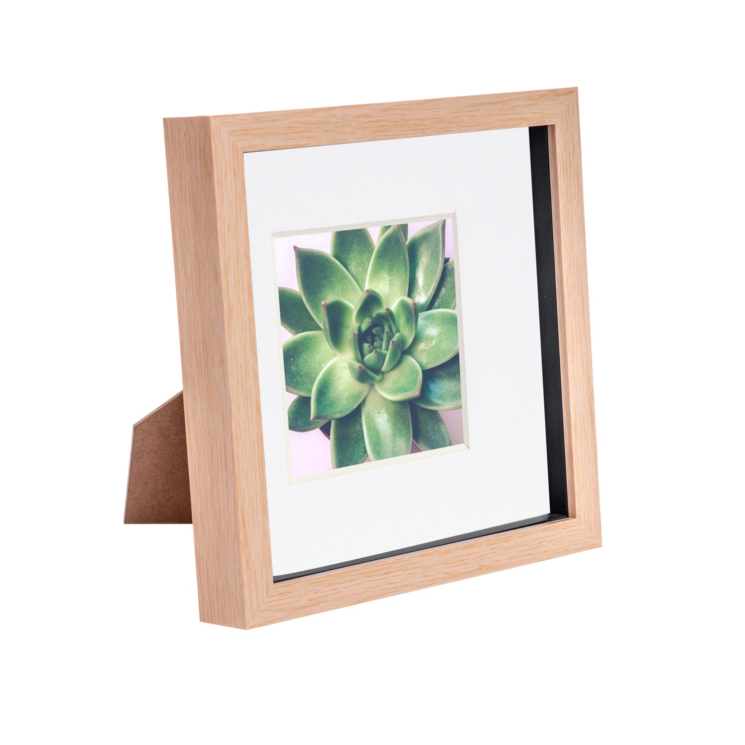 8" x 8" Light Wood 3D Box Photo Frame with 4" x 4" Mount