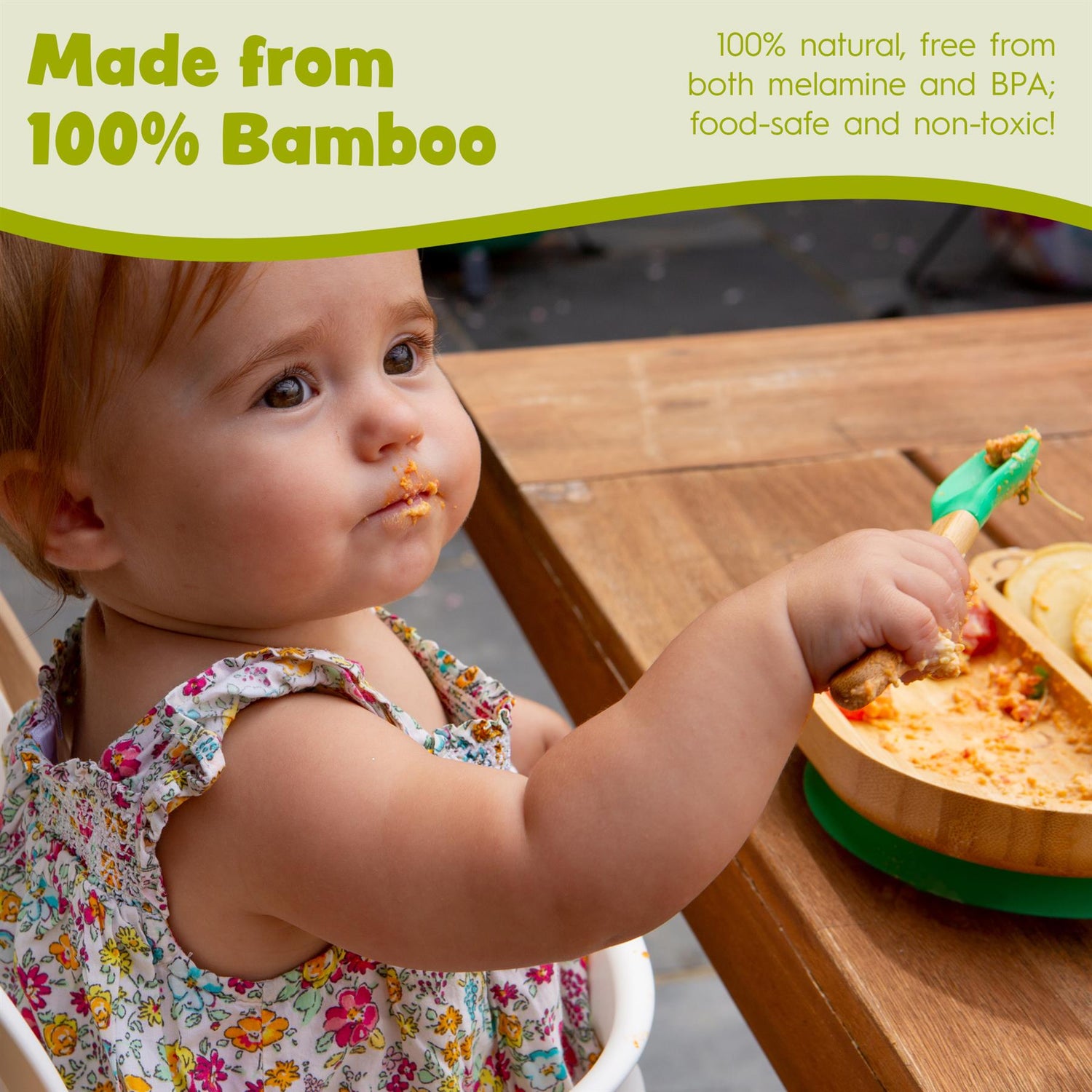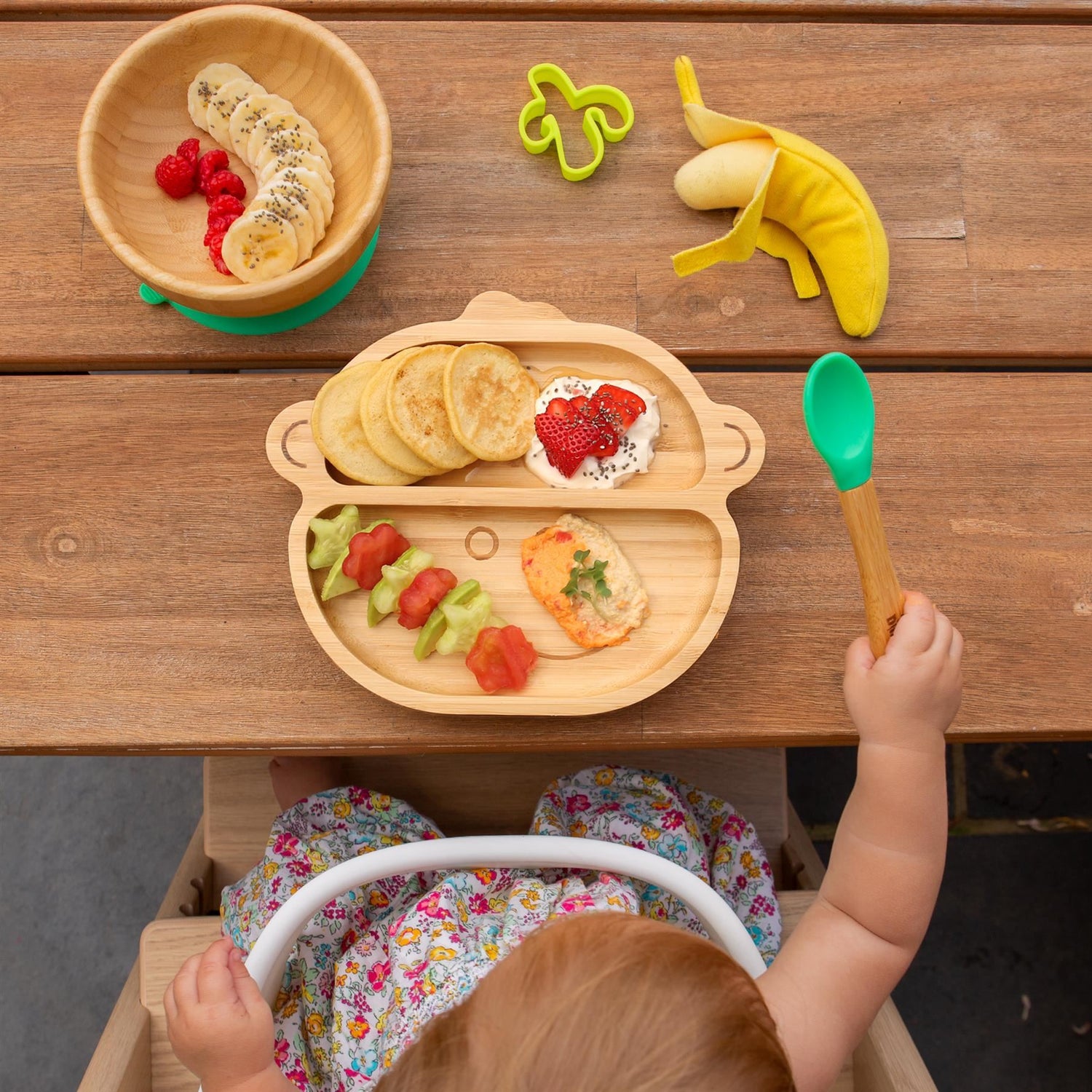 Perfectly designed for meals at all times of day, the segmented monkey design of this plate allows you to keep foods separated for easy feeding, while the heat-resistant properties of bamboo keep tiny fingers protected should they reach out and touch the sides.