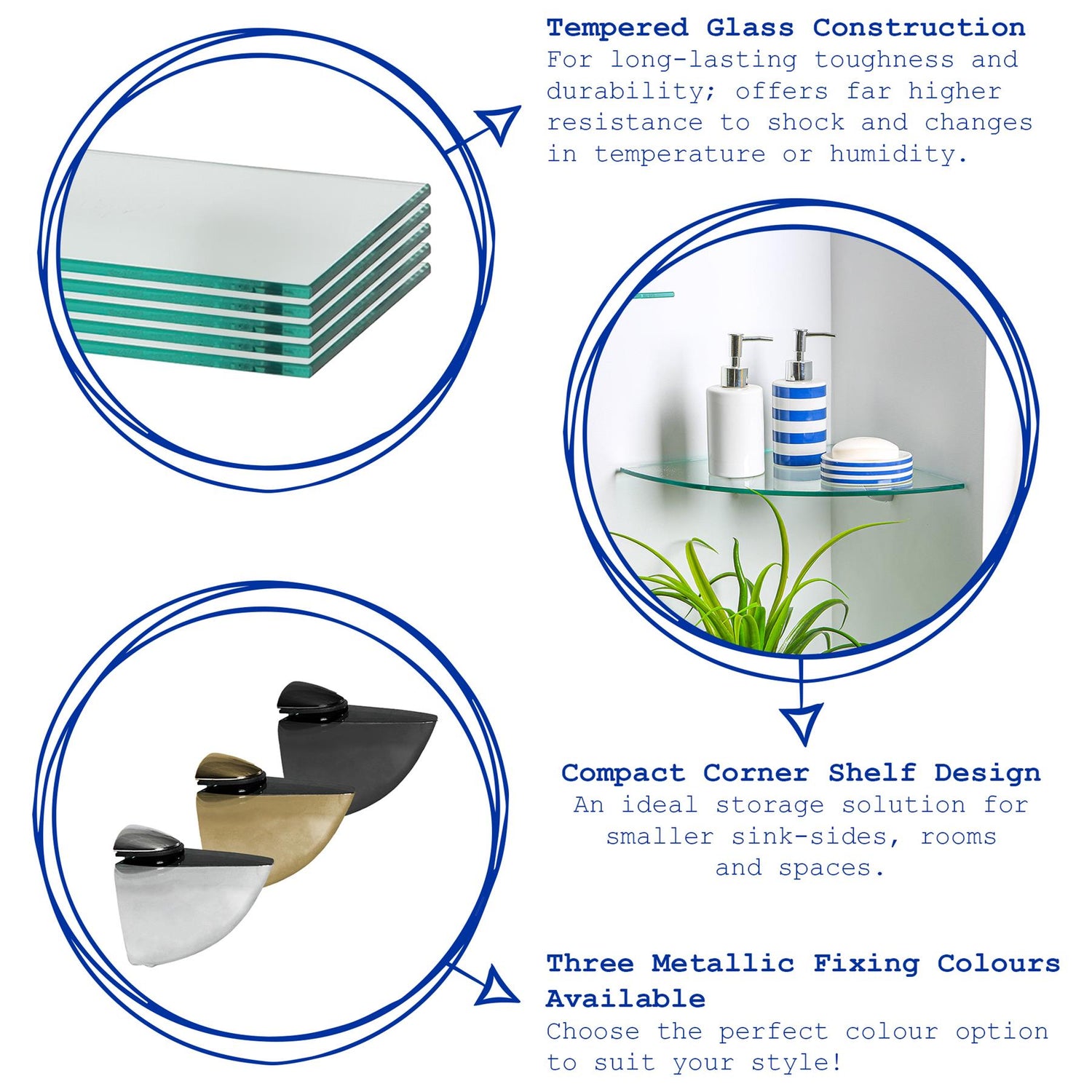 Keep your sink-side and shower-time essentials neat, organised and close at hand with this Floating Glass Bathroom Corner Shelf from Harbour Housewares.
