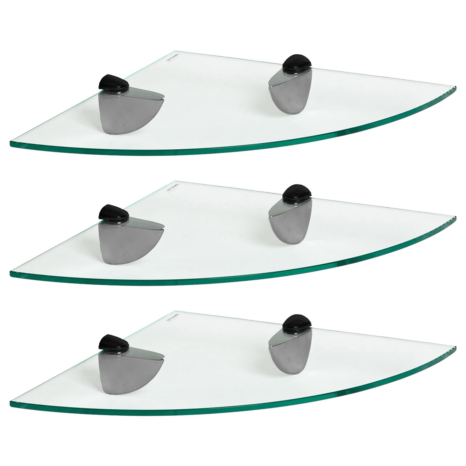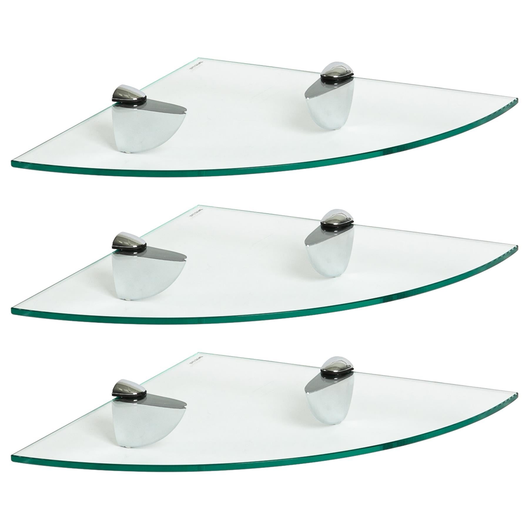 Floating Glass Bathroom Corner Shelves - 30cm - Pack of 3