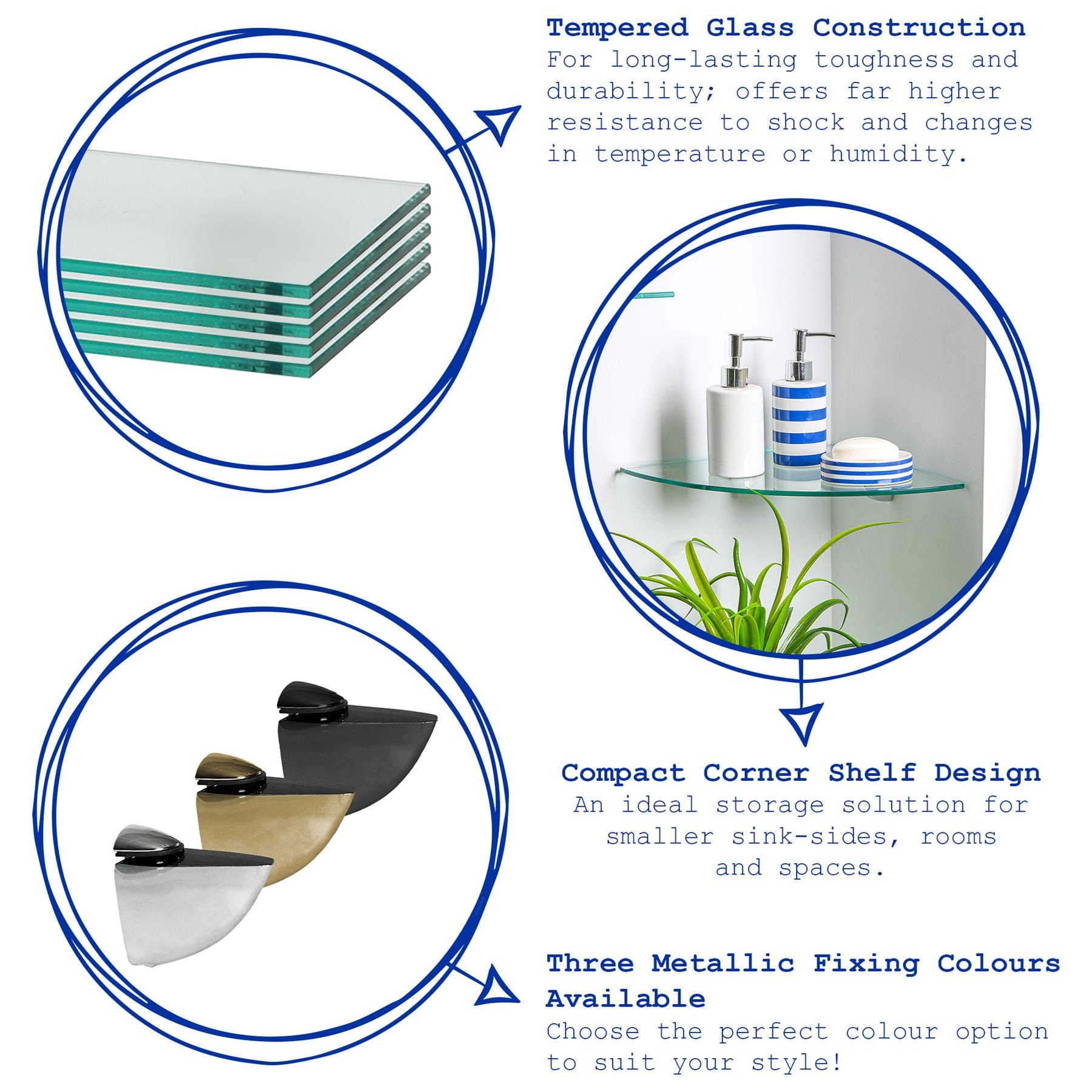 Each shelf comes with all required fixtures and fittings provided. Choose from three metallic bracket colours and find the perfect fit to suit your style!