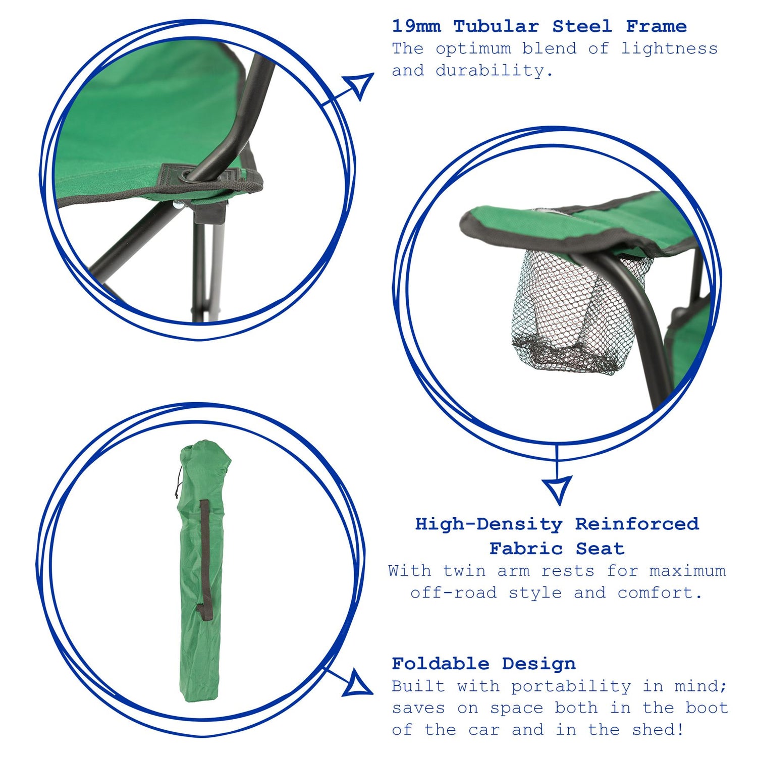 These are brilliant. So strongly made, great width to sit in, drink holder built into armrest. Great height for getting up and sitting down, you can open them with one hand and they fold up small so easily, plus a drawstring bag to slip them into to put in the boot of the car for example. I ordered two for the garden and was so impressed that I immediately ordered two more for the car. As a bonus, I got them at superb sale price. Another great purchase!! Well done Rinkit😊👌
