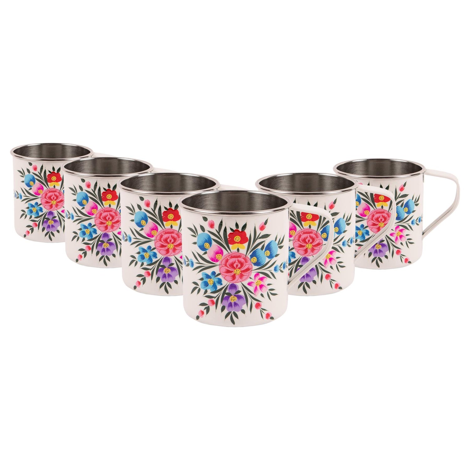 The elegant floral motif has been hand-painted by a collective of traditional artists from the Kashmir region of India, giving each piece an individual flavour and its own unique story to tell. The large 450ml capacity offers ample serving space for whatever kind of caffeine kick takes your fancy; from tea to coffee, hot chocolate to a hot toddy and more!