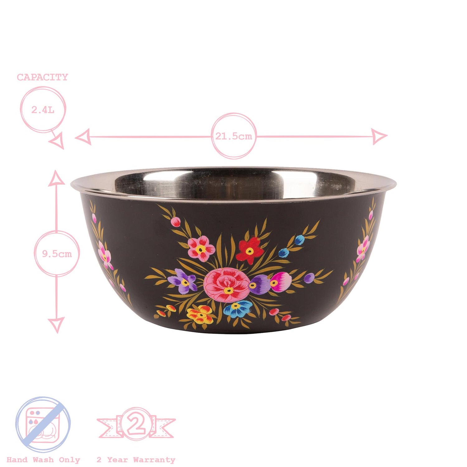 The elegant floral motif has been hand-painted by a collective of traditional artists from the Kashmir region of India, giving each piece an individual flavour and its own unique story to tell. The three different bowl sizes stack neatly inside one another for convenient, space-saving transportation and storage.