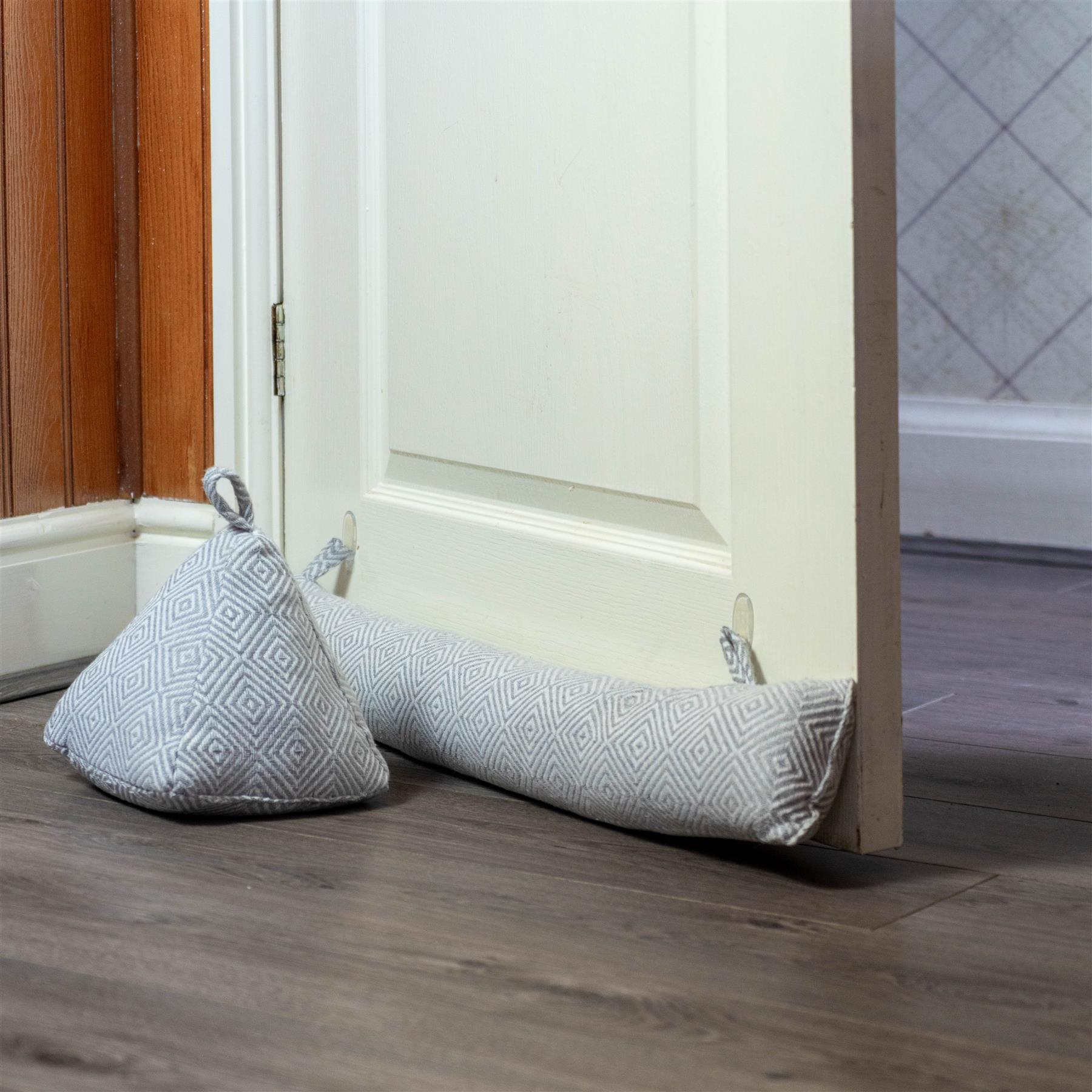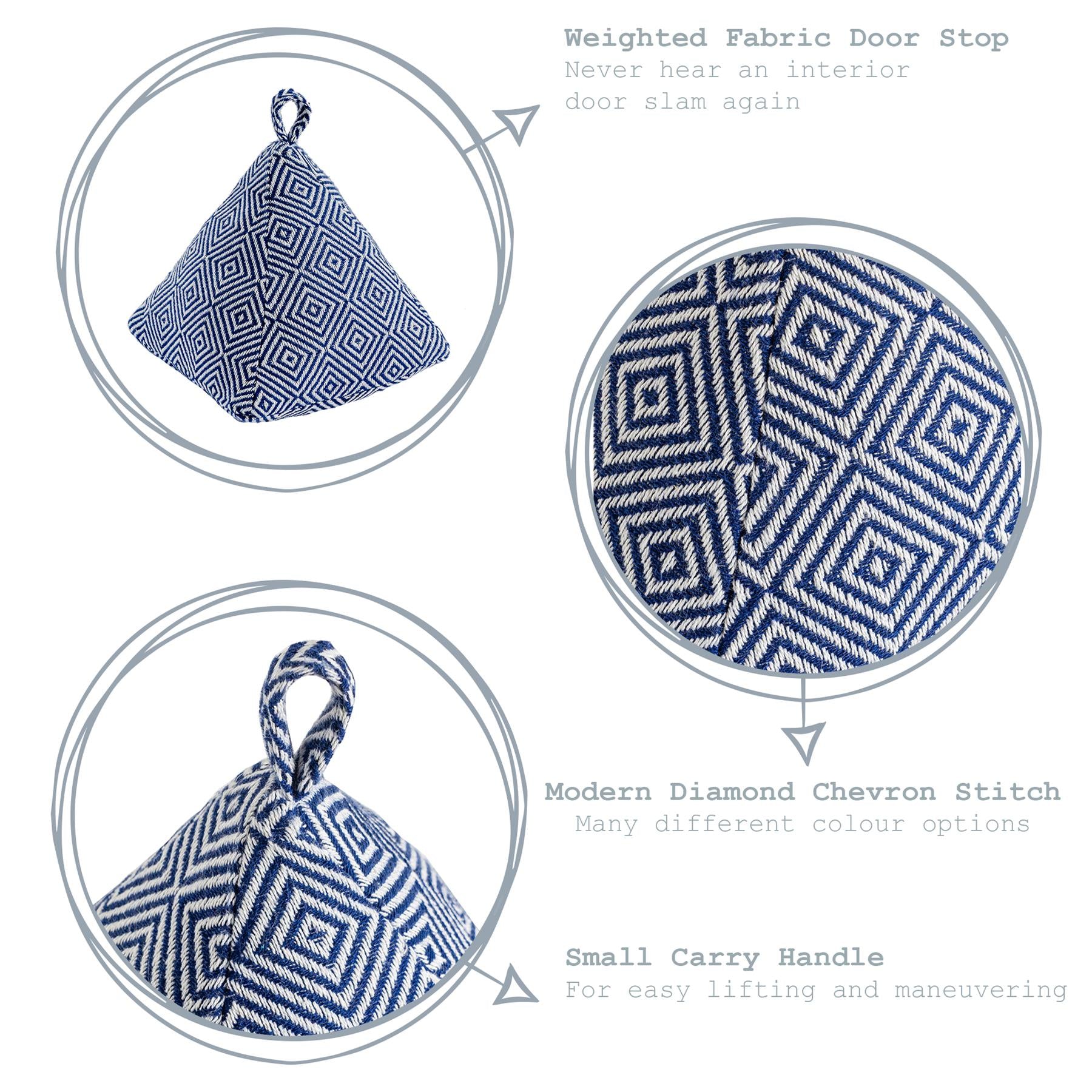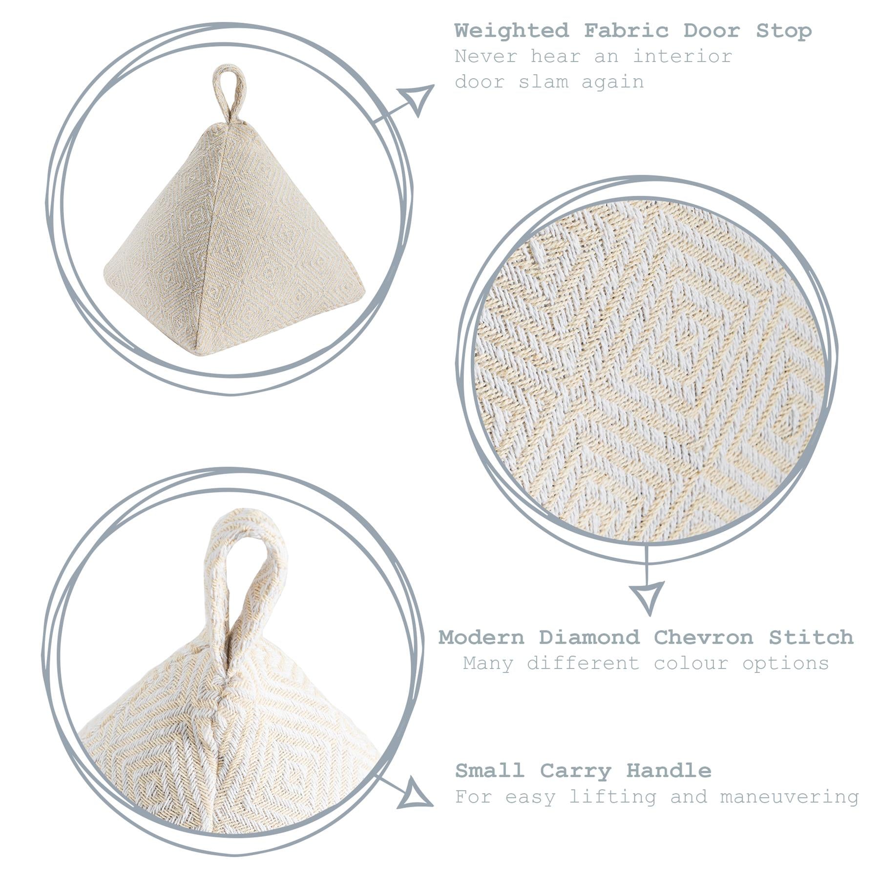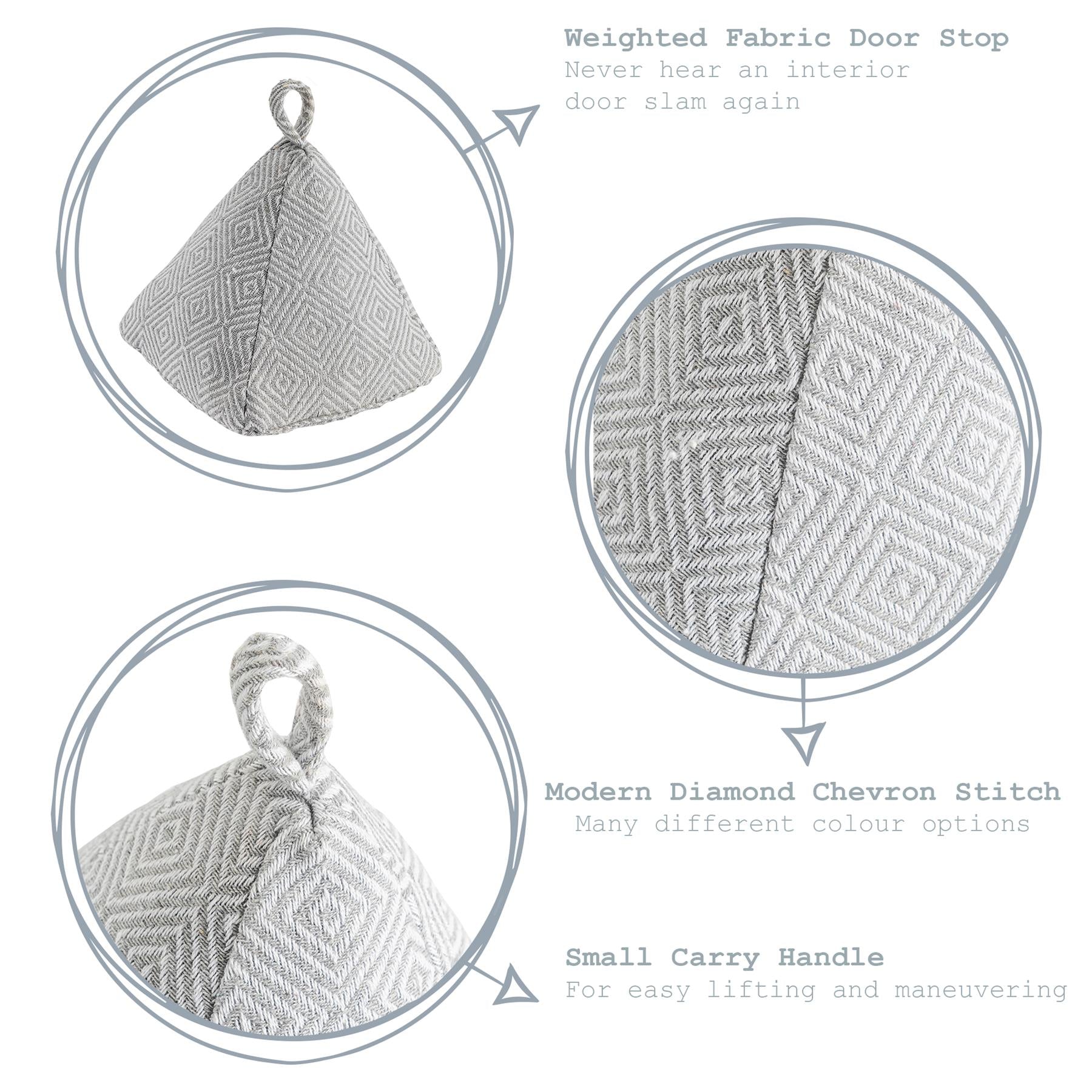Each piece in this diamond chevron stitched collection has been filled with 2.5kg of sand providing exceptional pound-for-pound strength that will stand up to internal home and office doors alike.