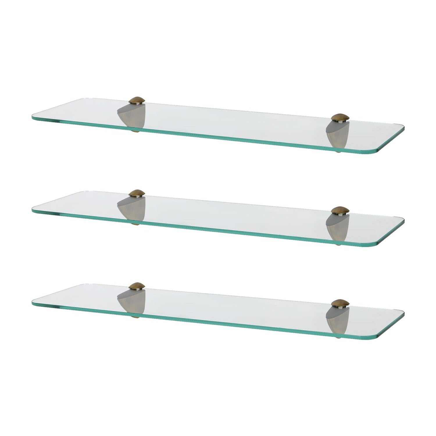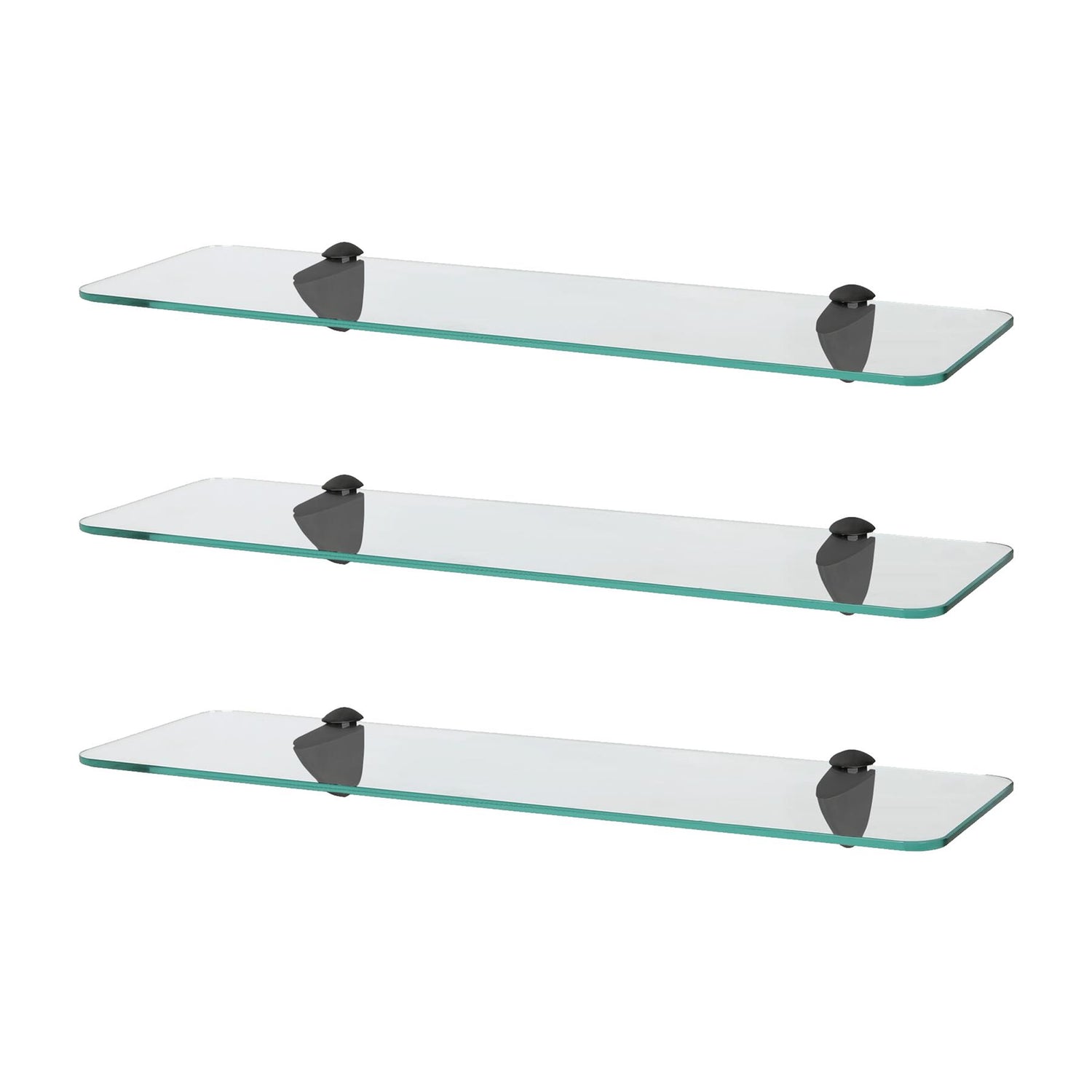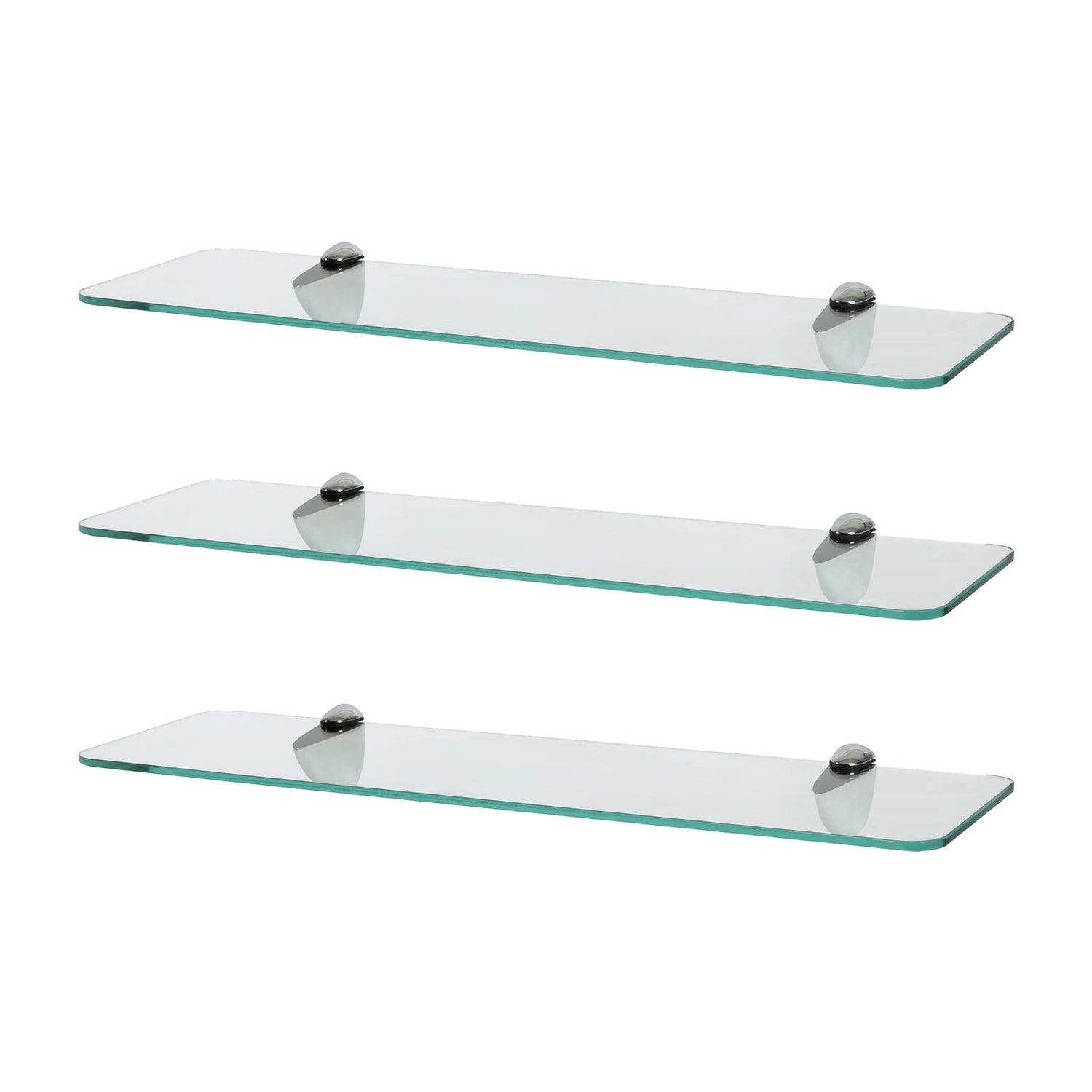 Rounded Floating Glass Bathroom Shelves - 50cm - Pack of 3