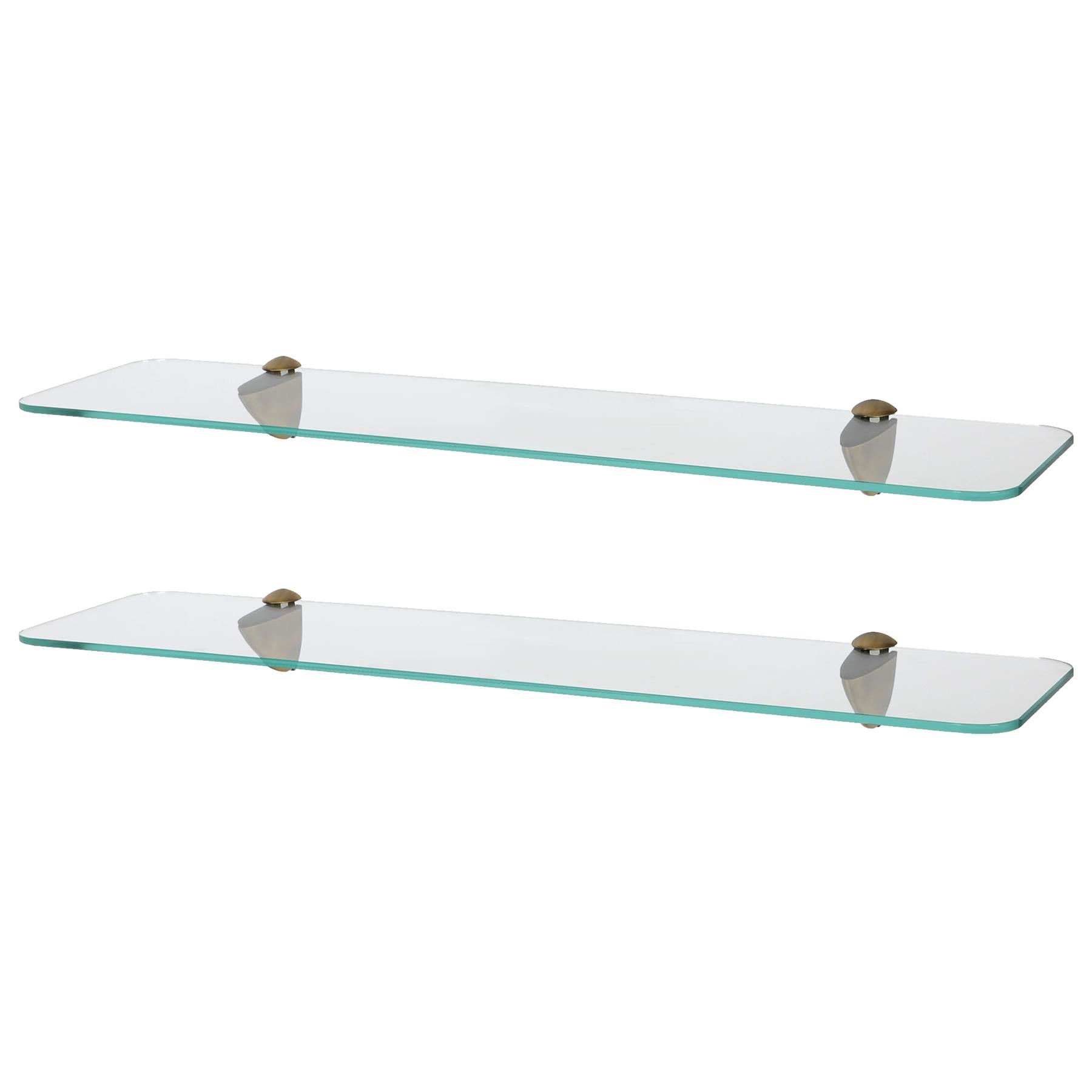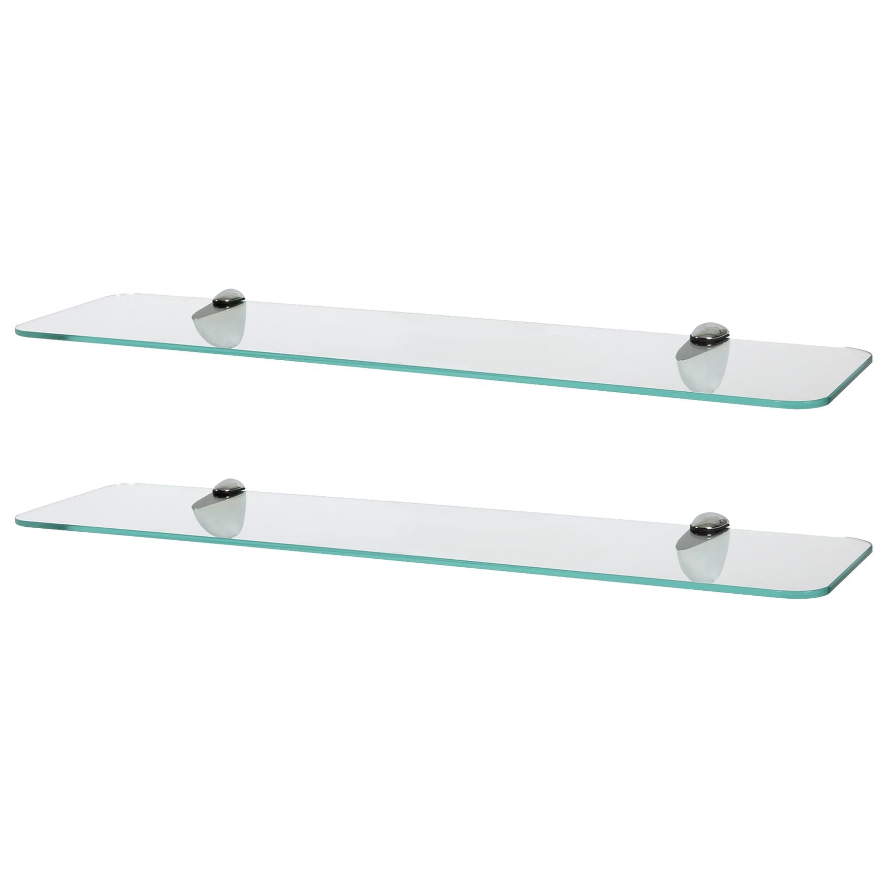 Rounded Floating Glass Bathroom Shelves - 60cm - Pack of 2