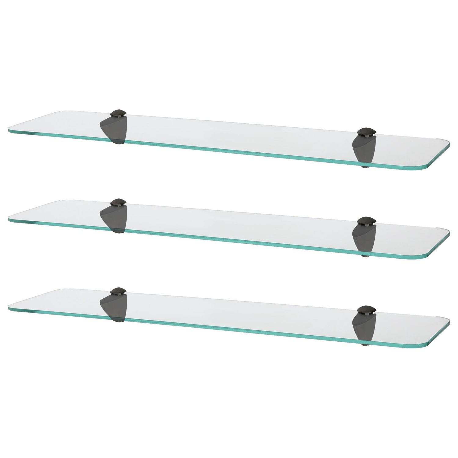 Rounded Floating Glass Bathroom Shelves - 60cm - Pack of 3