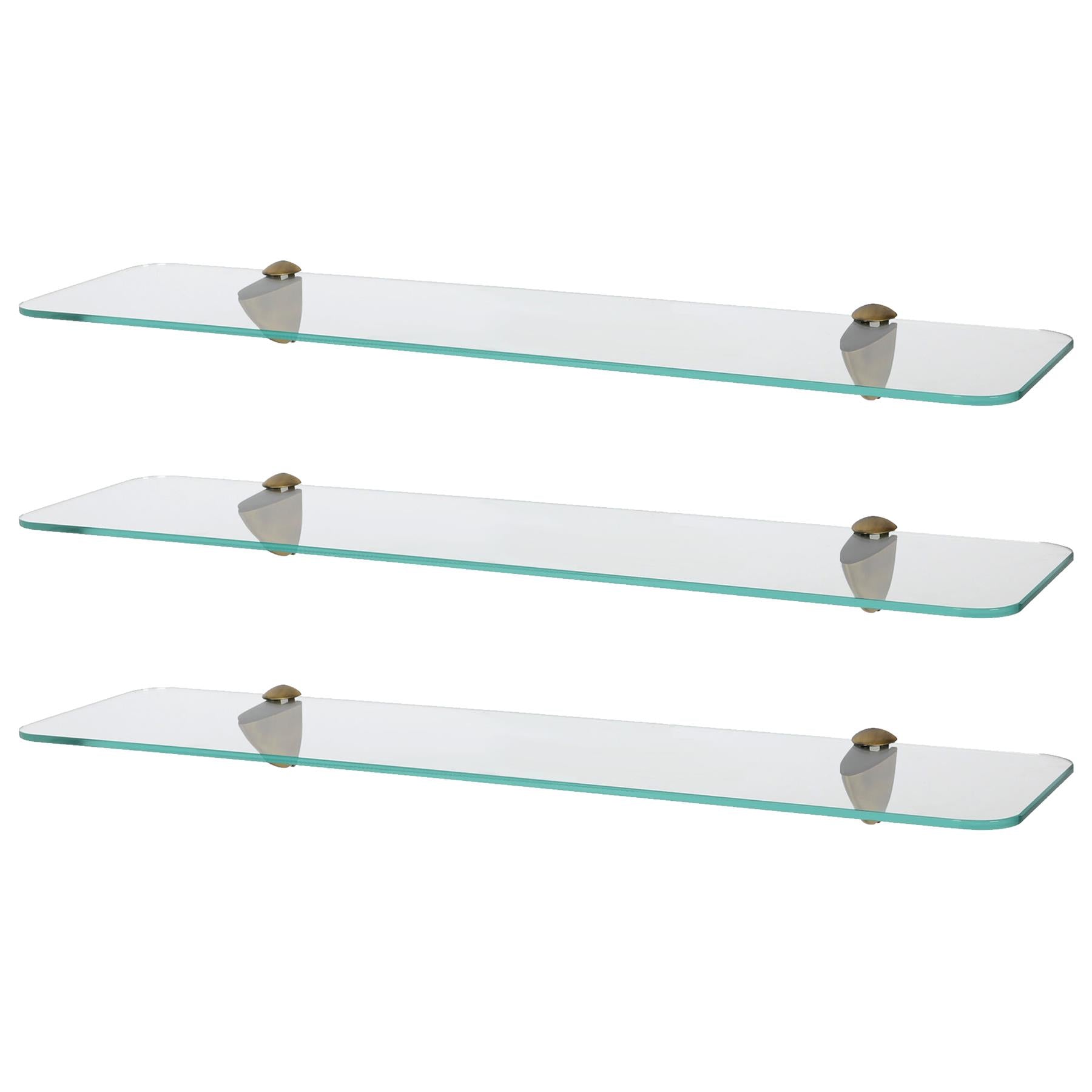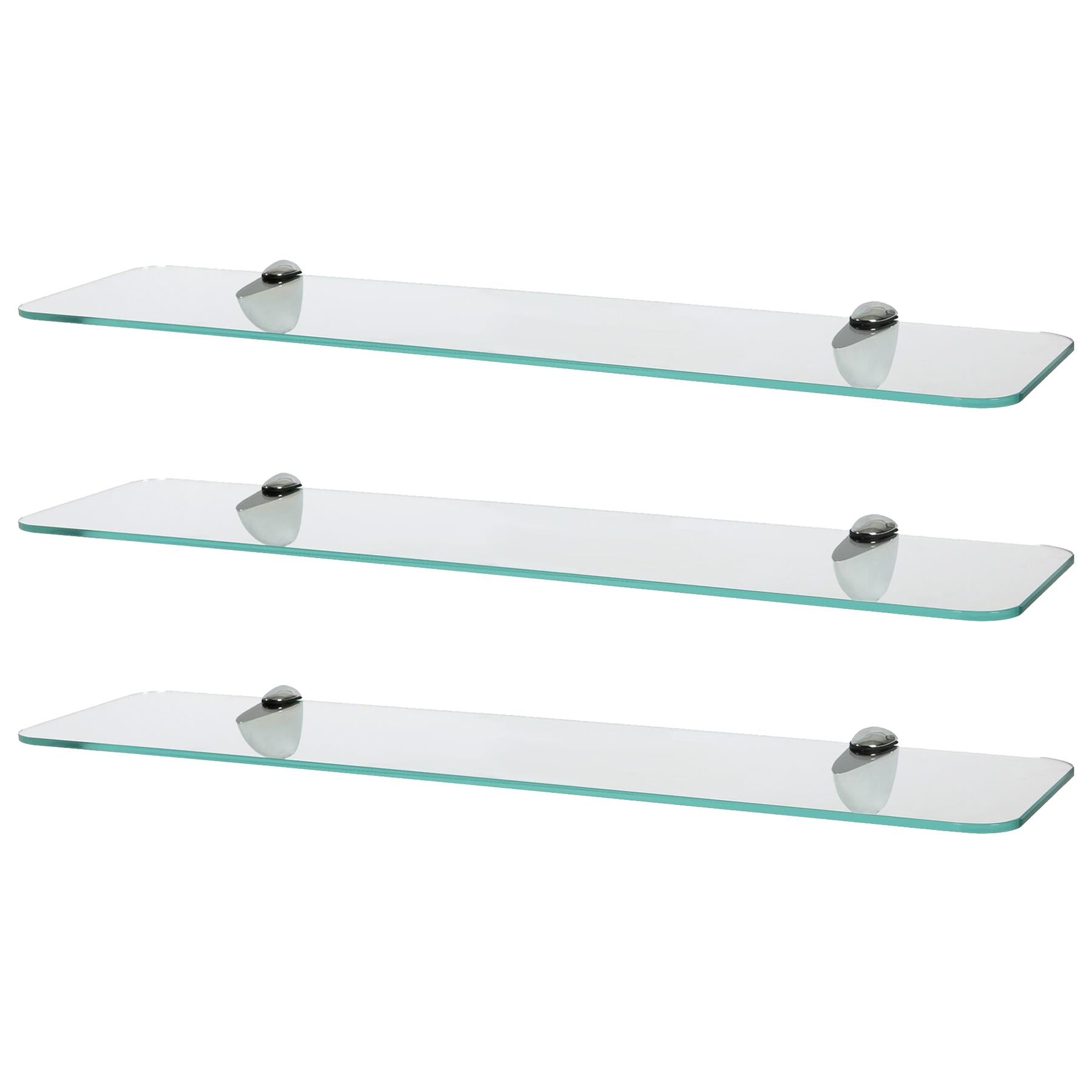 Rounded Floating Glass Bathroom Shelves - 60cm - Pack of 3